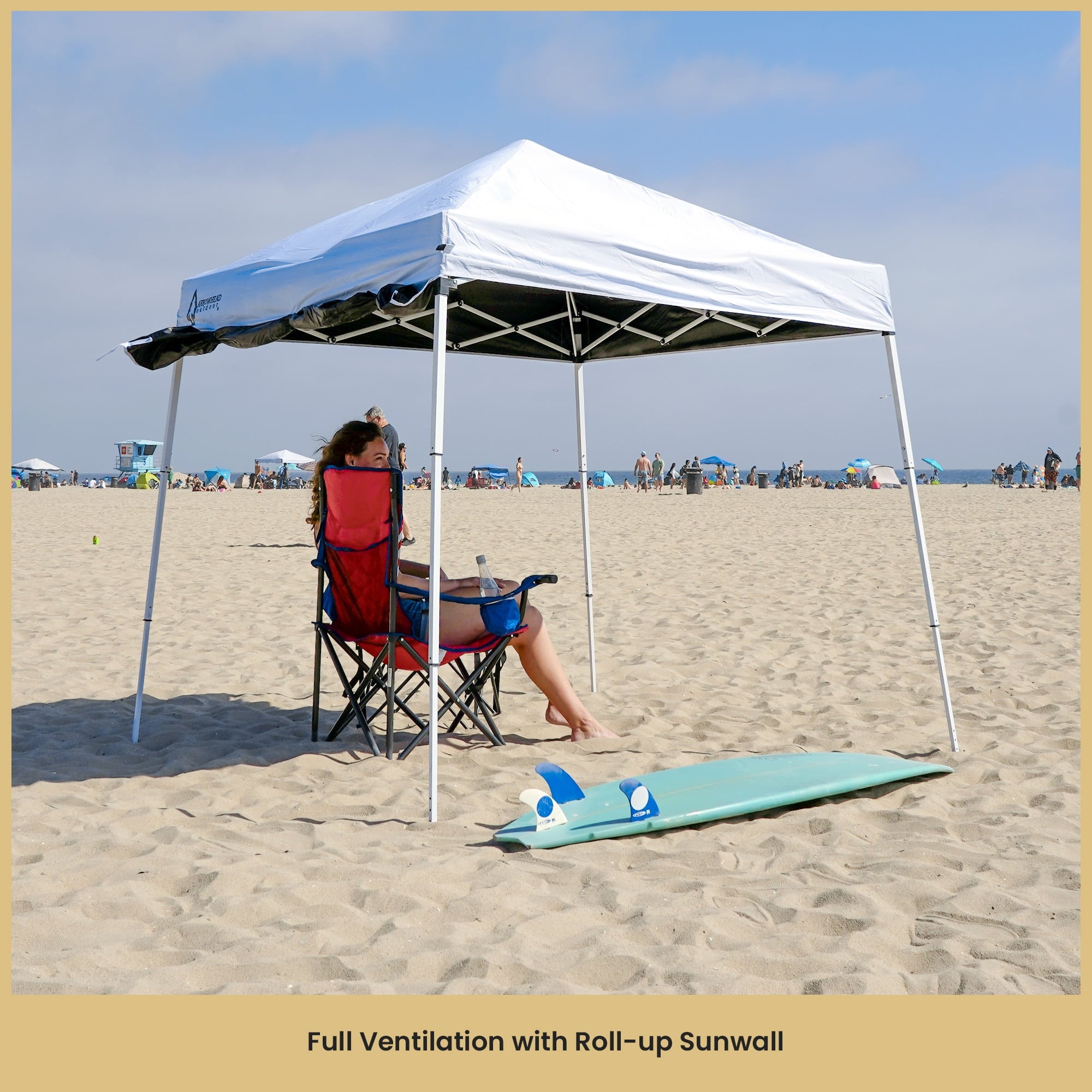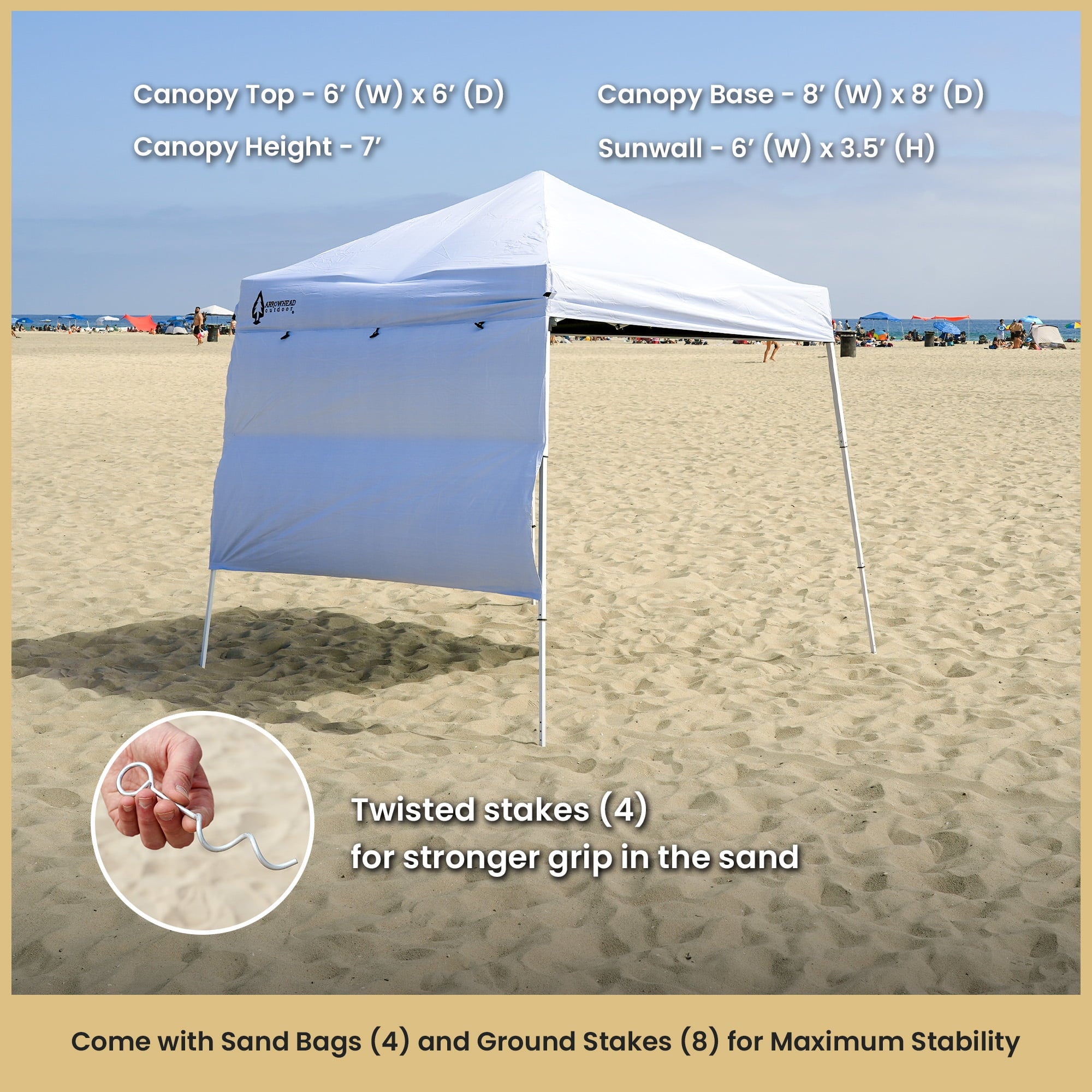 Escape the sun and create a cool, comfortable shaded area wherever you go with the Arrowhead Outdoor 6’x6′ Pop-Up Canopy in blue. This portable canopy features a convenient backpack design for hands-free carrying and sets up in seconds for instant shade. The UV-resistant fabric protects you from harmful rays, while the roll-up sun-wall provides extra coverage and privacy. Sandbags, guide ropes, and ground stakes ensure stability on windy days, making it the perfect shelter for picnics, sporting events, camping trips, or relaxing in your backyard.