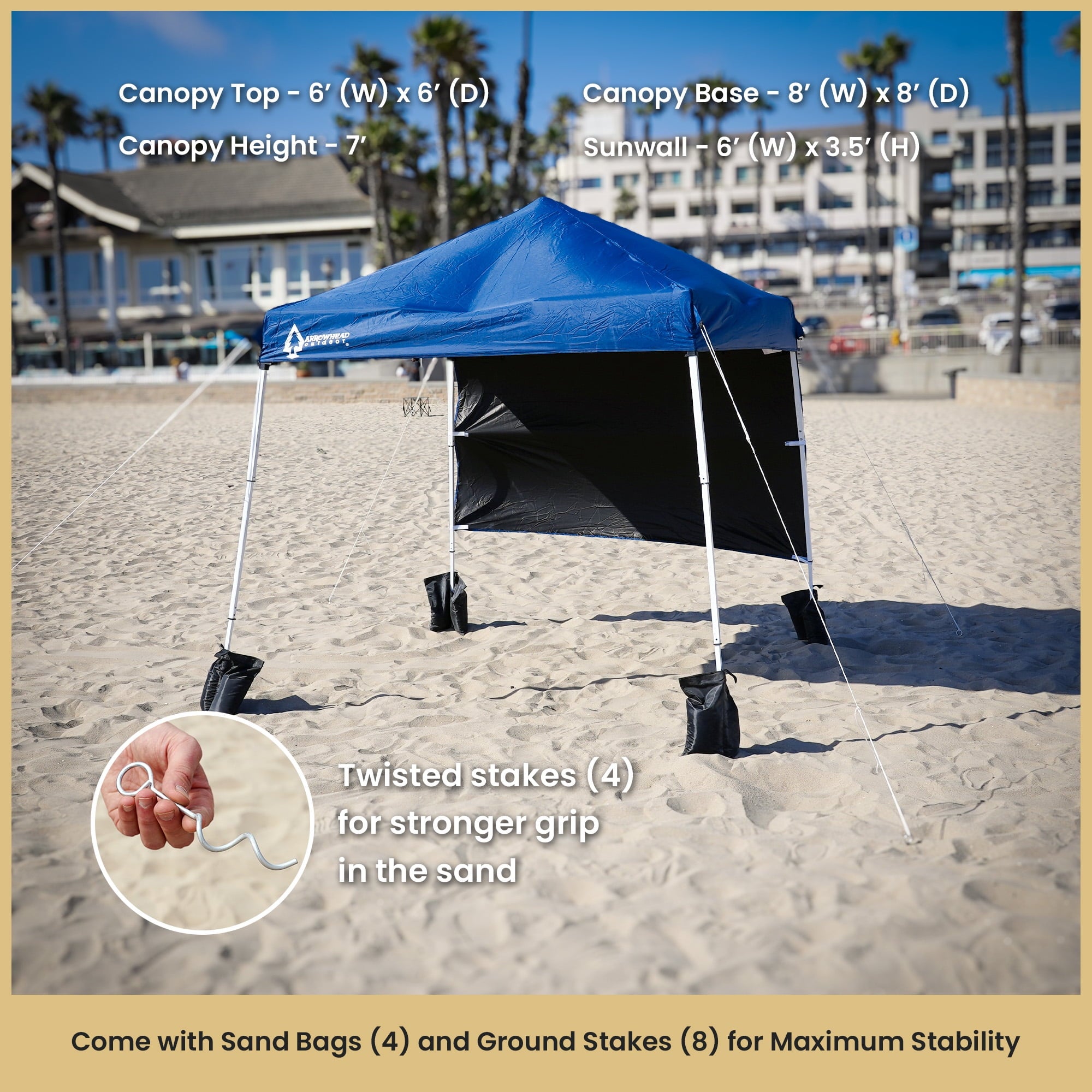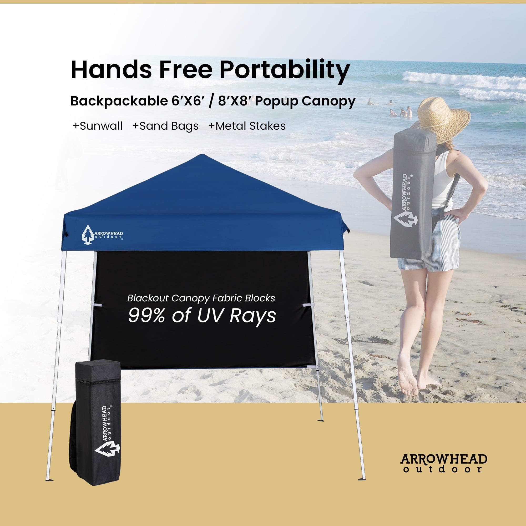 ARROWHEAD OUTDOOR KGS0397U Backpack Pop-up Canopy with Sunwall, Sand Bags, Guide Ropes, Ground Stakes, 6'x6' / 8'x8' Top to Bottom - Blue