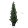 - The fake cedar plants are about 3 feet from the bottom of the black pot to the top of the tree, with a black plastic pot with 5 inch(H) x 6.5 inch(W). If you have any question about this 3 FT faux tree, please feel free to contact us