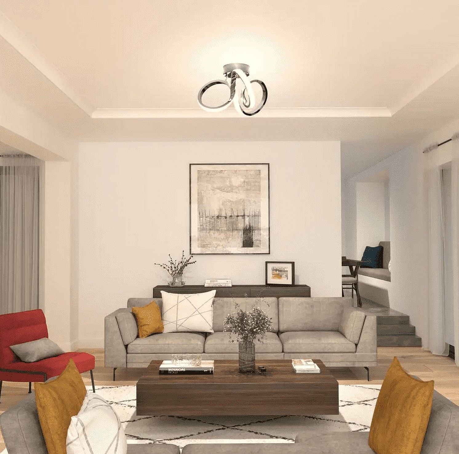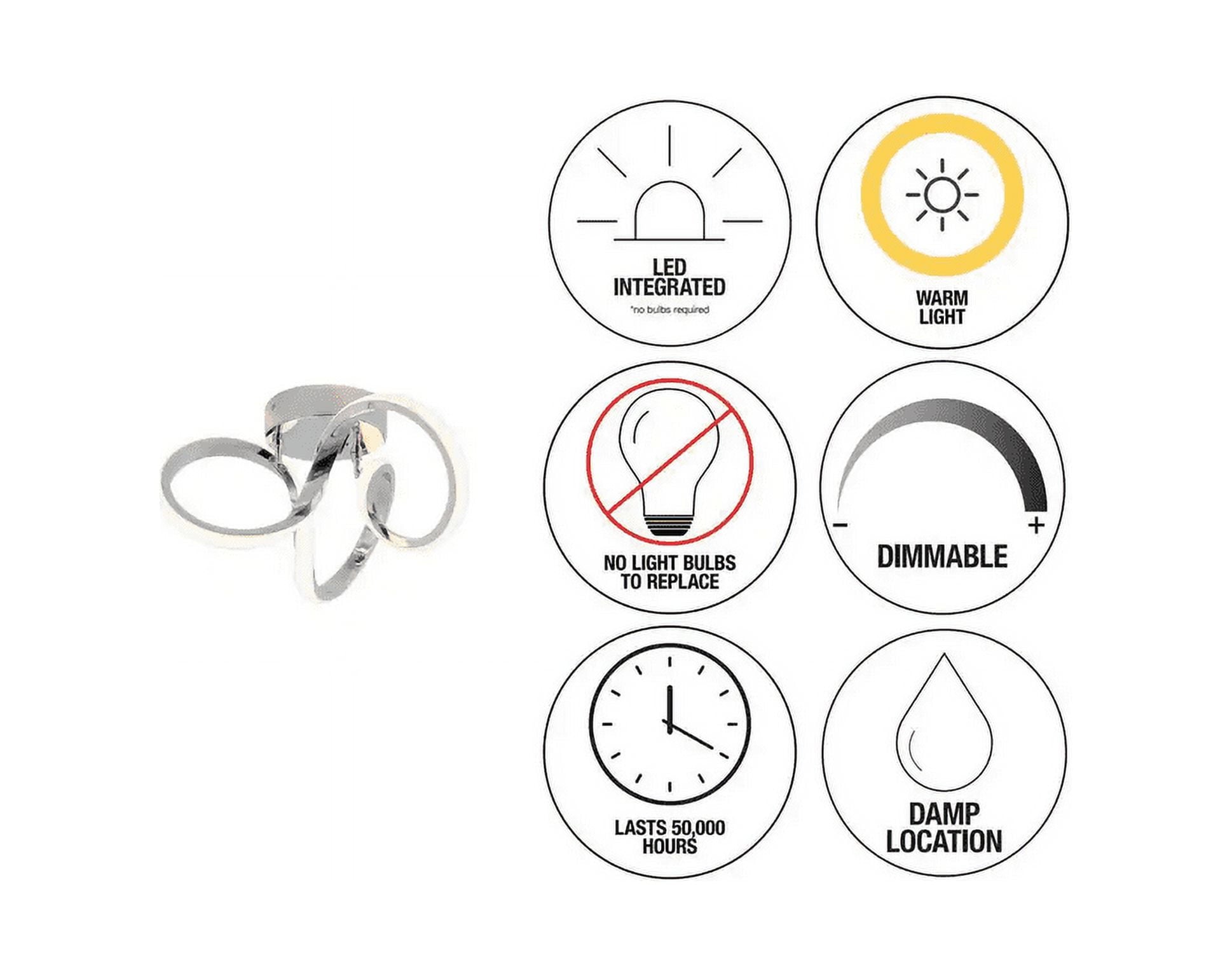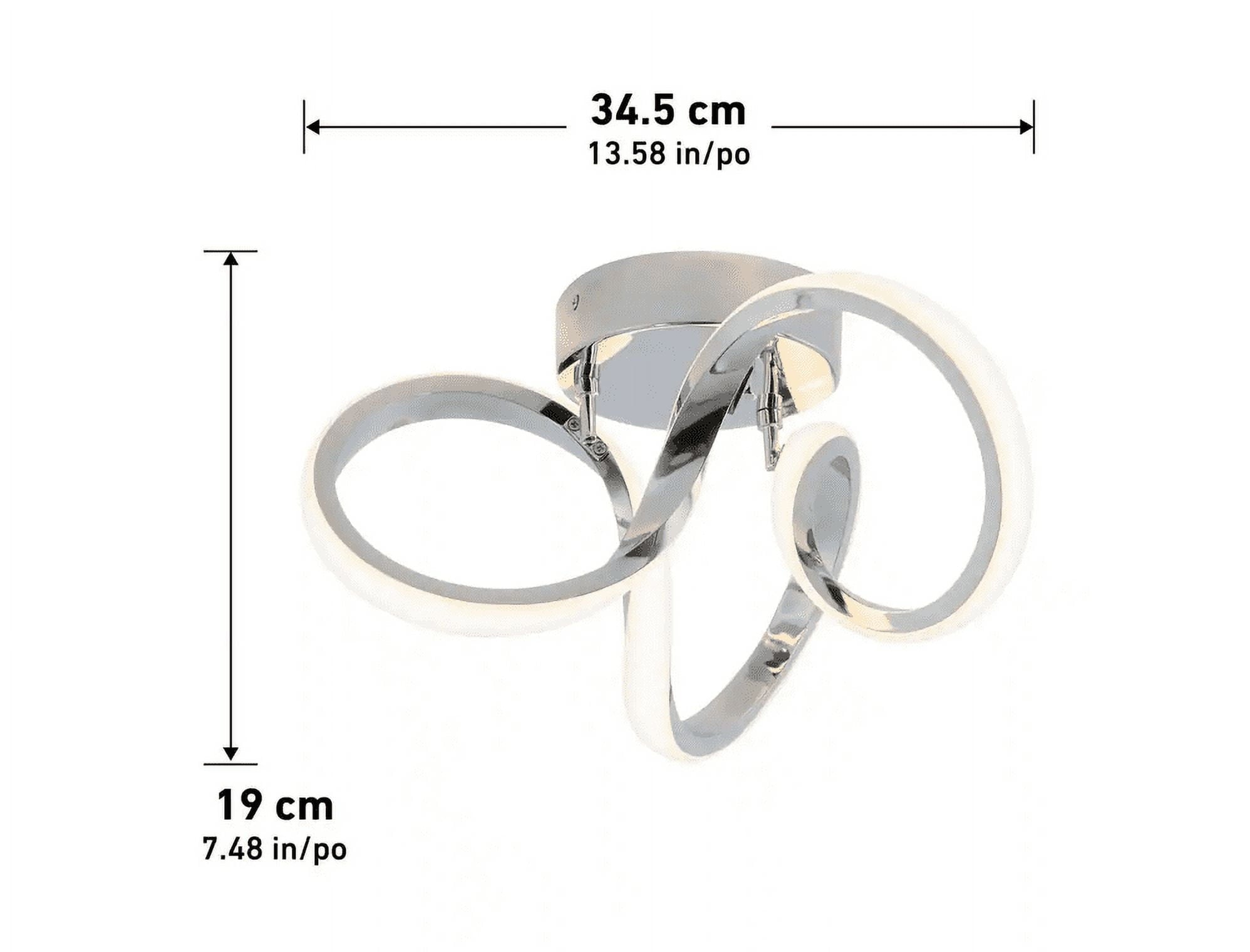 It’s impossible not to notice the Swirl LED ceiling light, which also doubles as a work of art! Both its name and design muster images of eddies and currents. This bold light fixture catches the eye with its chrome finish and ingenious design with integrated LED lights. Add it to your living room, dining room or any other favourite room for a dramatic effect. This modern LED ceiling light will illuminate your decor with a brightness of 1100 lumens for up to 50,000 hours. Use a compatible LED dimmer to adjust the light intensity. No bulbs are required, and installation is easy.
