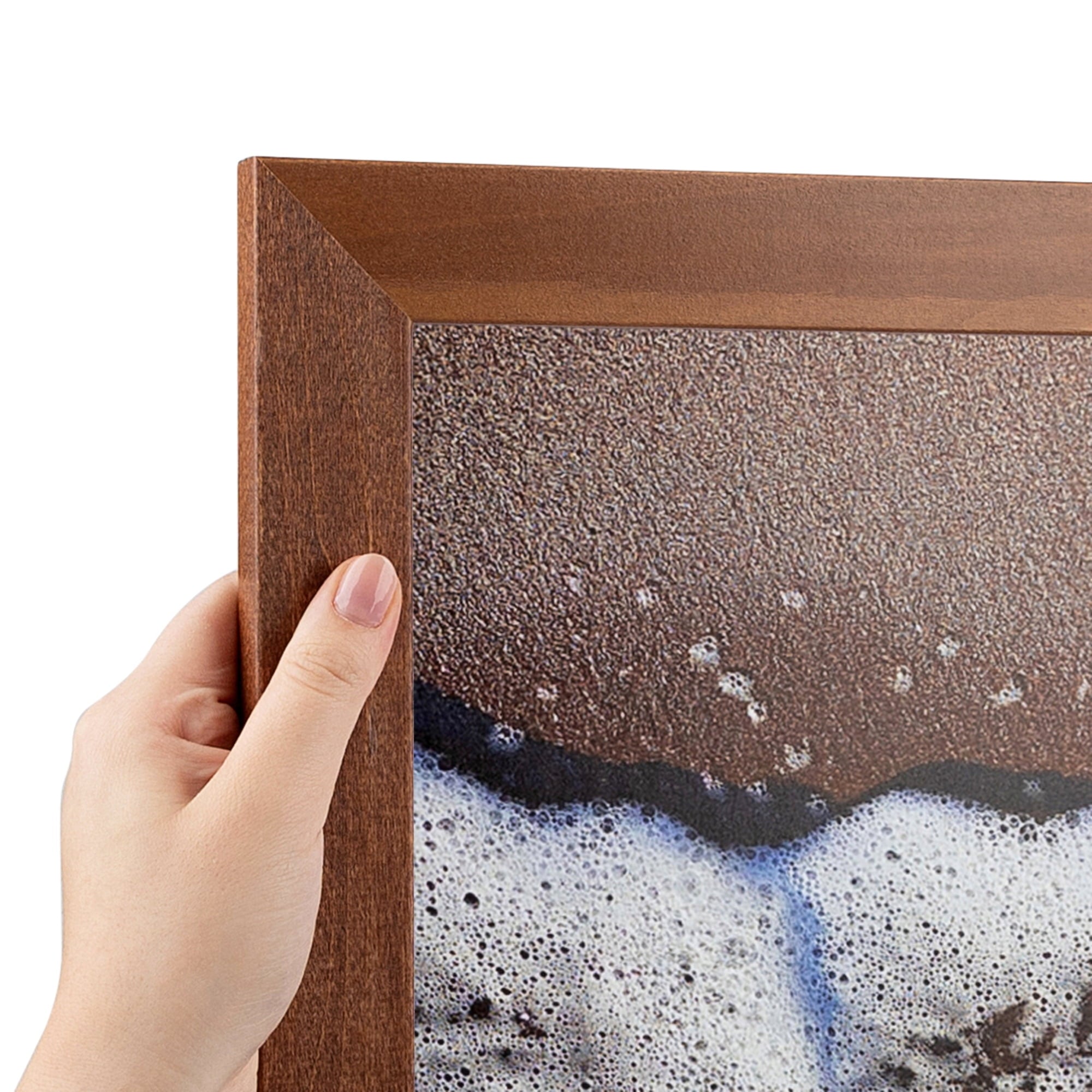 A rich cherry stain and versatile design, this frame reveals natural wood grains and adds a subtle sophistication to any space. Its luxe library feel, transforms prints and takes them to the next level for a timeless spin that works well in the dining room, kitchen, and office. It pairs beautifully with geographic prints, graduation photos and wildlife photography. . 12 by 18 inch Cherry Stain Cherry Poster Frame. Our frames can be hung in either horizontal or vertical orientation, as the hardware does not come attached.