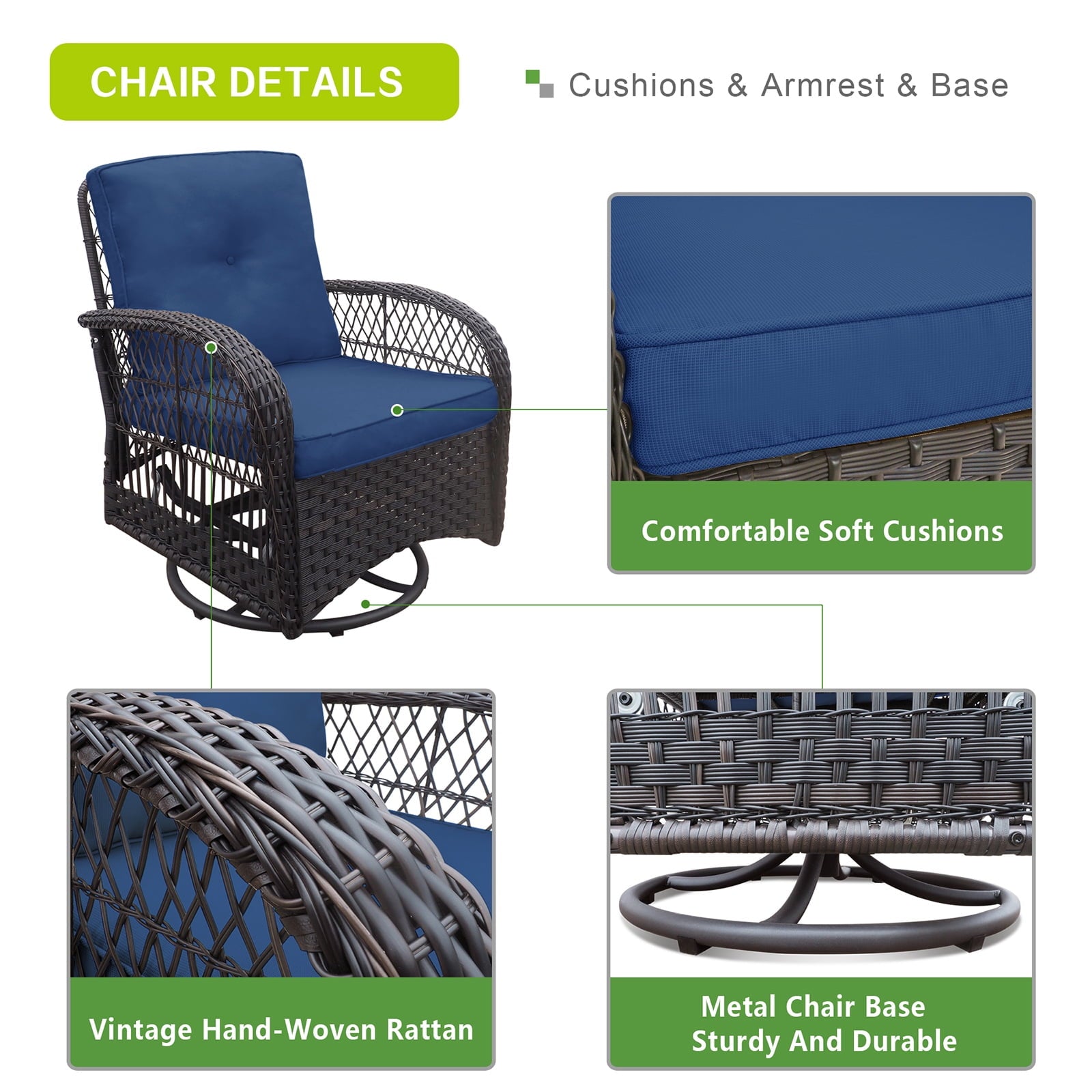 - 6. Timely Responses: If you have any pre-sales and after-sales of the patio wicker swivel rocker chairs set or order questions, please contact us in time, and we will reply to you within 24 hours.