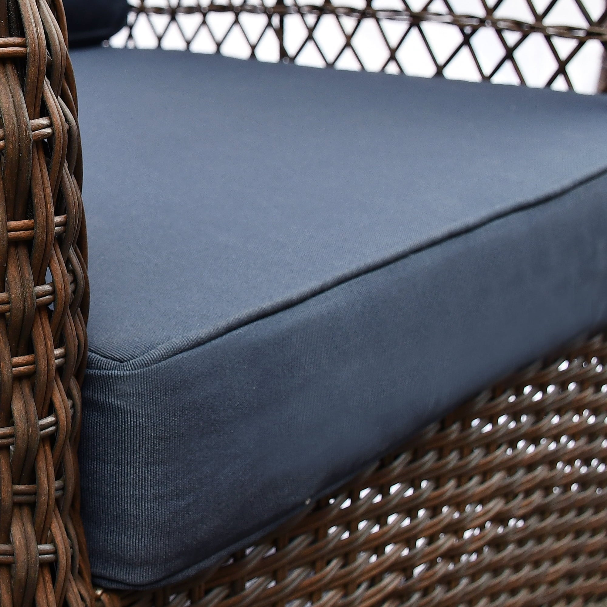 - 5. Comfortable Seating Cushion: The backrest cushion is comfortable doll cotton which is 3.0″ (7.6 cm )thick, the medium sponge is not easy to distort; the cloth is waterproof cloth, and fits perfectly on any porch or patio setting.