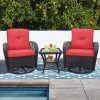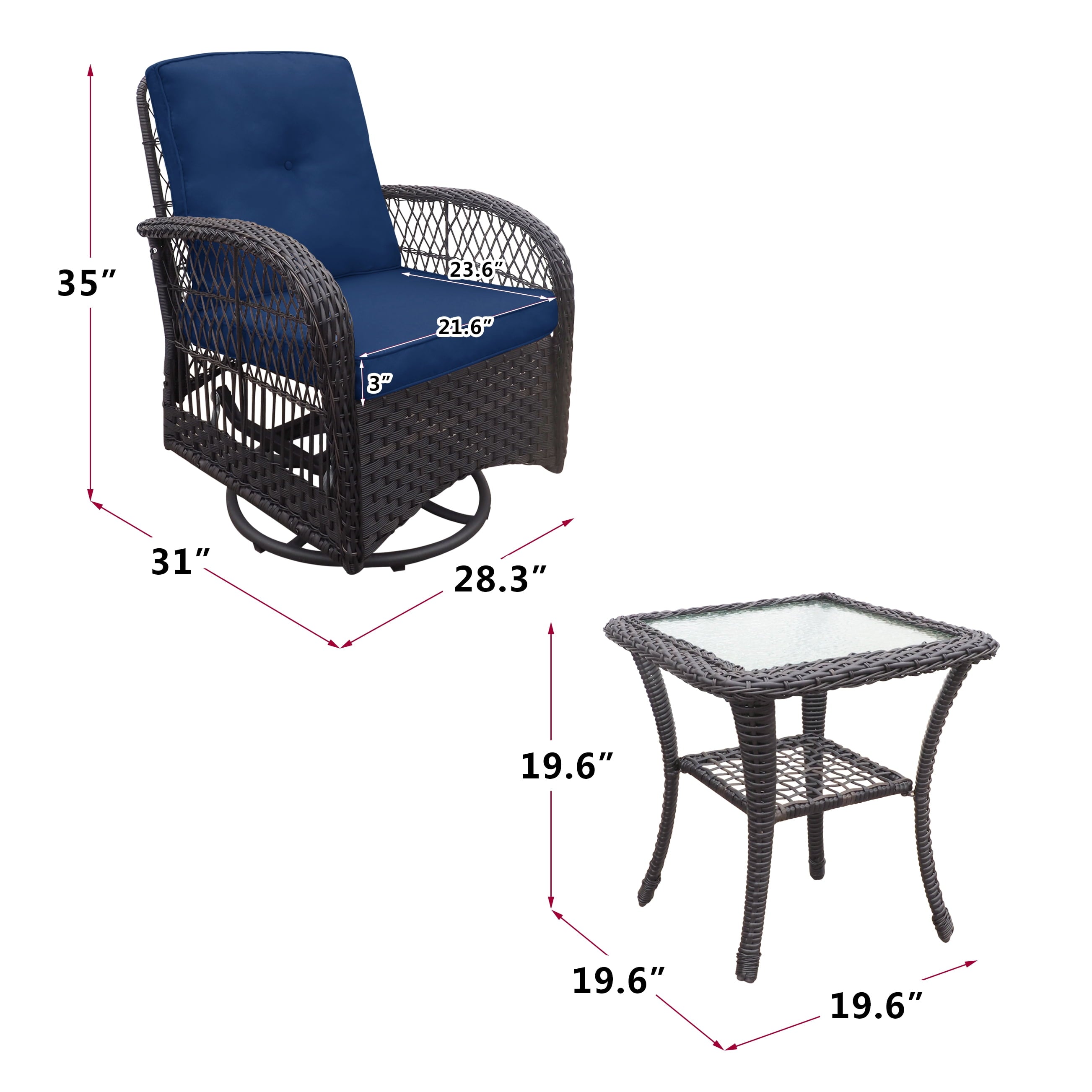 ATR ART to REAL 3 Pcs wicker swivel rocker Conversation Furniture chairs sets, full 360-degree swivel to change direction easily, allows you to take better care of your children and to have face-to-face conversation rocker chairs with lovers and friends, a good partner for you to kill your time or rest. The wicker swivel patio rocker chair set has a durable steel frame, adopts a more meticulous steel frame, and more robust construction than others which is finished with a wicker. Well-made hand-woven rattan, tight and firm, UV resistant, not easy to fade and crack, to increase the service life. Great construction contains fun and comfortable additions to your indoor and outdoor space.