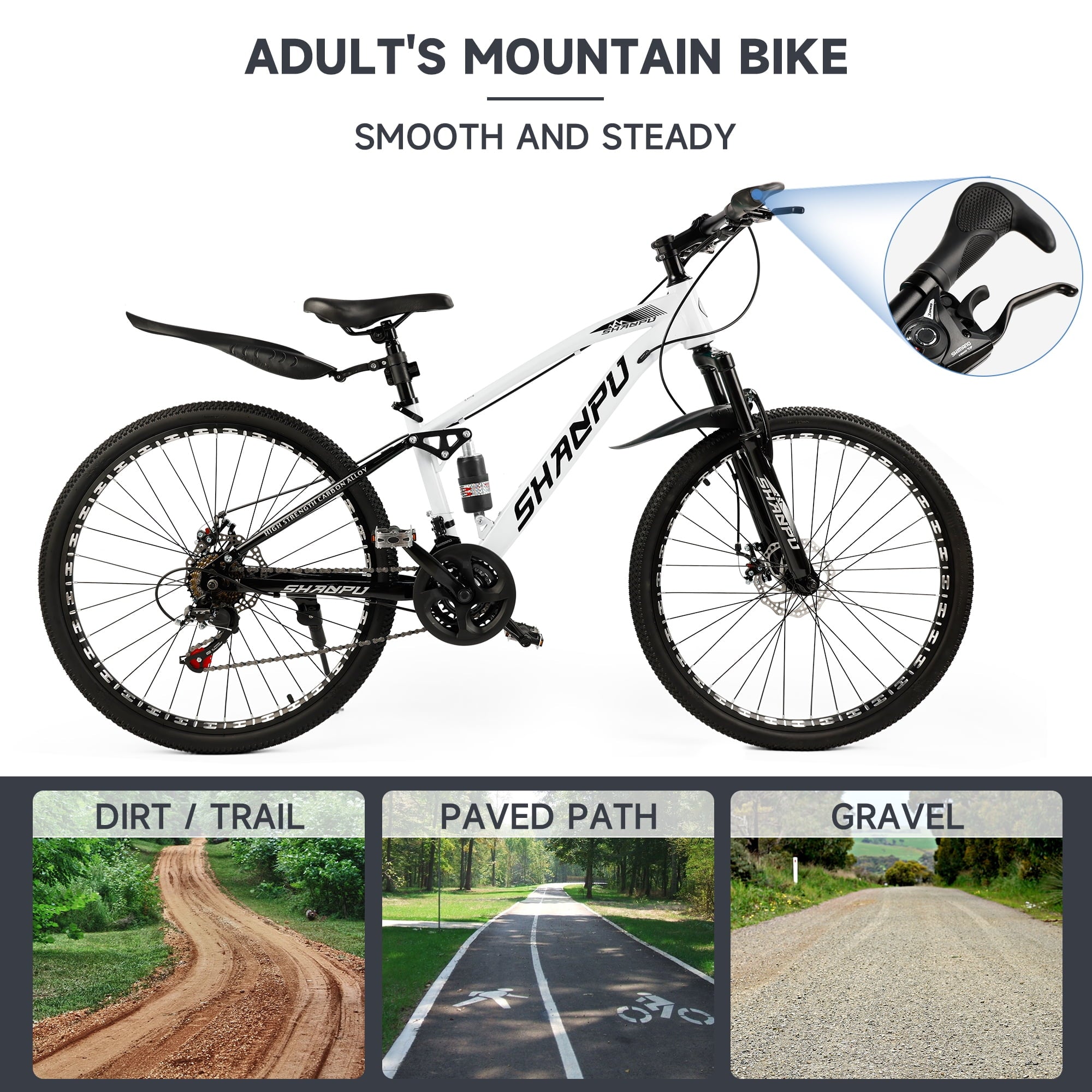 • Whether you’re tackling mountain trails, heading to the office, or cruising through urban landscapes, our bike’s sleek frame ensures a smooth ride for students, office workers, and adventure seekers alike.