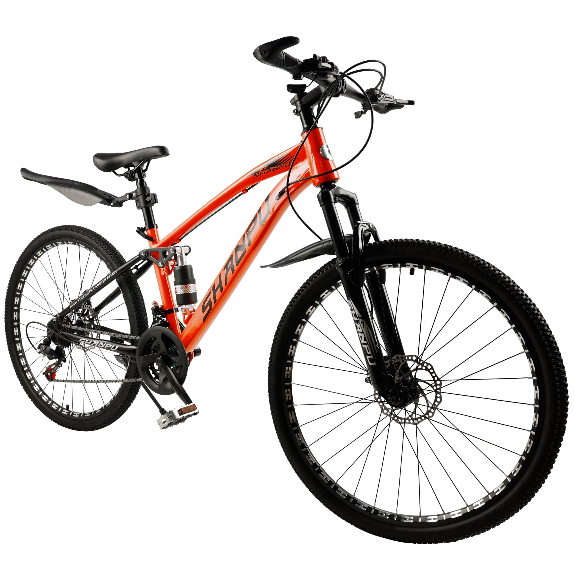 Home Bicycles ARTUDATECH 26 Inch Wheel Full Suspension Mens Mountain Bike, Shimano 21 Speed, Dual Disc Brake Bike for Men Womens Adult Bicycle With Bike Lock And Air Pump, orange