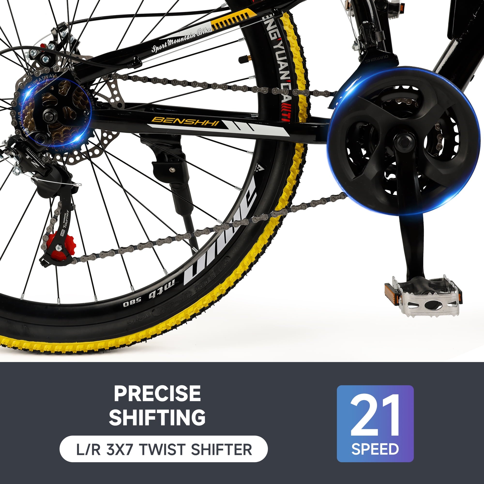 ARTUDATECH Full Suspension Mens Mountain Bike, Shimano 21 Speed, 26 Inch Wheel, Dual Disc Brake Bike for Men Womens Teen Adult Bicycle Thumb Shifter With Bike Lock And Air Pump