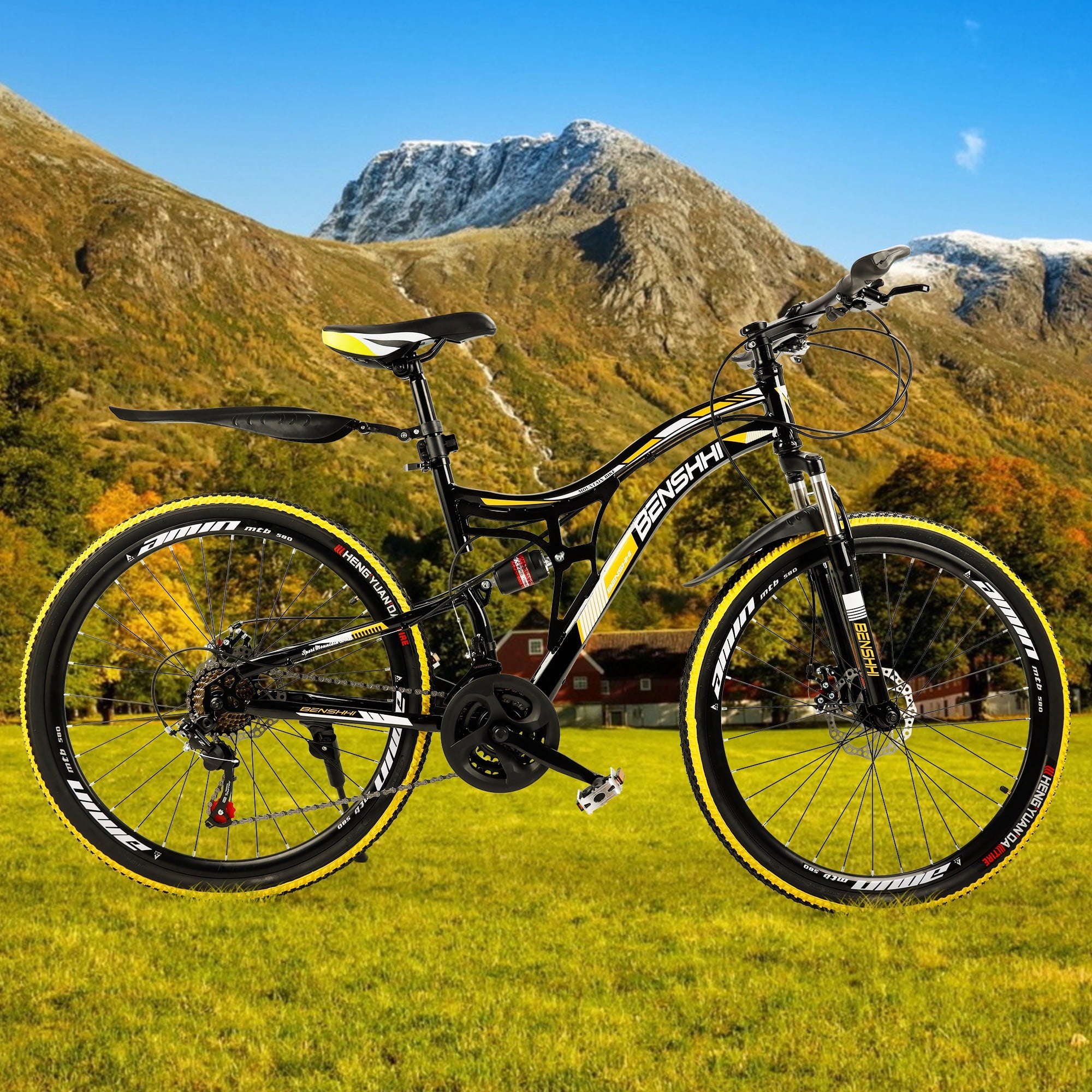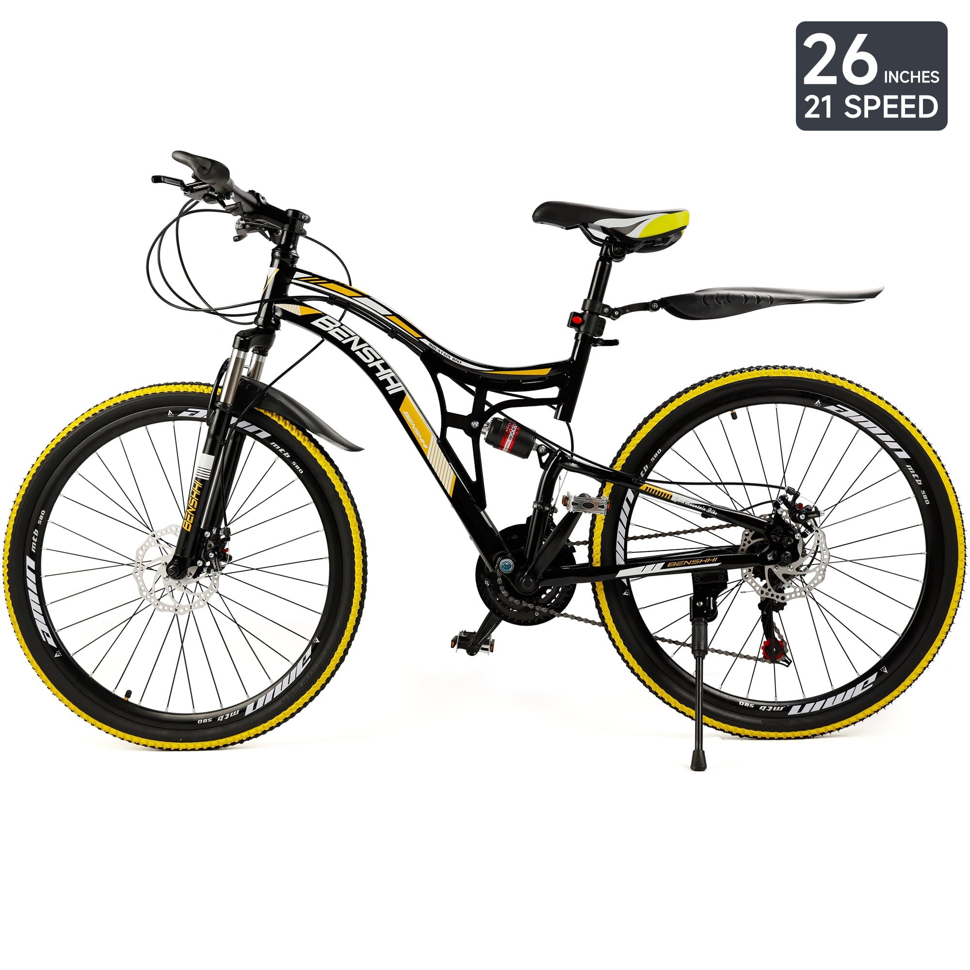 Home Bicycles ARTUDATECH Full Suspension Mens Mountain Bike, Shimano 21 Speed, 26 Inch Wheel, Dual Disc Brake Bike for Men Womens Teen Adult Bicycle Thumb Shifter With Bike Lock And Air Pump