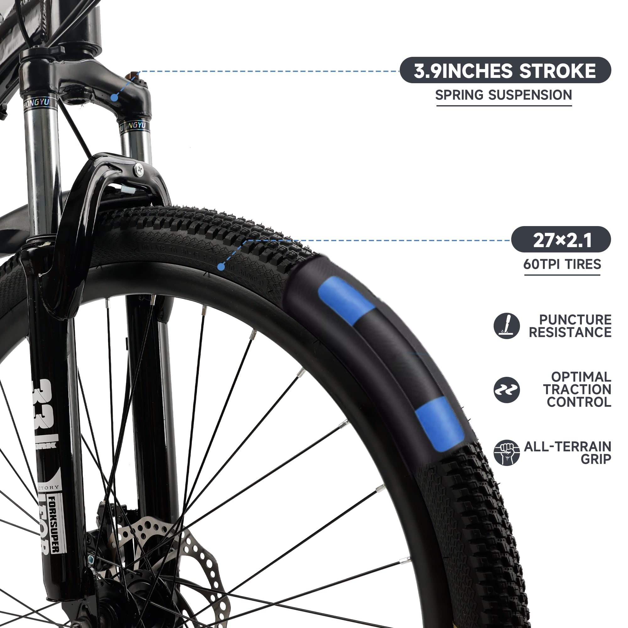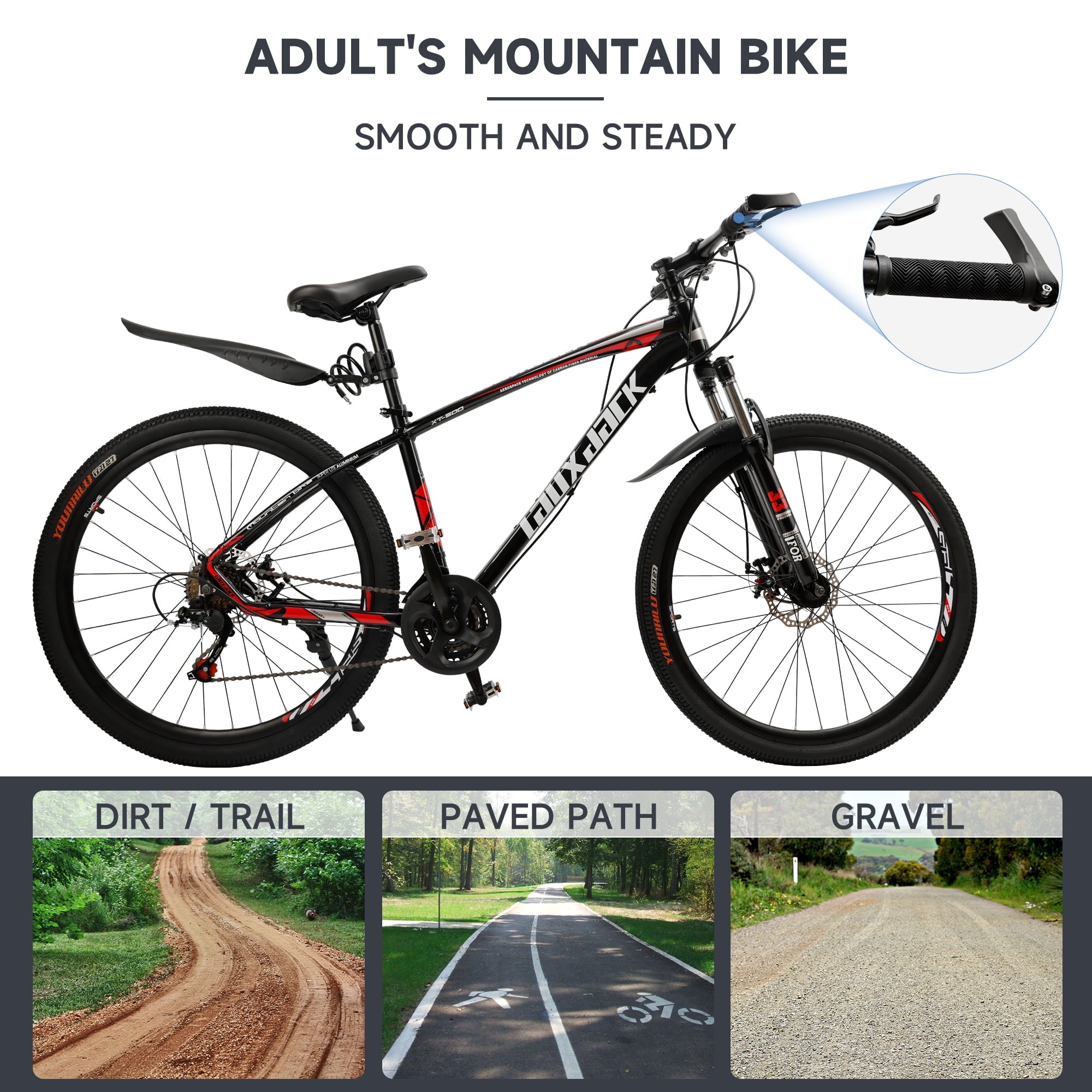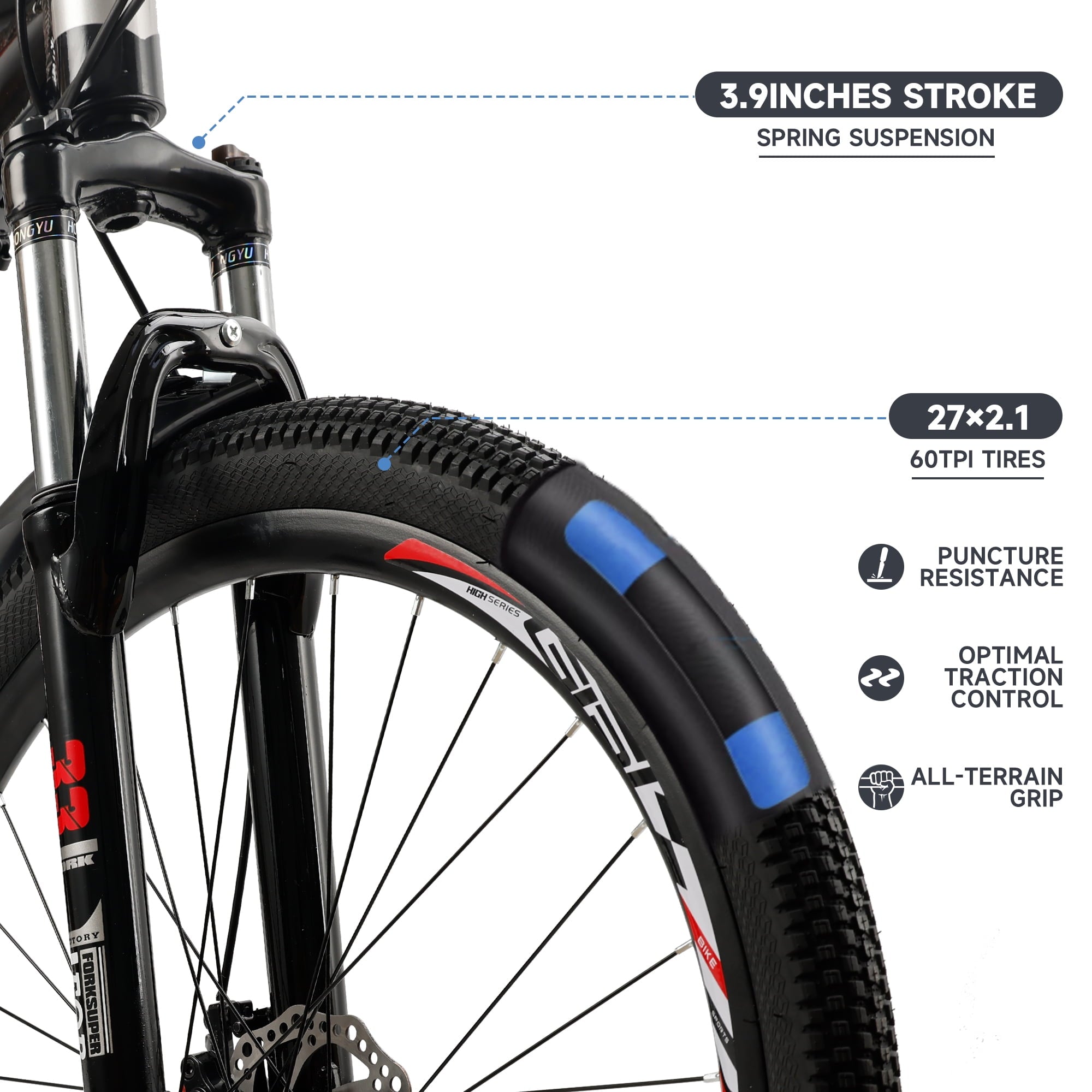 - Tire Size: 27.5 inches with aluminum alloy double rims, versatile for various terrains
