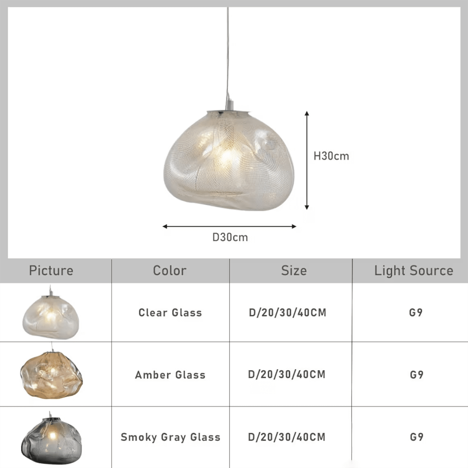 Lamp body: Clear / Amber / Smoky Gray Glass