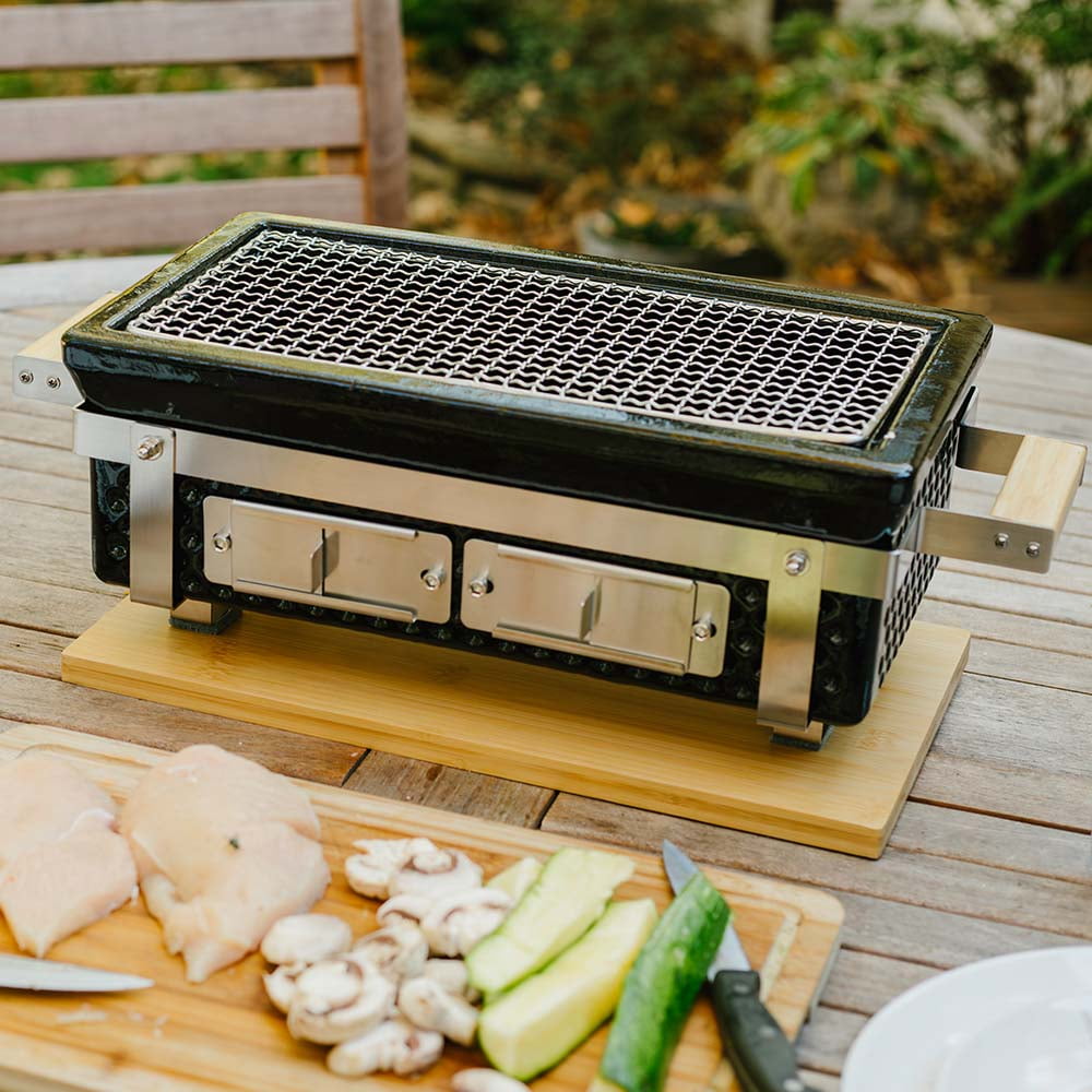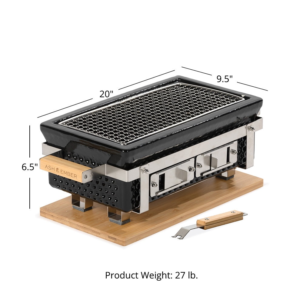 Home Charcoal Grills Ash & Ember 16″ Hibachi Tabletop Grill And Skewer Set, Ceramic Charcoal Grill