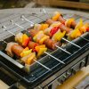 • STAINLESS STEEL GRATE & SKEWER RACK: This grill comes with a stainless-steel mesh cooking grate with 92.81 square inches of cooking area and a kabob rack with six stainless steel skewers. Make your favorite dishes then toss them in the dishwasher for easy cleanup.