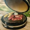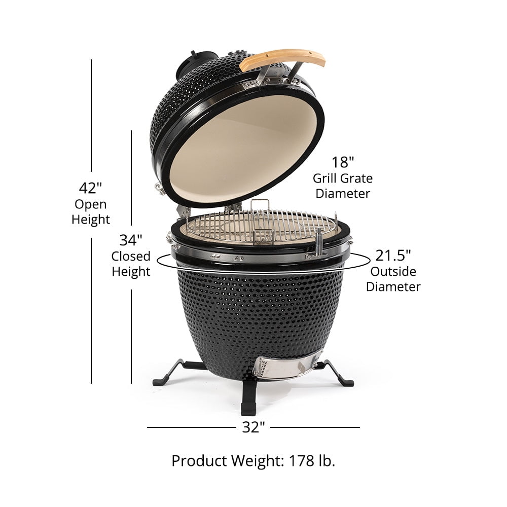 - KAMADO-STYLE CHARCOAL GRILL: Built with a thick ceramic shell, this grill retains heat and moisture for delicious, juicy results and doubles as a smoker and oven, reaching up to 800-degrees and holding a steady temperature throughout – and includes a hinged grate for easy charcoal refills mid-cook.