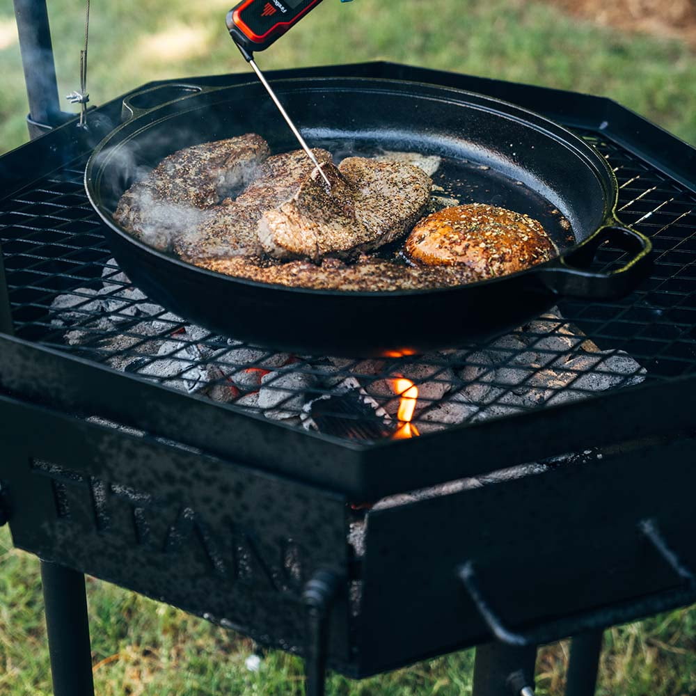 • COMES WITH COOKING GRATE & CAST IRON SKILLET: Cook up an entire meal at one time. This grill comes with a height adjustable cooking grate and a cast iron skillet to open even more possibilities for what you can create with the Santa Maria grill.