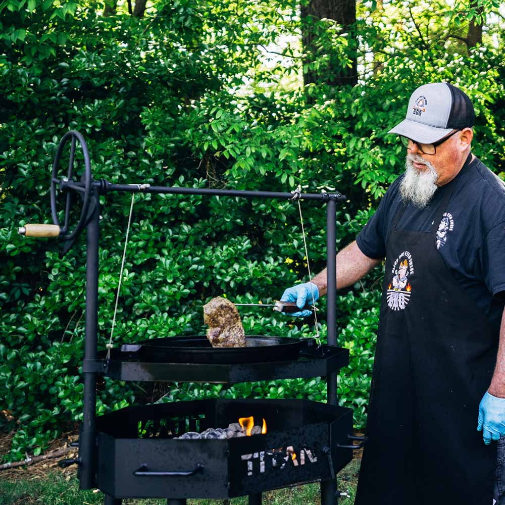 Home Grill Grids & Racks Ash & Ember Santa Maria Grill, Argentine Style Open Fire Grill, Adjustable Cooking Grate with Flywheel, BBQ Grill Comes with Cast Iron Skillet