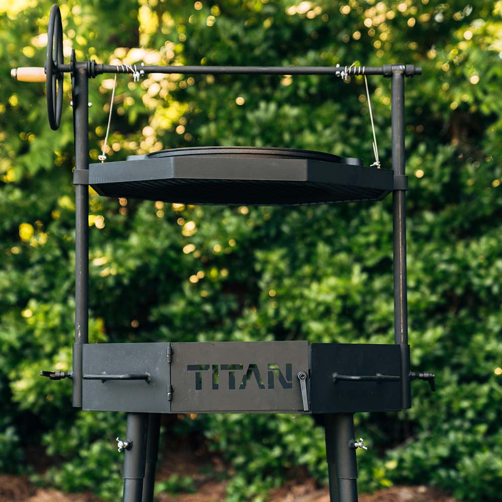 Enjoy the rustic appeal of cooking over an open flame with this Argentine style grill.