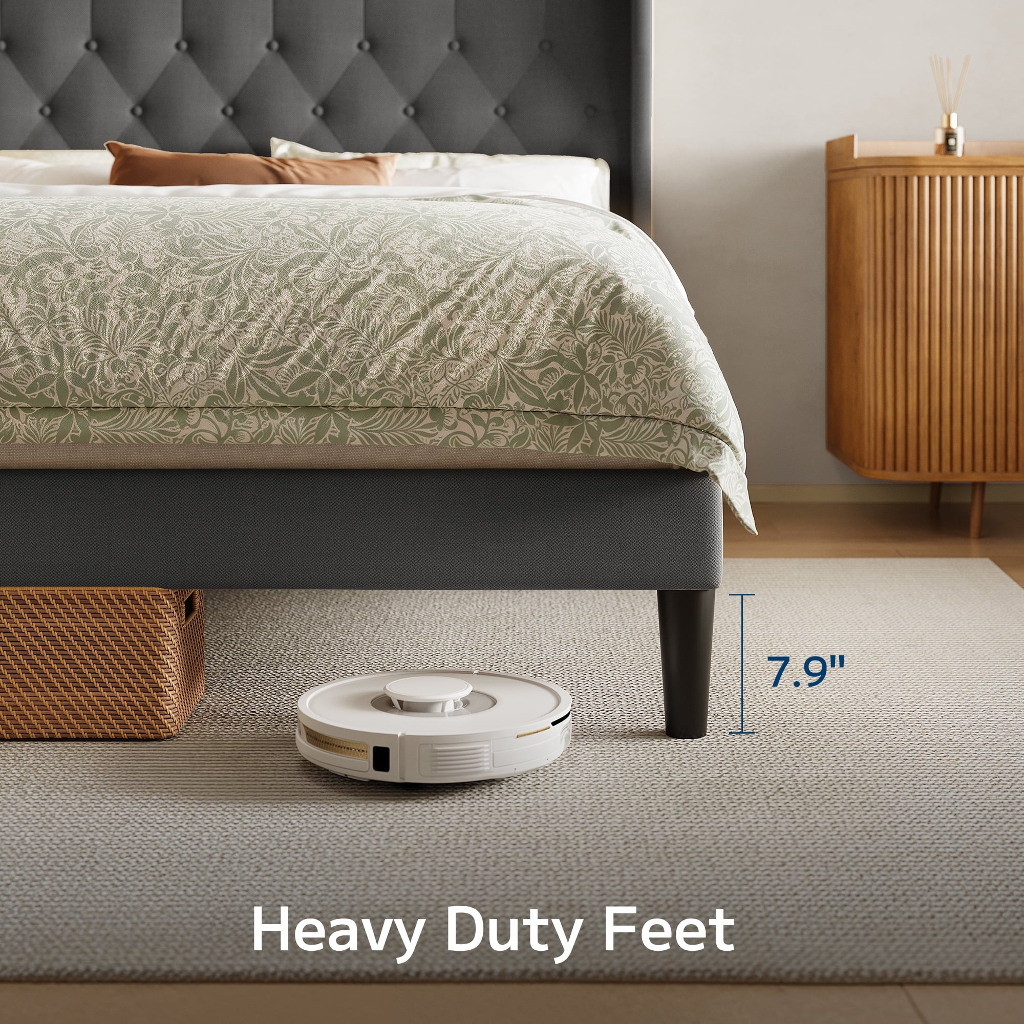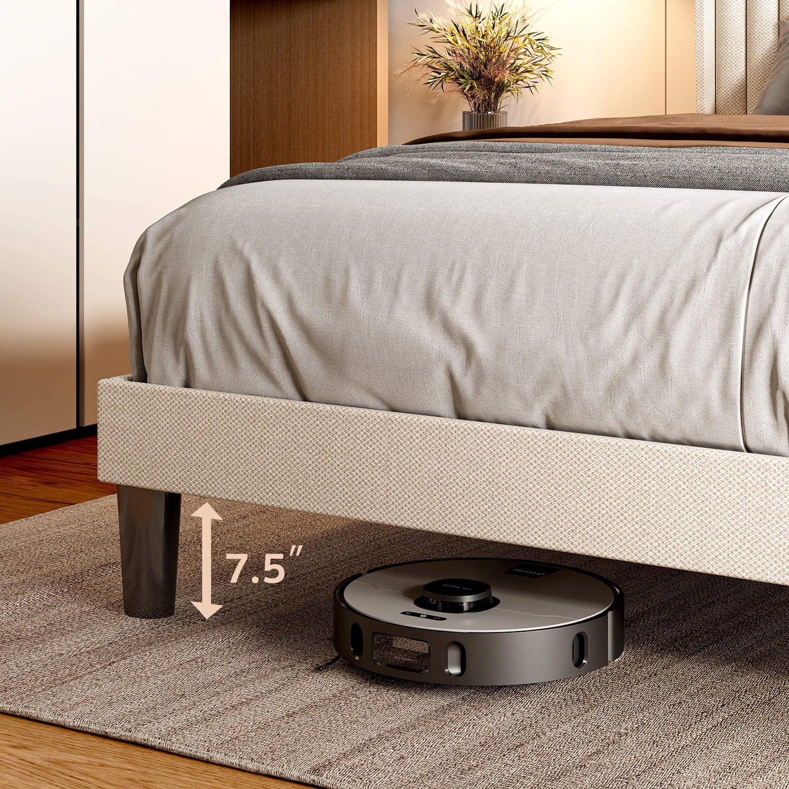 ??【Ready Storage】The 7.5-inch raised bed bottom clearance can accommodate a robot vacuum cleaner, 8-12 shoe boxes or 4 large storage boxes (26 inches wide x 16 inches deep).
