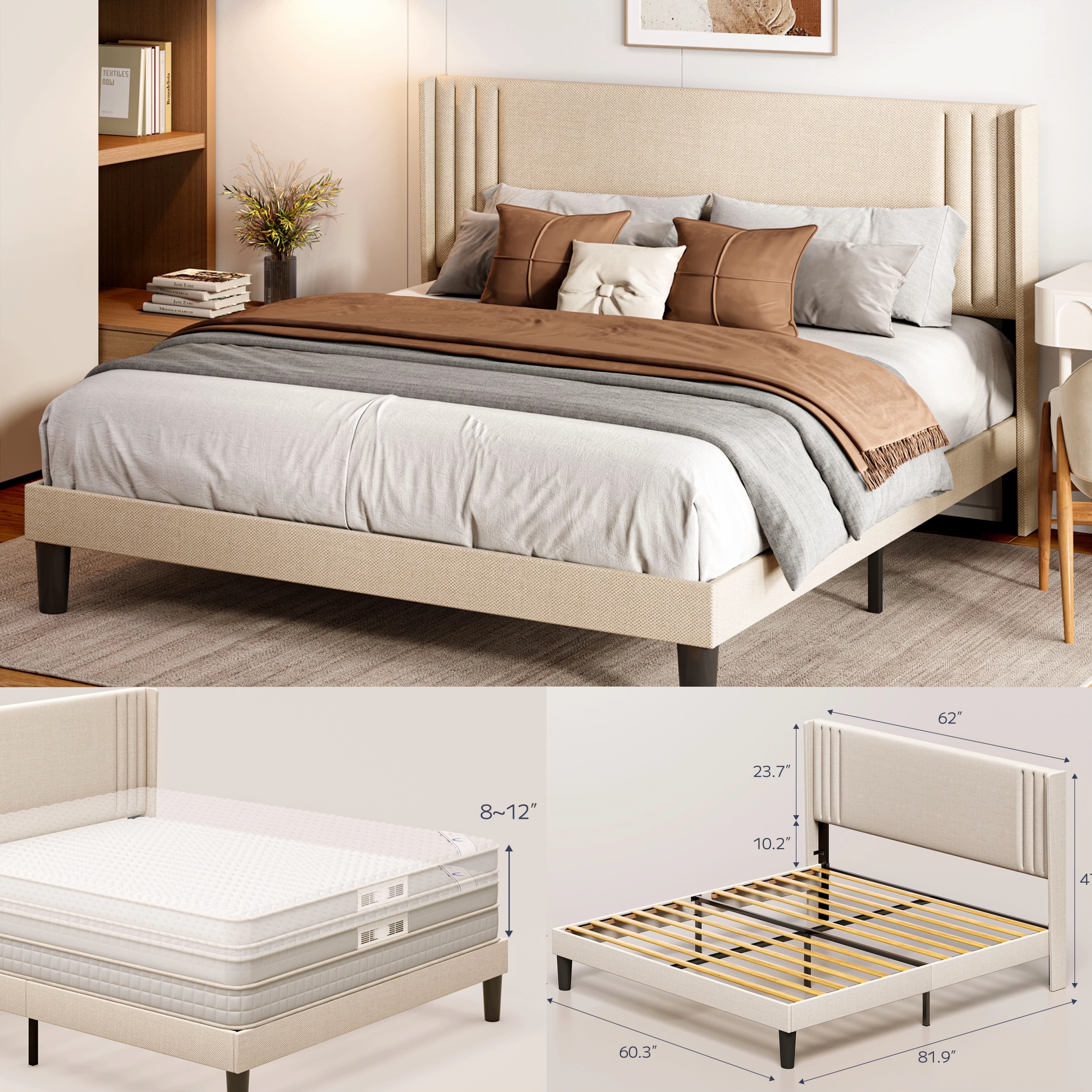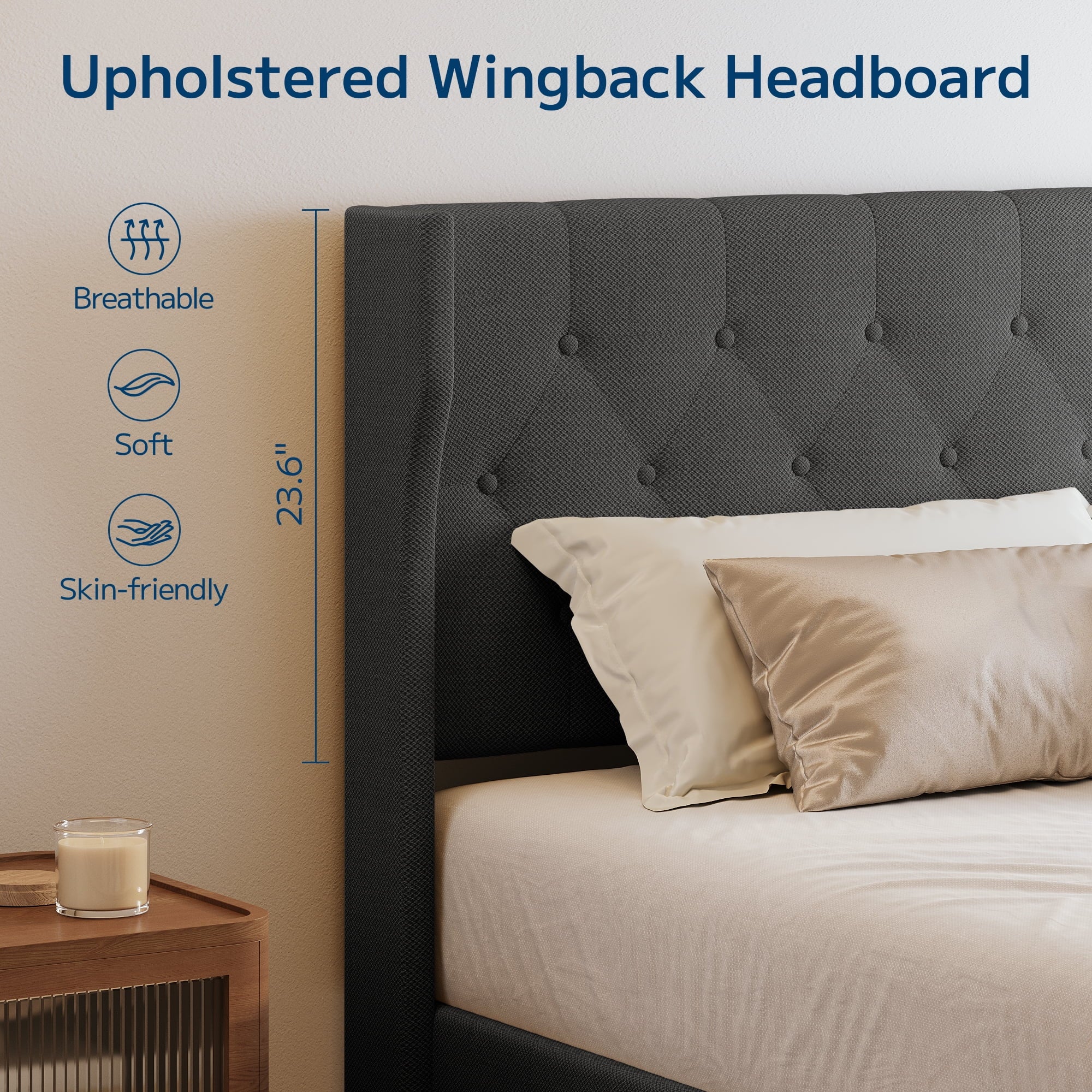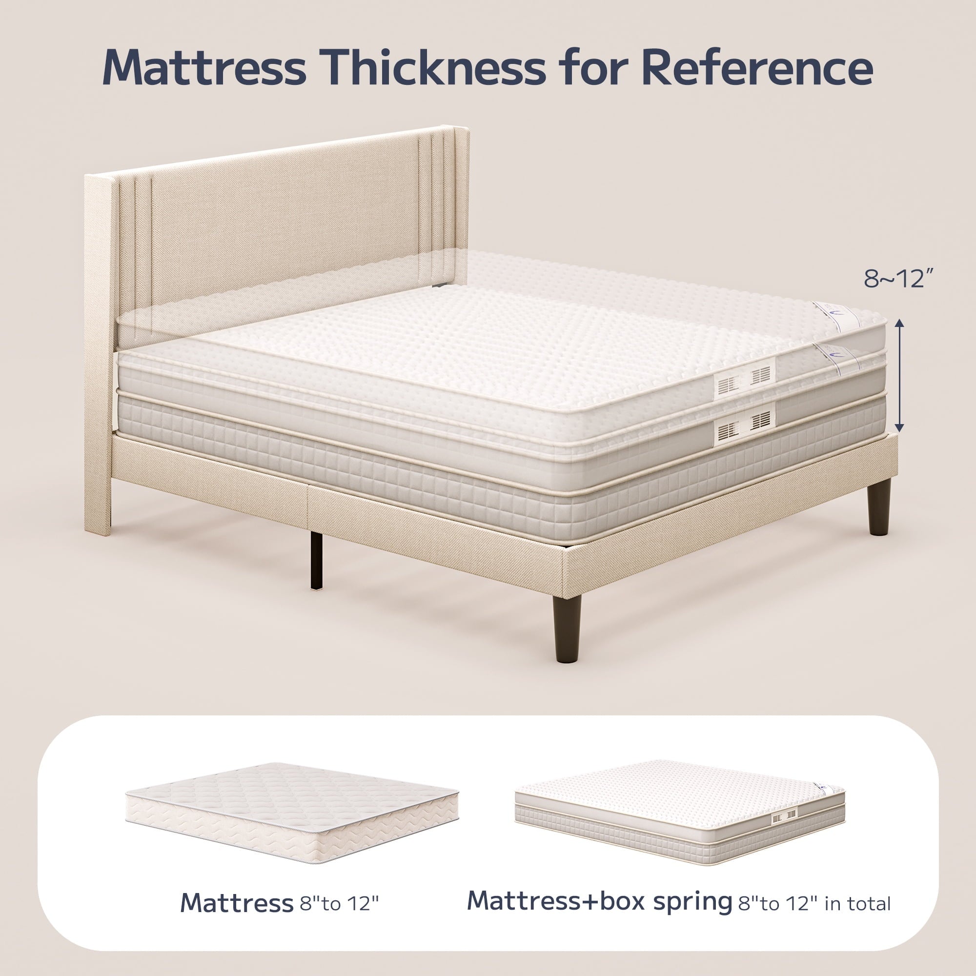 ??【Anti-shift design】The wingback headboard integrates high-density foam and cotton-linen blend upholstery, and the special structural design prevents pillow shifting and mattress displacement during sleep.