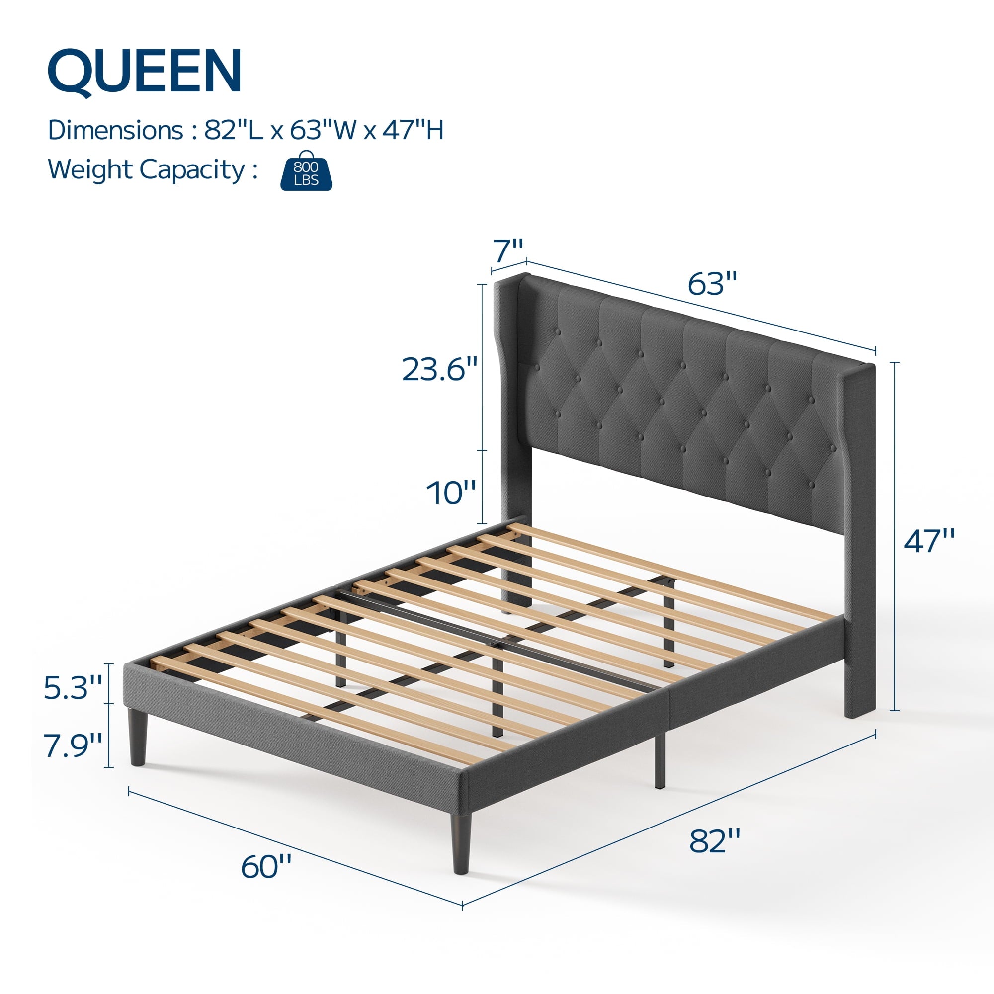 Asofer Queen Bed Frame with Wingback Headboard