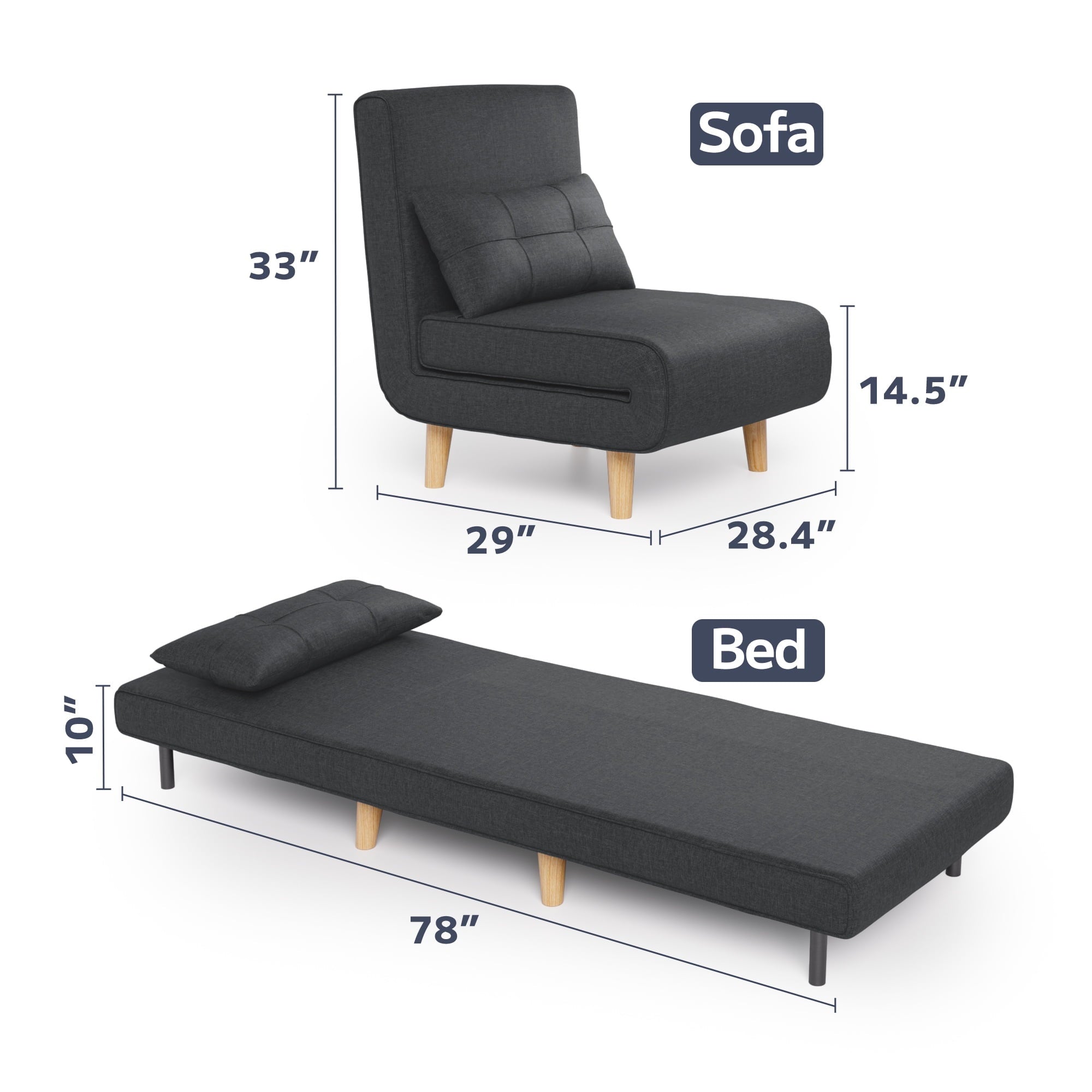 🧦【Best Choice for Small Spaces】This 3-in-1 sofa bed is a space-saving option that you can easily place anywhere, and our seat comes with pillows so it can be converted into a sofa bed if you have guests staying over. Sofa bed dimensions are 77.95″D x 28.35″W x 10″H, seat dimensions are 29.14″D x 28.35″W x 33.07″H, accent chair dimensions are 53.94″D x 28.35″W x 33.07″H.