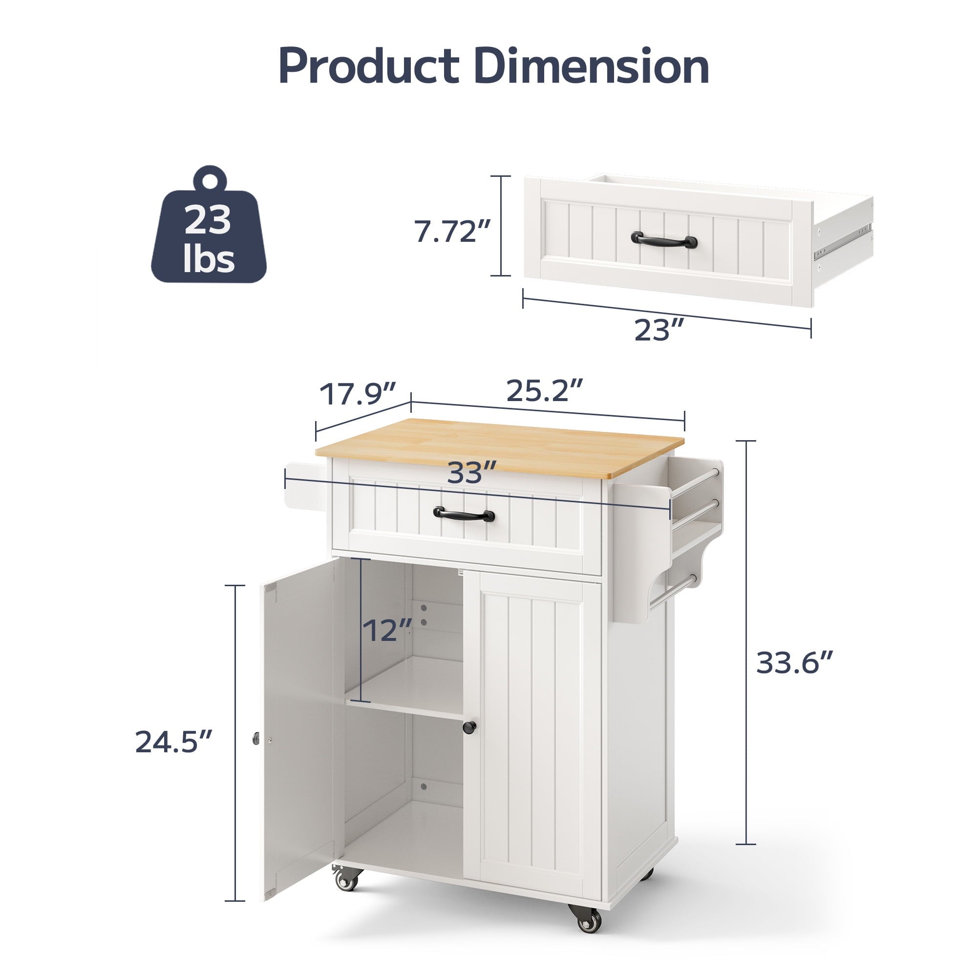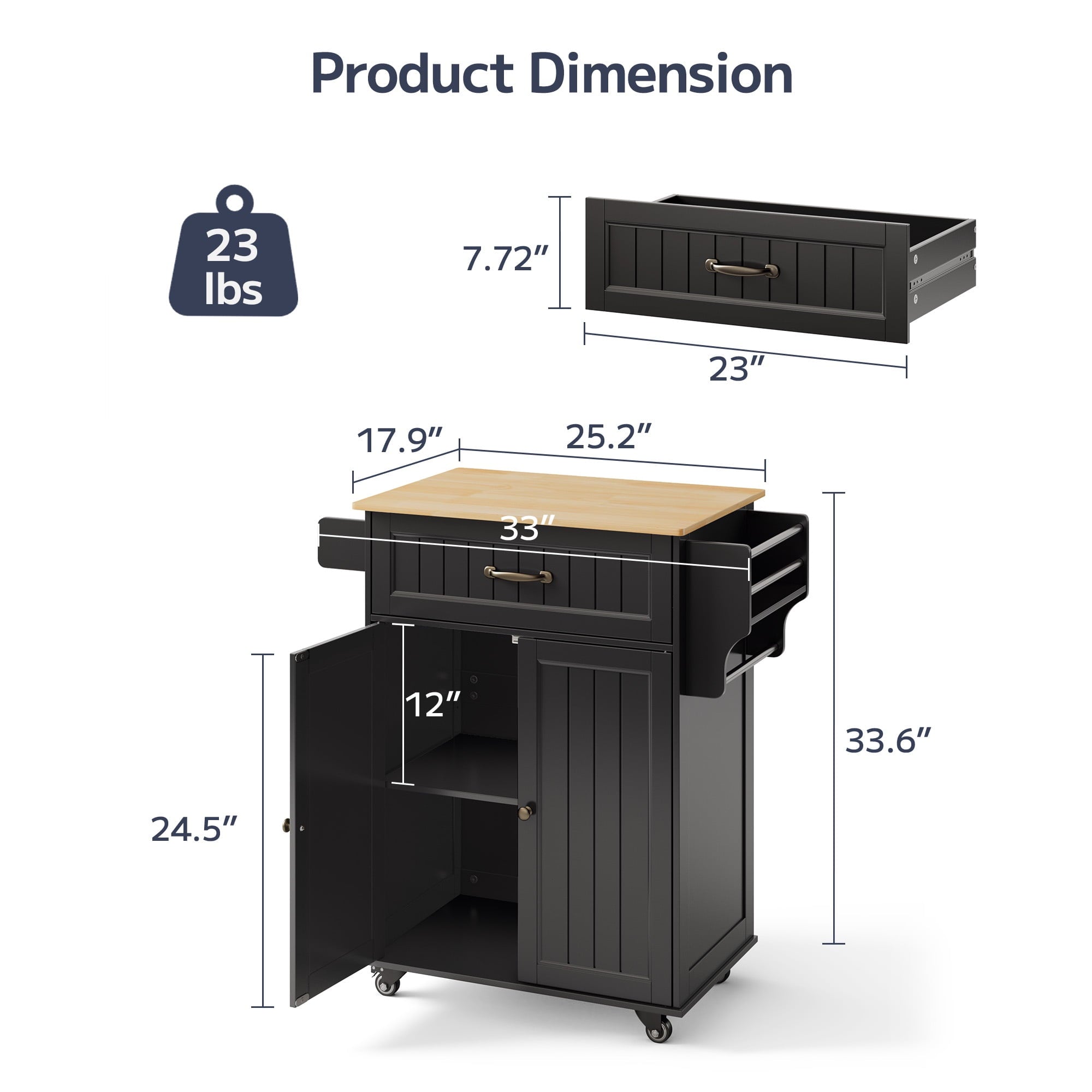 Asofer 33.6″ Kitchen Island Cart