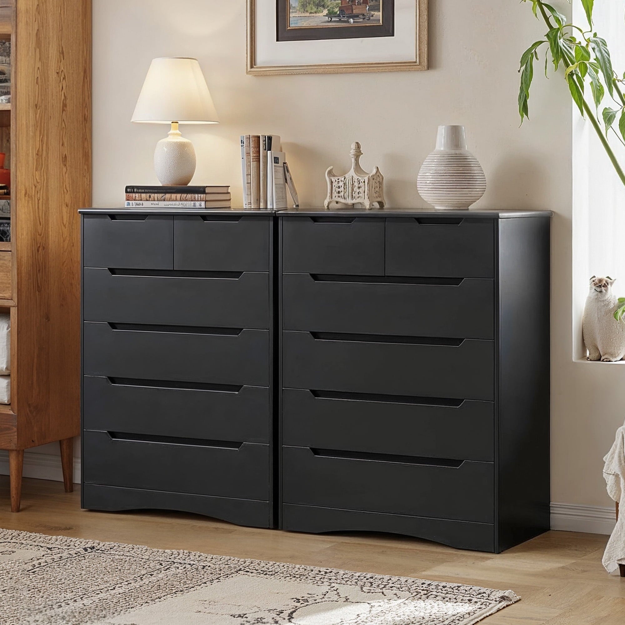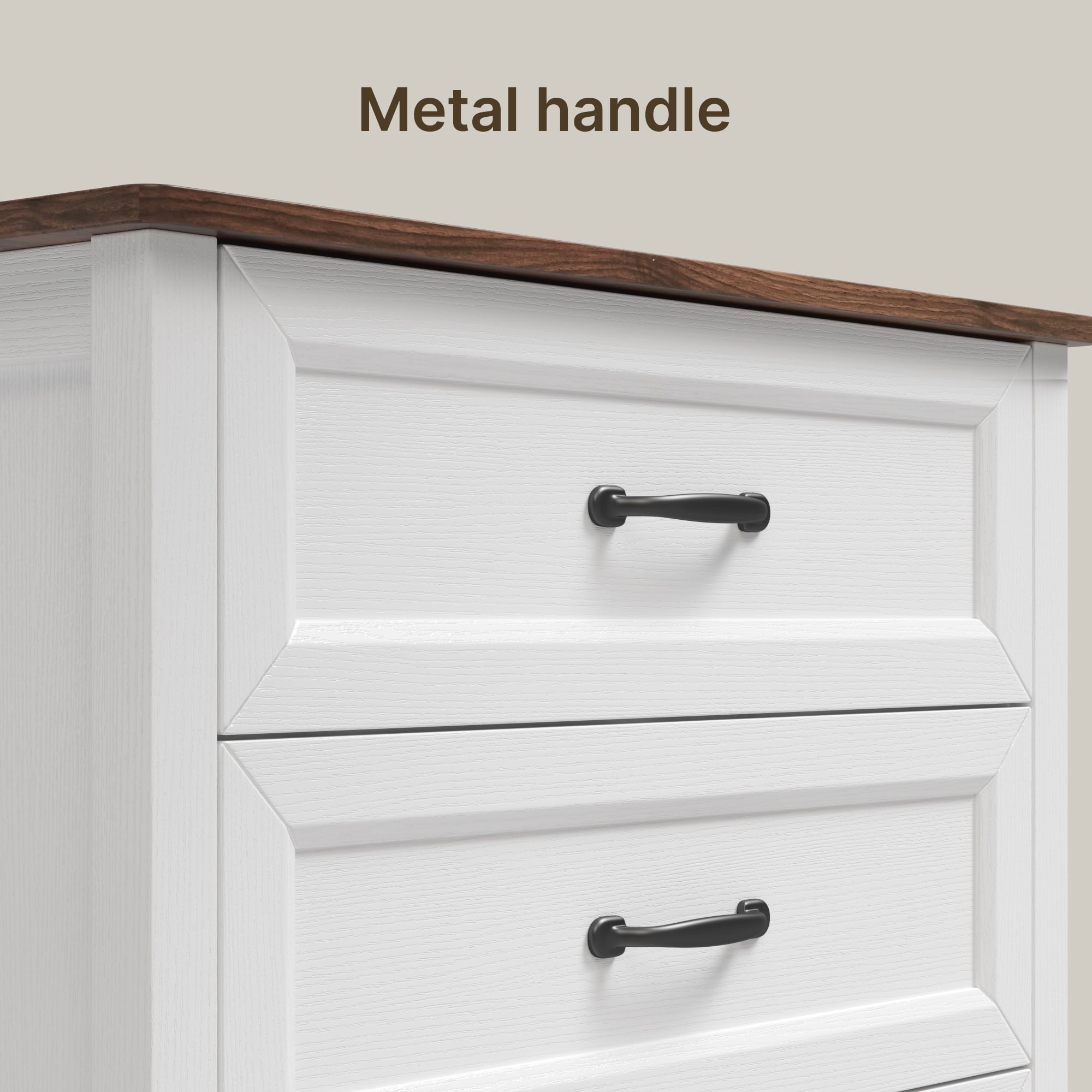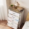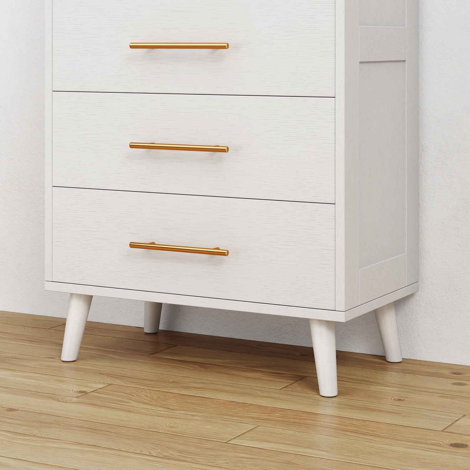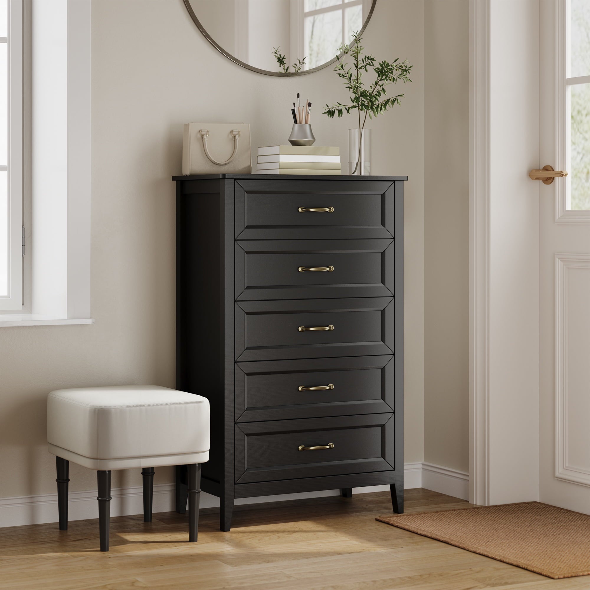 If you need extra storage space at home, you might want to consider the Asofer dressing cabinet. It seamlessly integrates into a modern farmhouse style. Five large drawers provide ample storage for clothes, socks, and children’s toys. The cabinet is made of solid wood, featuring a white finish and vertical stripe craftsmanship that enhances its overall visual appeal. The sturdy top surface is waterproof and scratch-resistant, providing a convenient place for your lamps or other items you wish to display, such as photos, decorations, and plants. Suitable for living rooms, bedrooms, hallways, entryways, closets, nurseries, and more.
