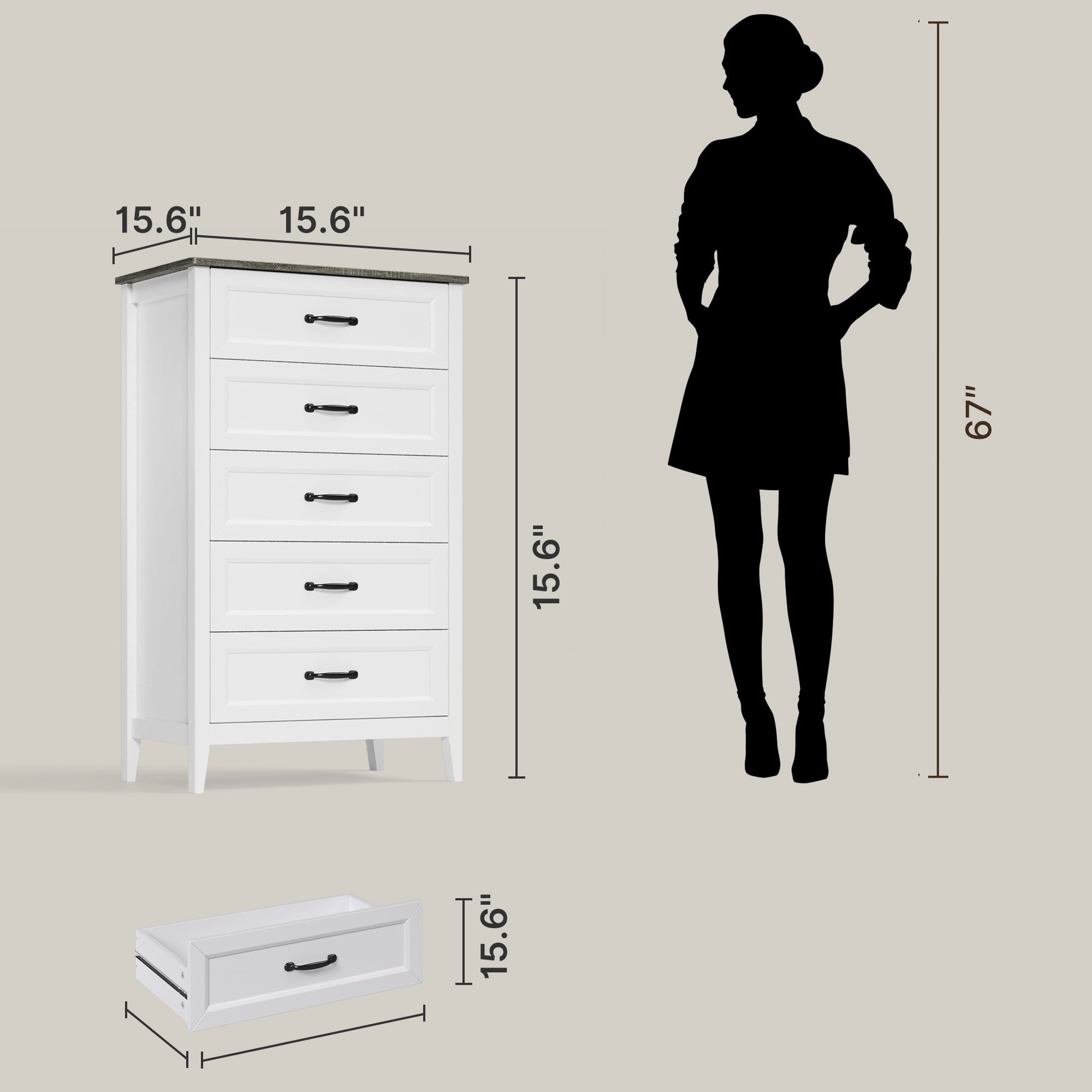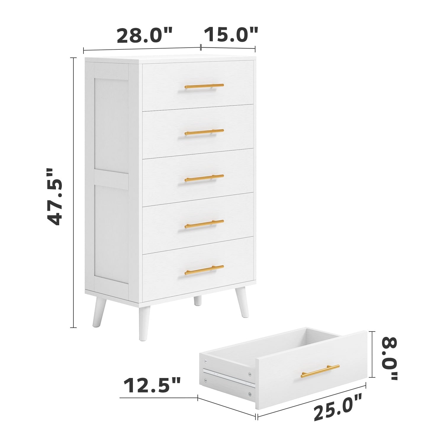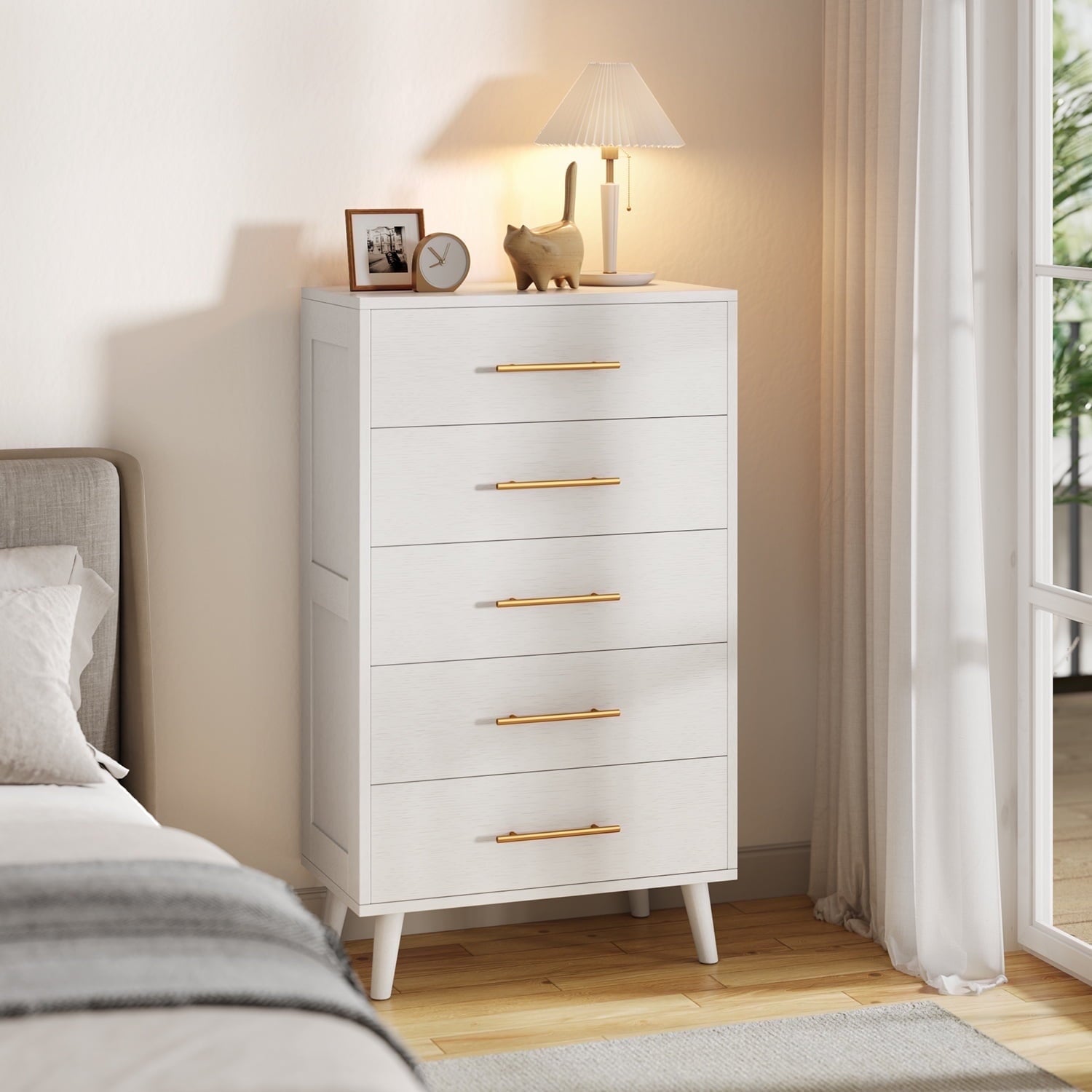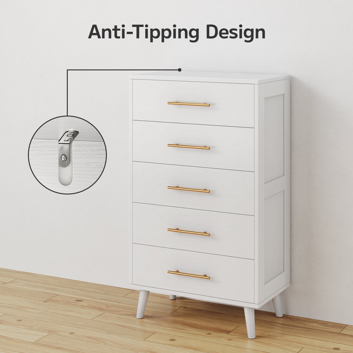 Asofer Tall 5 White Drawer Dresser for Bedroom