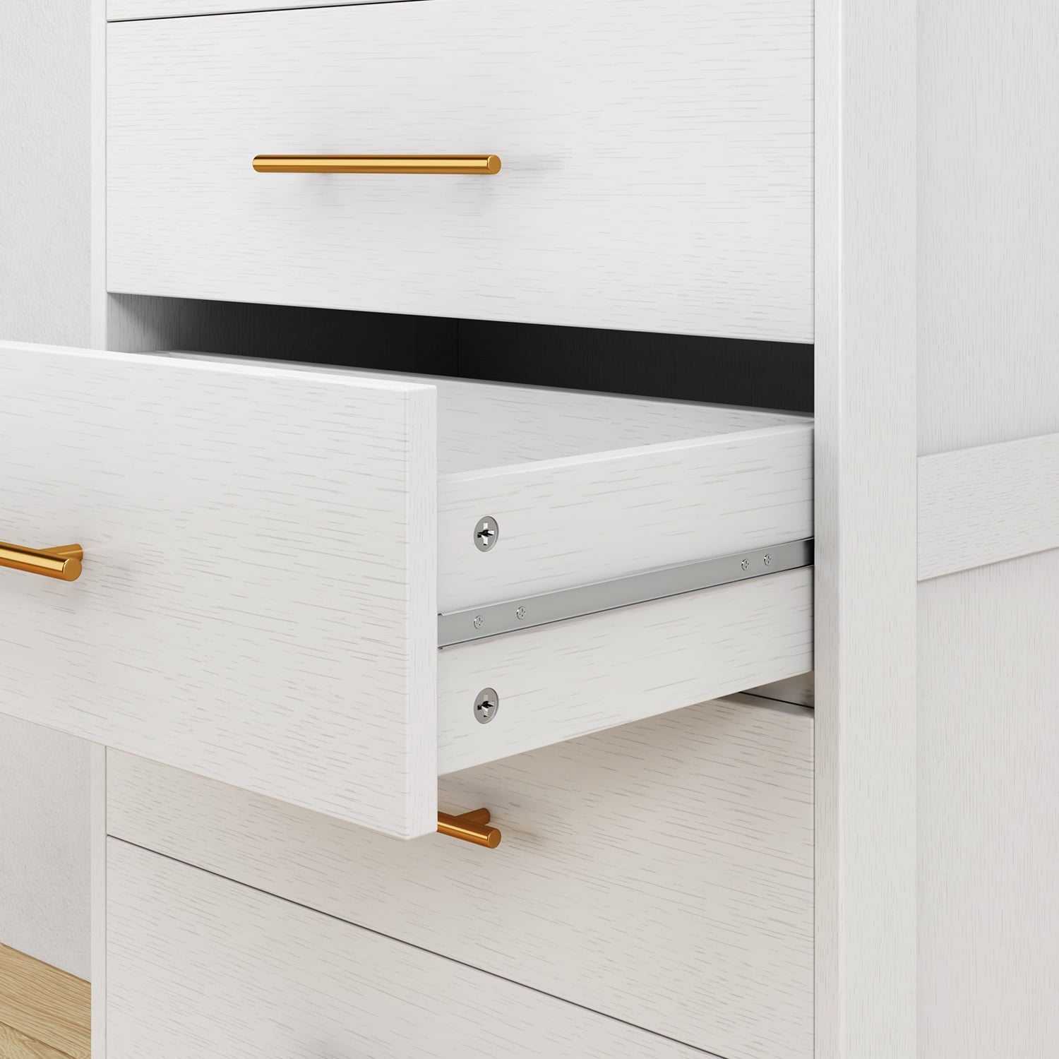 ⛄【Simple & Stylish Look】This clean white cabinet features a chic gold-tone metal handle – minimalist yet eye-catching.