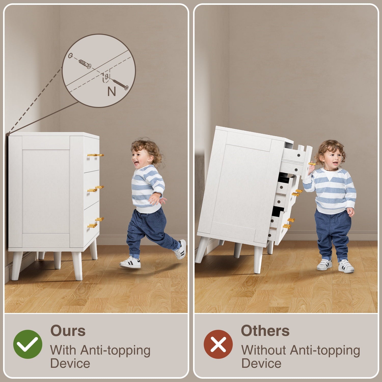 🌙【Built Tough & Safe】Made with strong engineered wood that lasts. Angled legs and anti-tip hardware keep it rock-solid and secure.