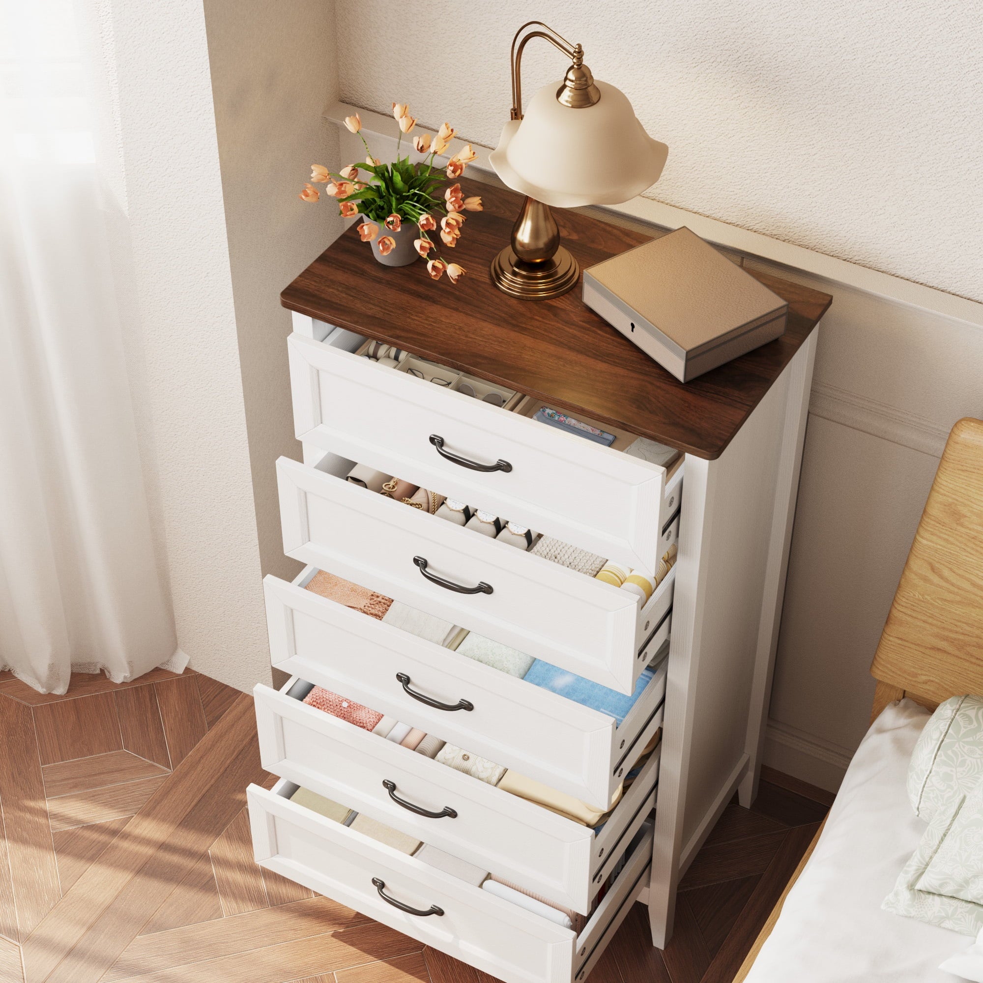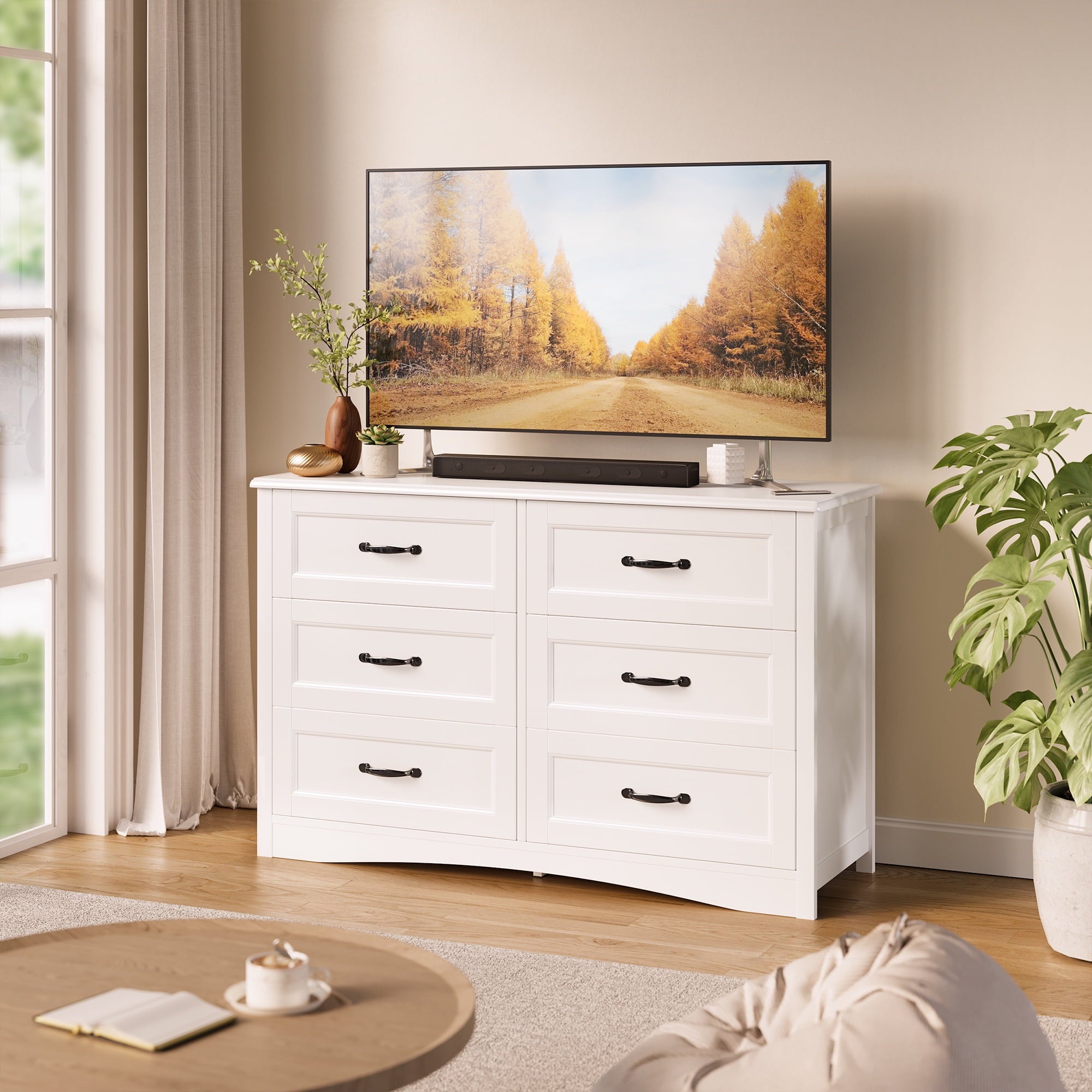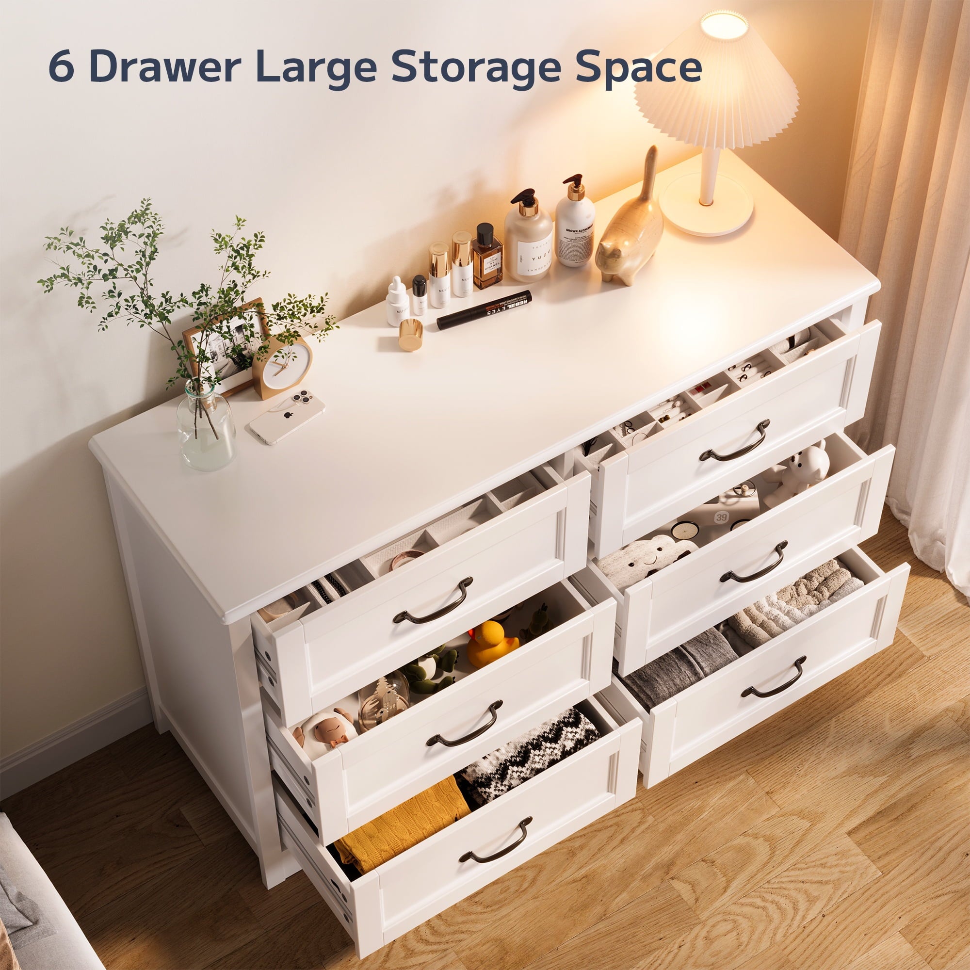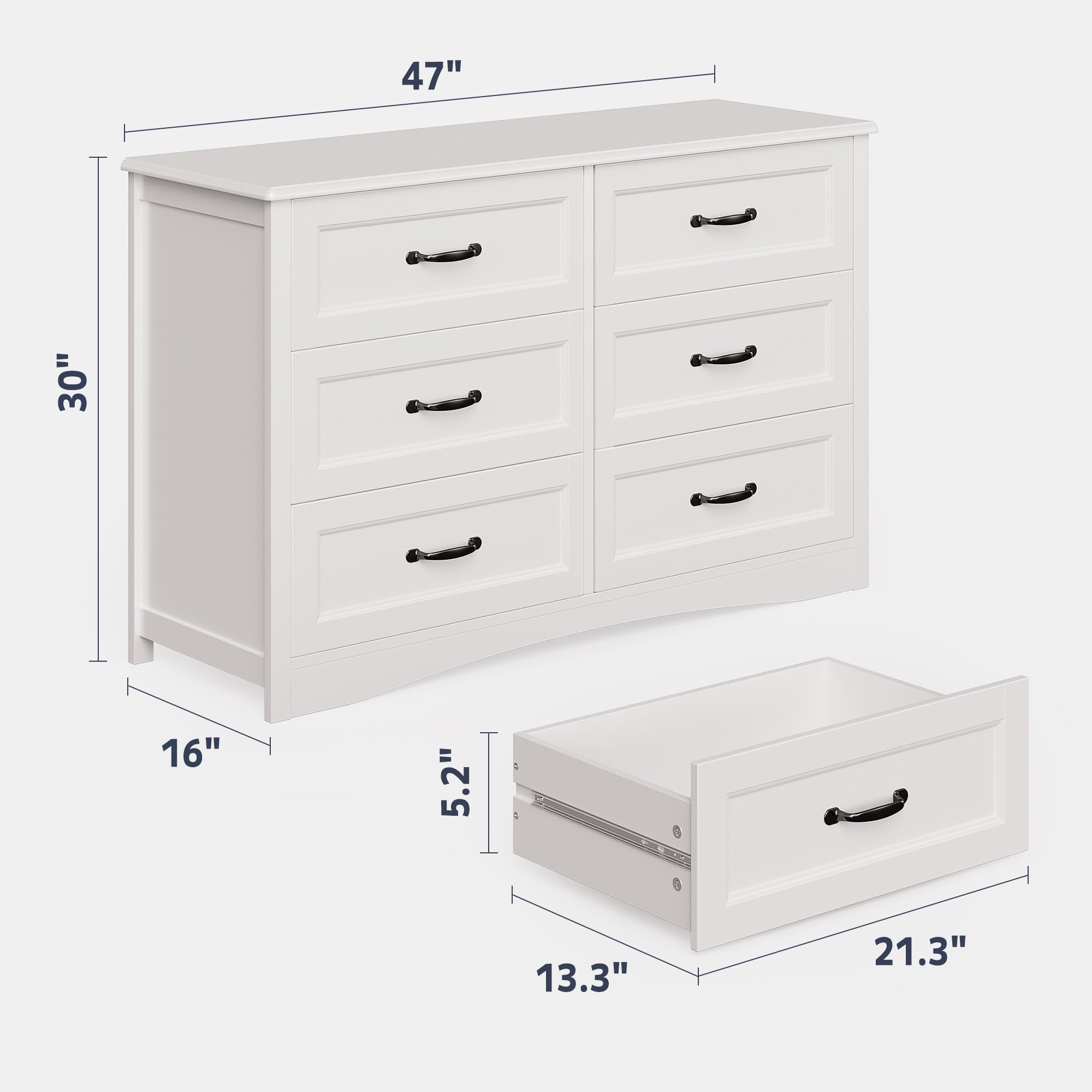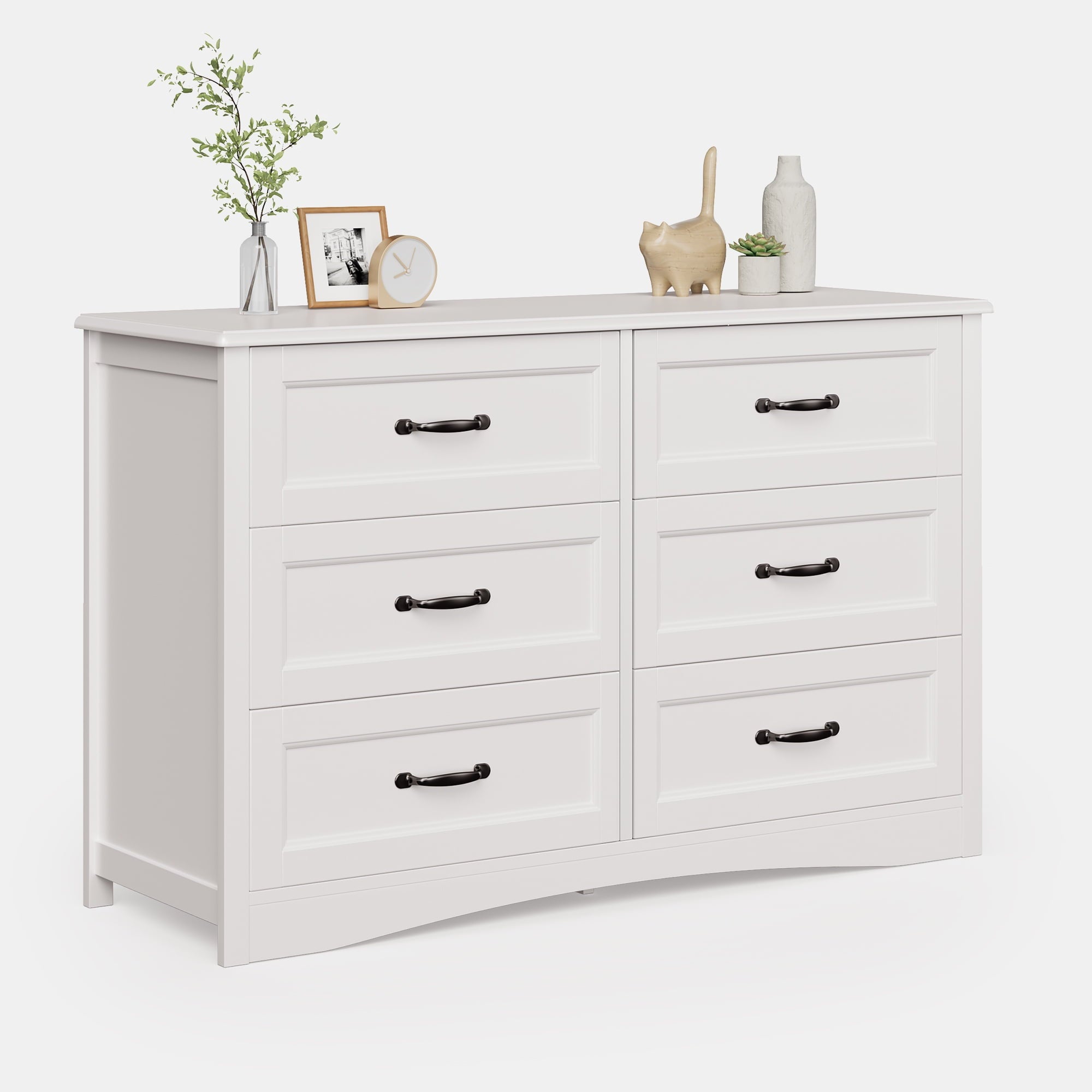 Asofer 6-Drawer White Dresser Cabinet, Sturdy Wood Double Chest for Bedroom – The best housewarming Present!