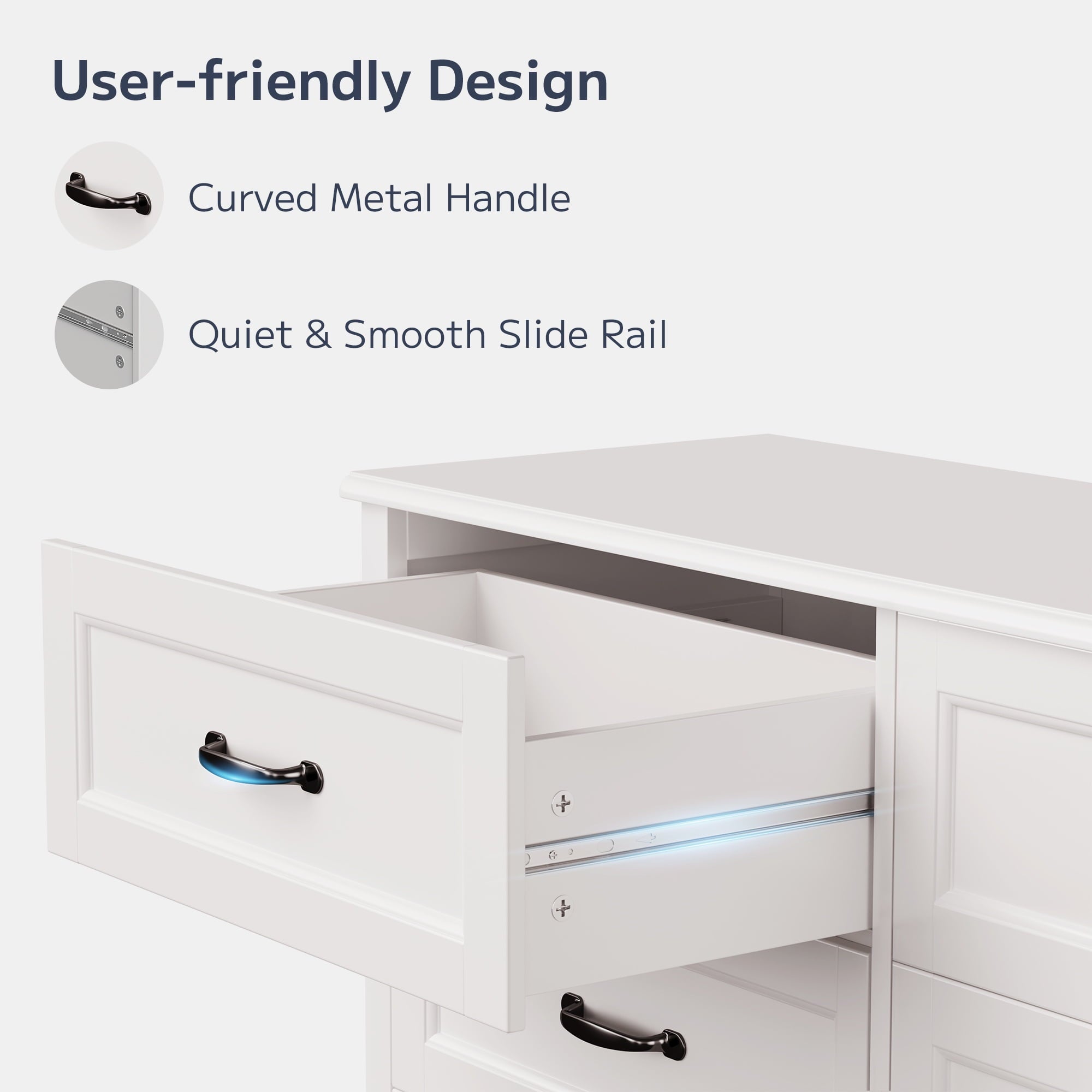 🎁【Extremely Considerate Design】This white dresser cabinet features an arched base, a design element that not only ensures your drawers stay securely in place but also adds a touch of style to your furniture. We also have an anti-tip design that must be mentioned, safety is the top priority. You’ll no longer worry about accidental collisions, ensuring your family’s happiness.