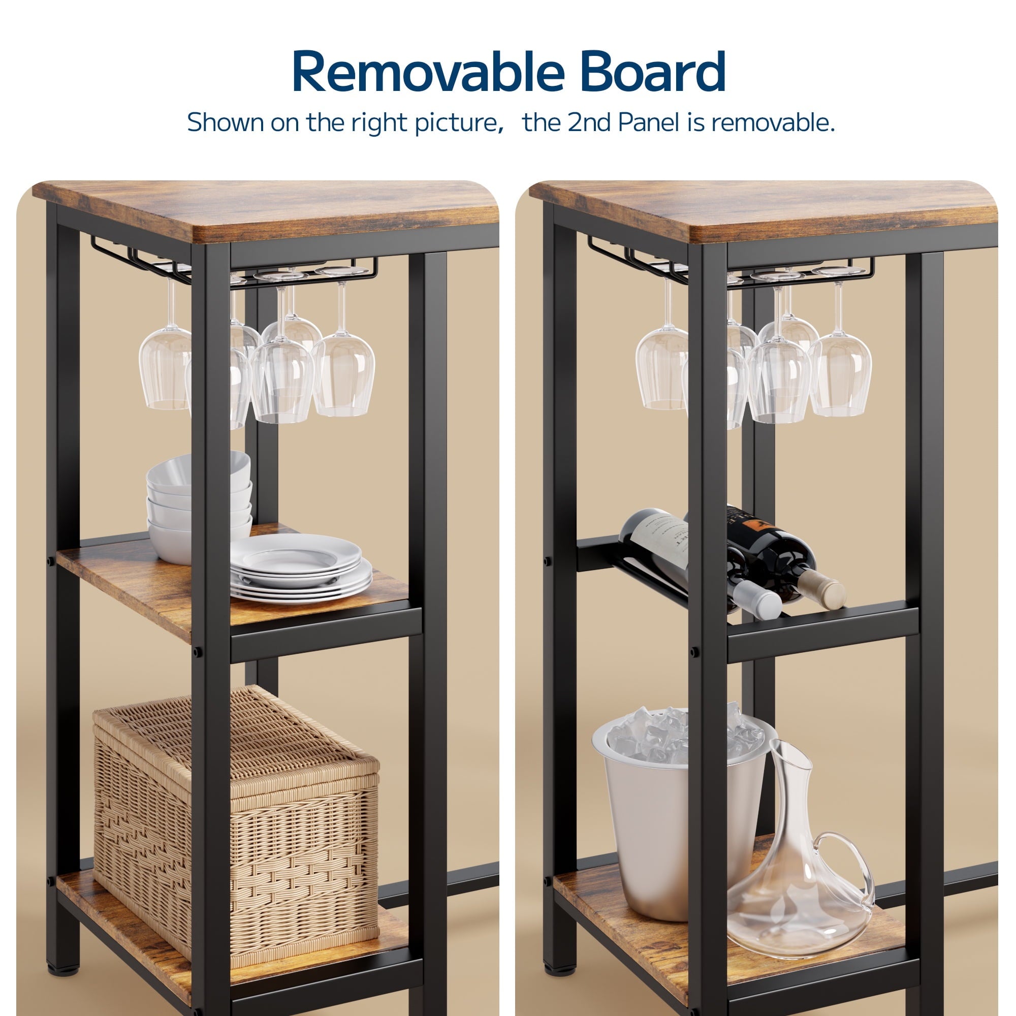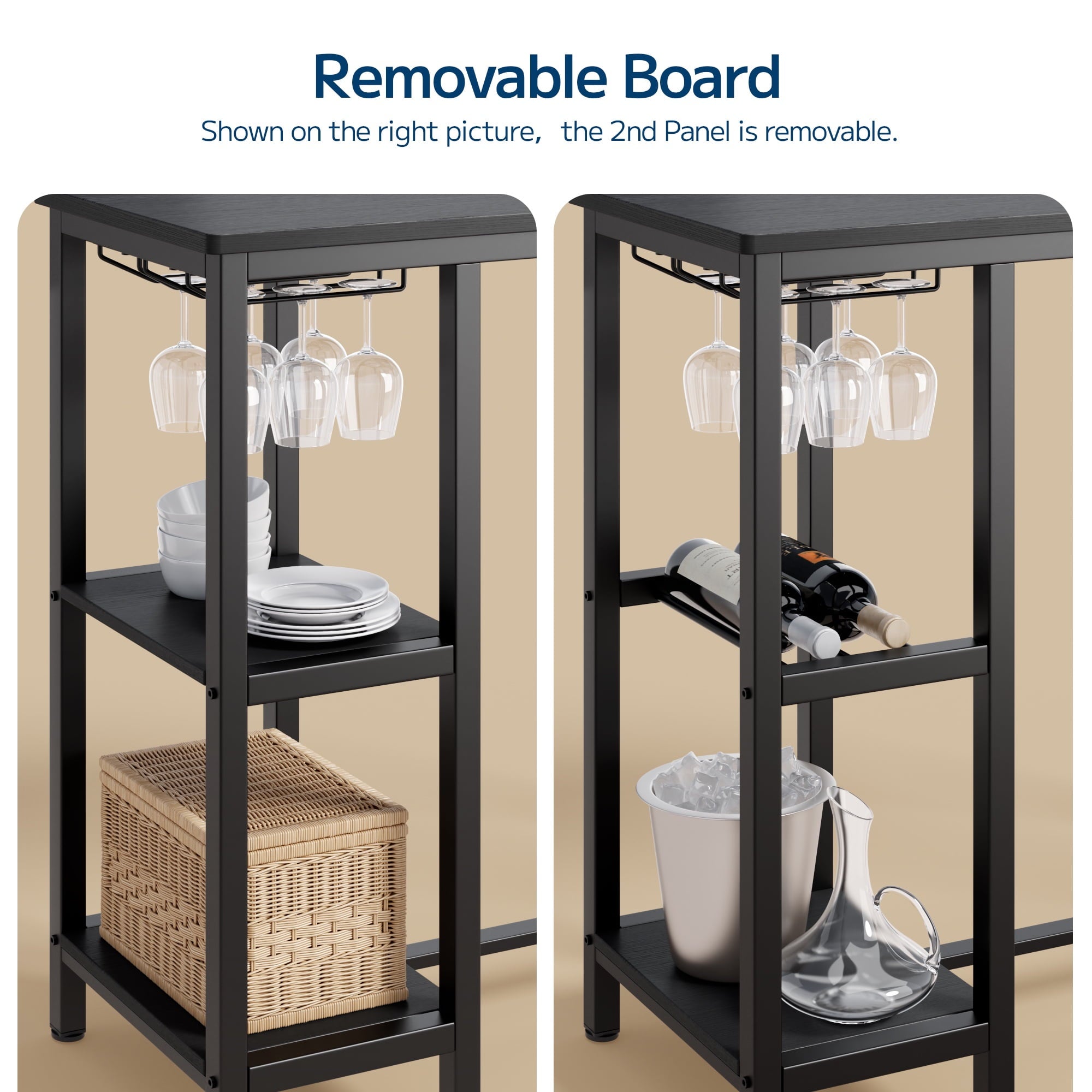 💐【Enough Storage Space】Distinguishing itself from other products, this one makes full use of vertical space with 2 layers of storage and 2 rows of wine glass rack. Keep your essentials within reach. It can store daily necessities like cutlery, glasses, tissues, toothpicks, as well as snacks, wine, coffee, etc., enhancing your dining experience!