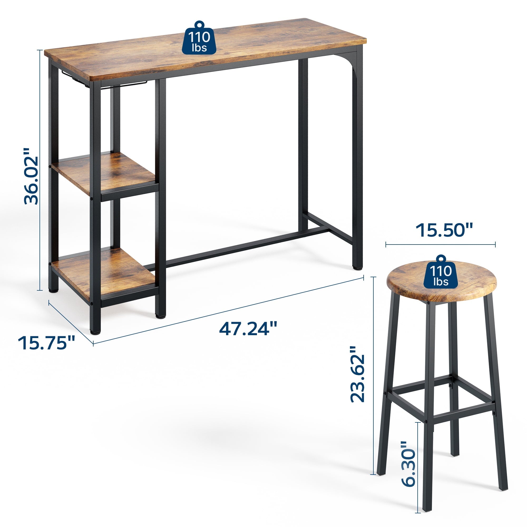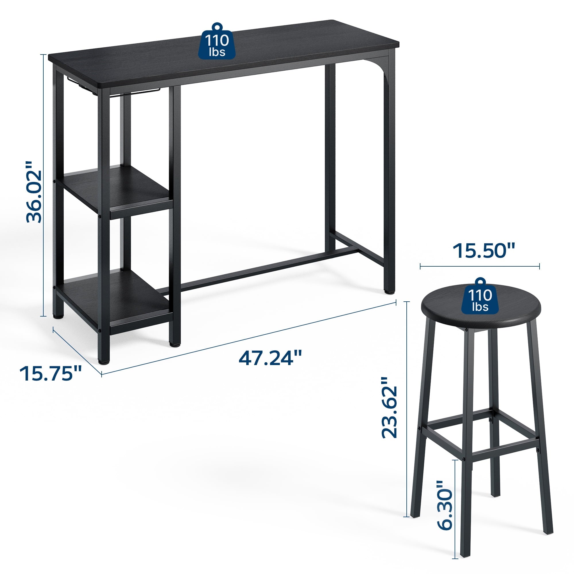 - Dimensions: Table:47.24“ L x 15.75” W x 36.02“ H