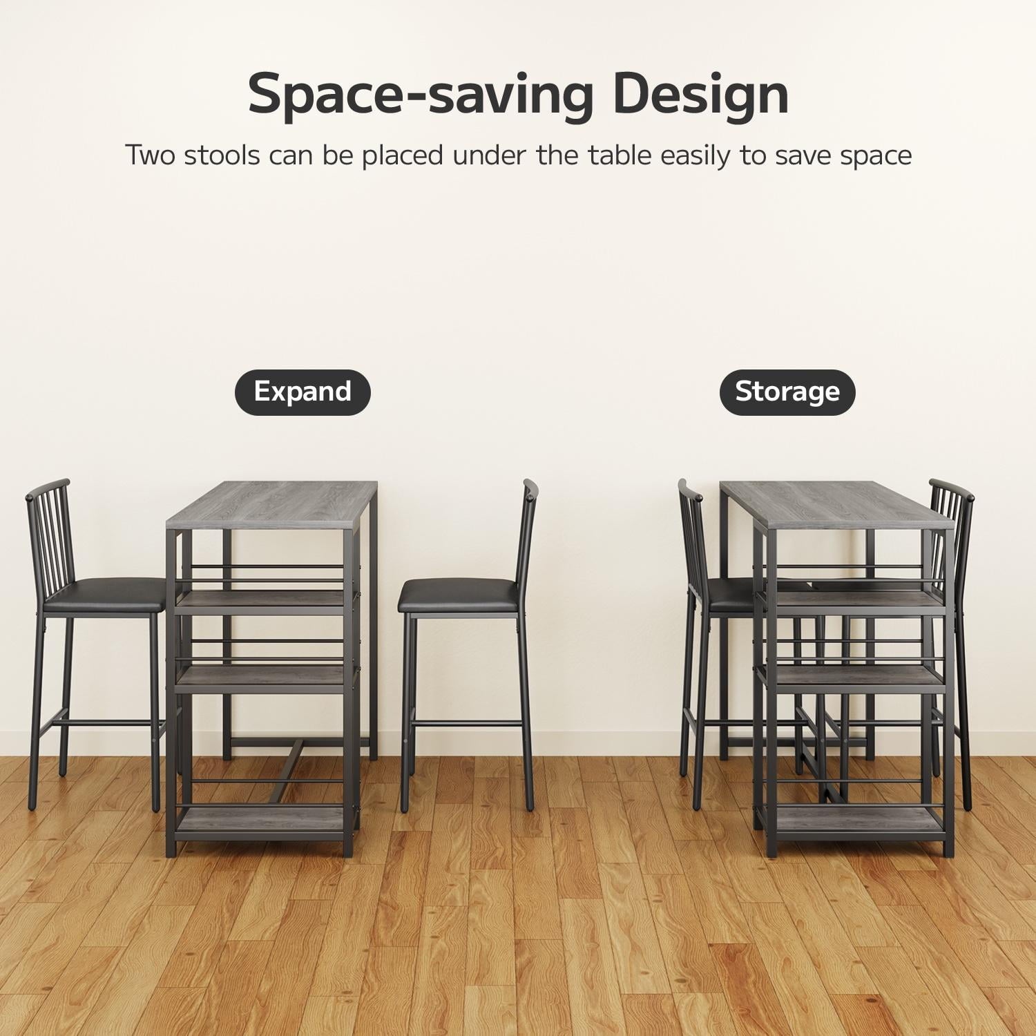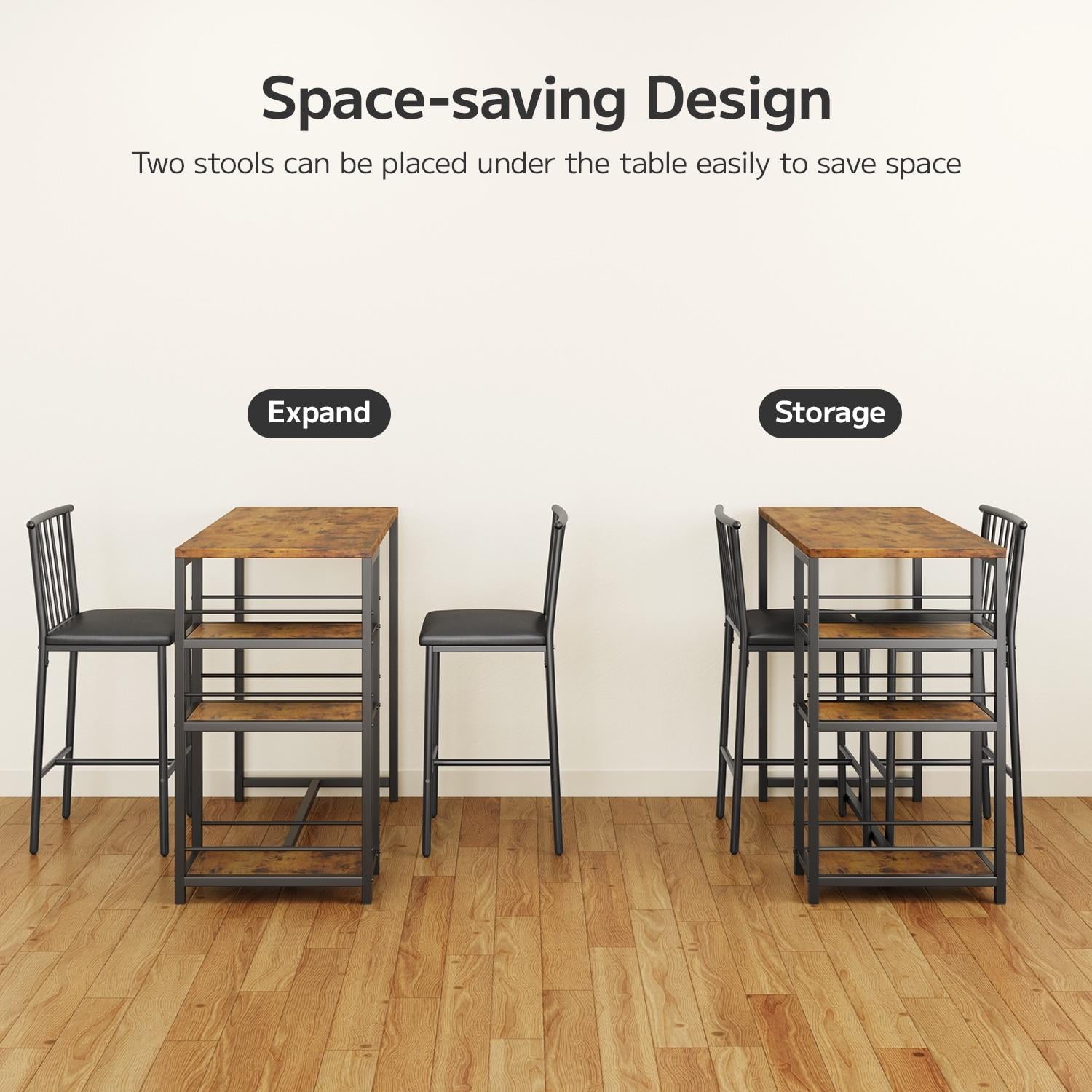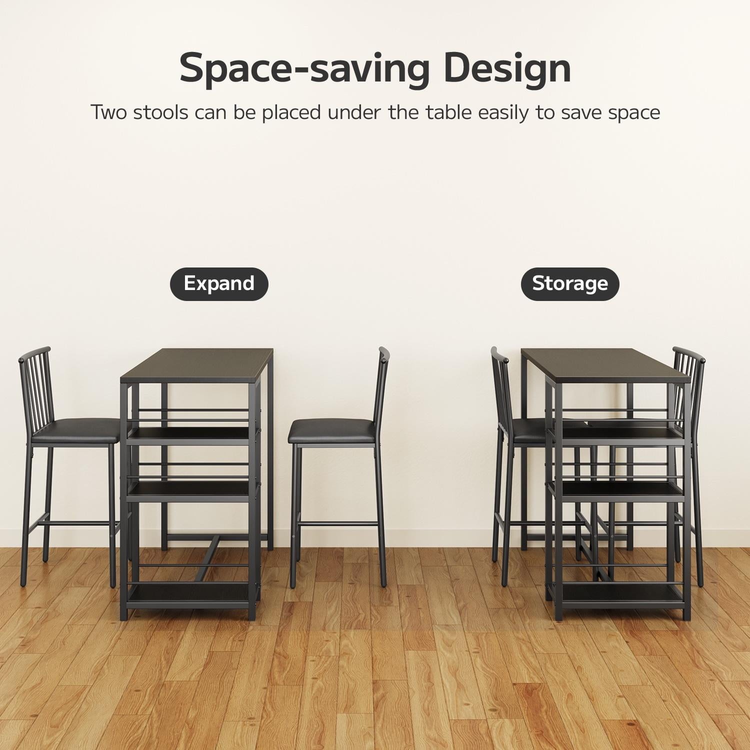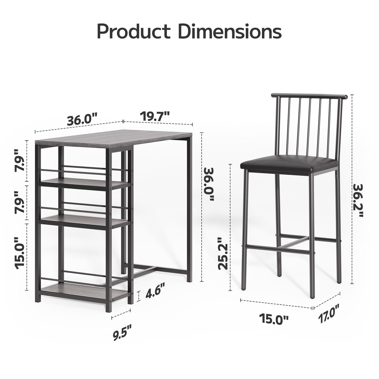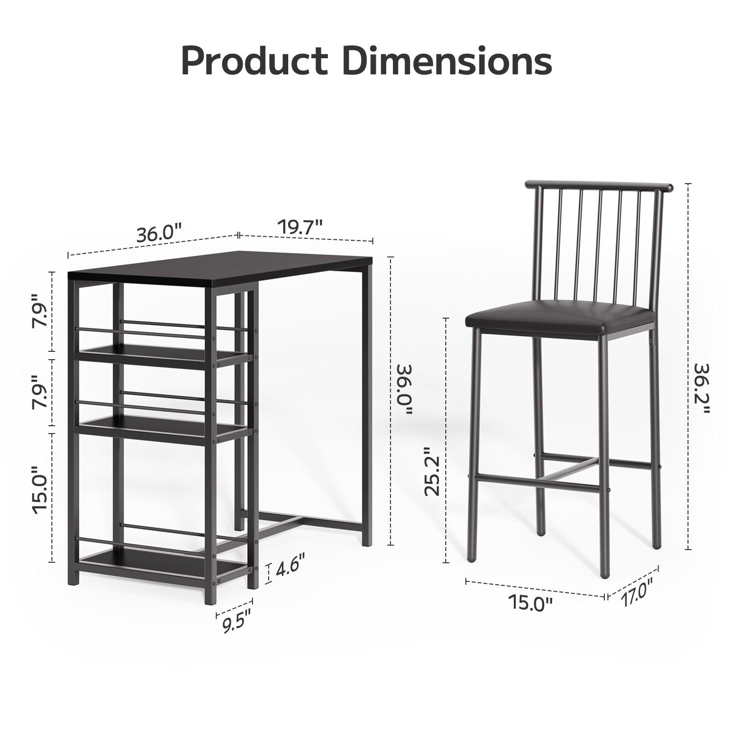 🍒【Perfect for small spaces】This set of table and chairs is compact, taking up less than 5.38 square feet of space. It is perfect for couples to use as a home tavern, making it an ideal choice for socializing at home. Its minimalist design and elegant appearance can complement various decors in your kitchen, living room, dining room, patio, bar, or office.