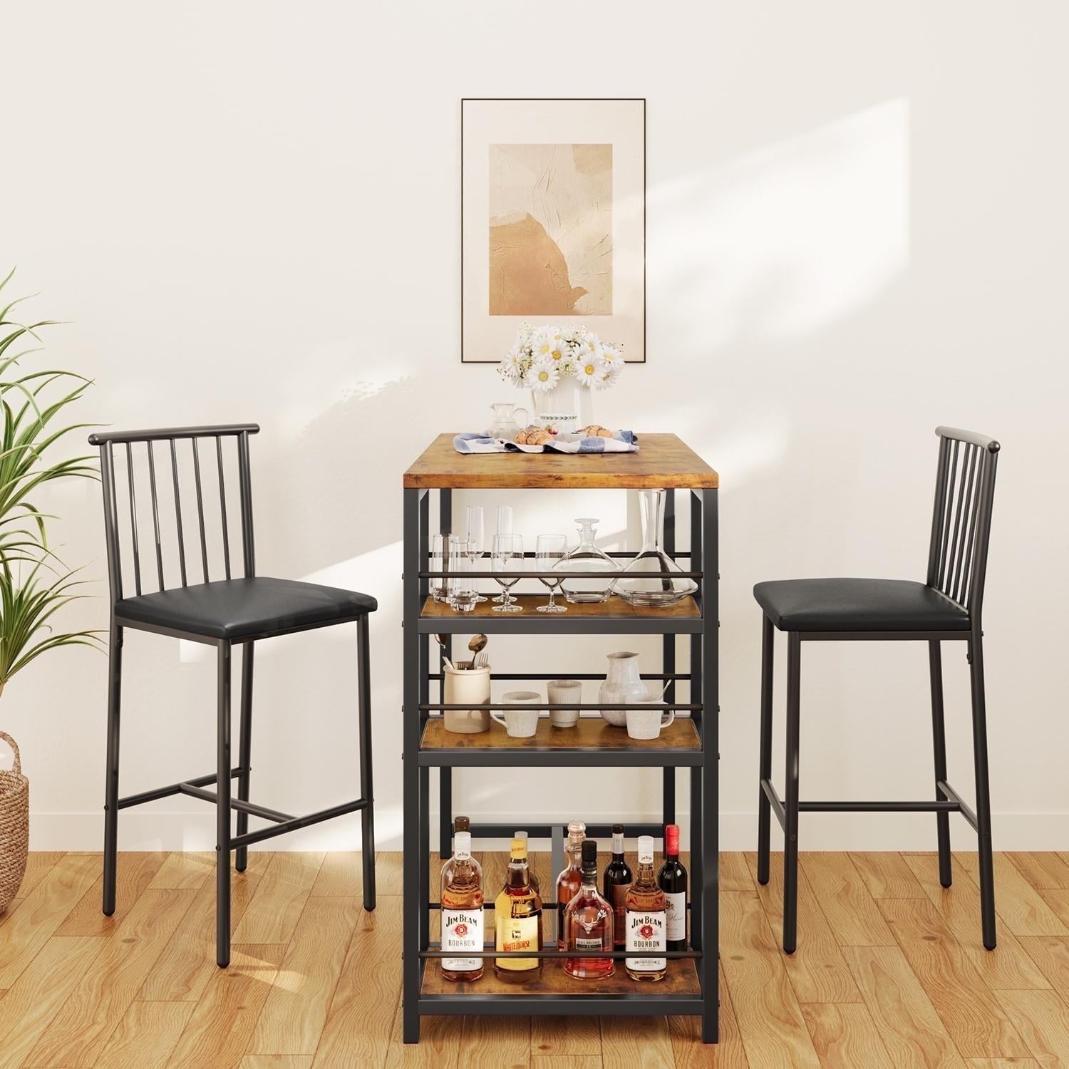 Asofer Modern Bar Table and Chairs Set for 2