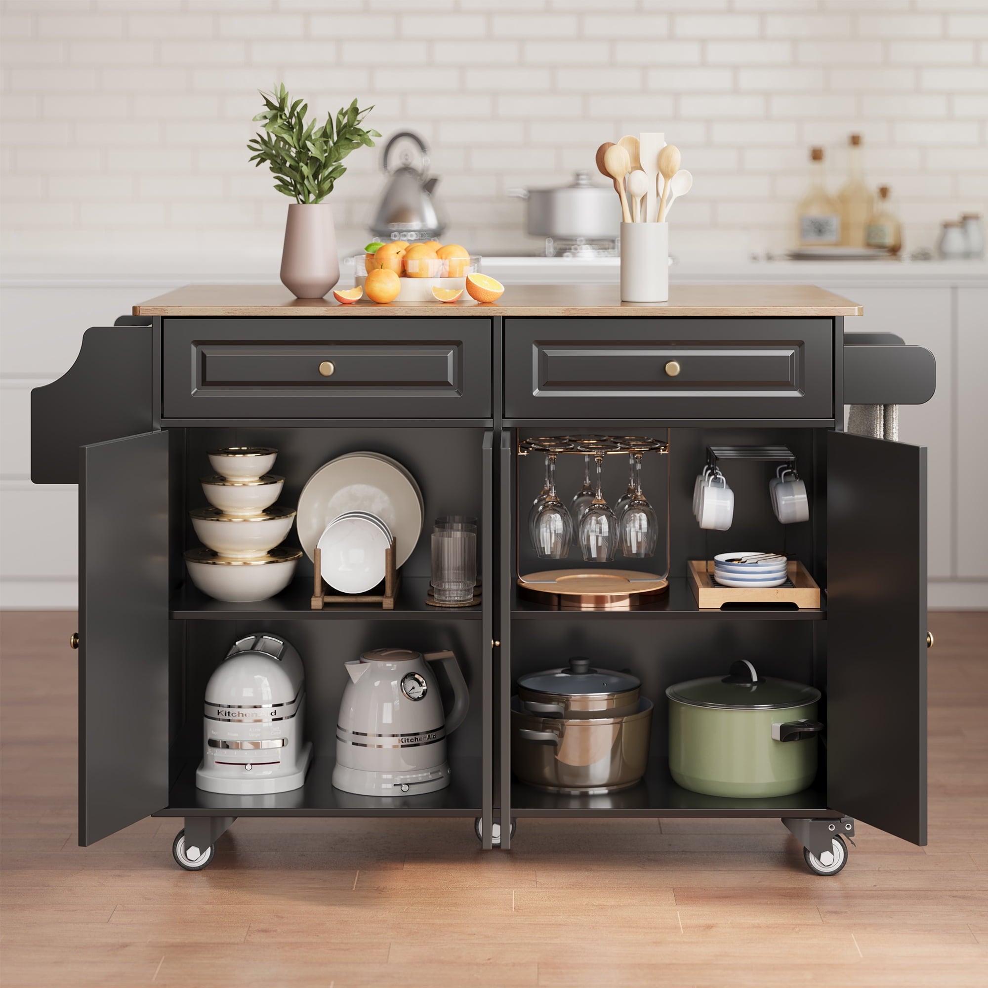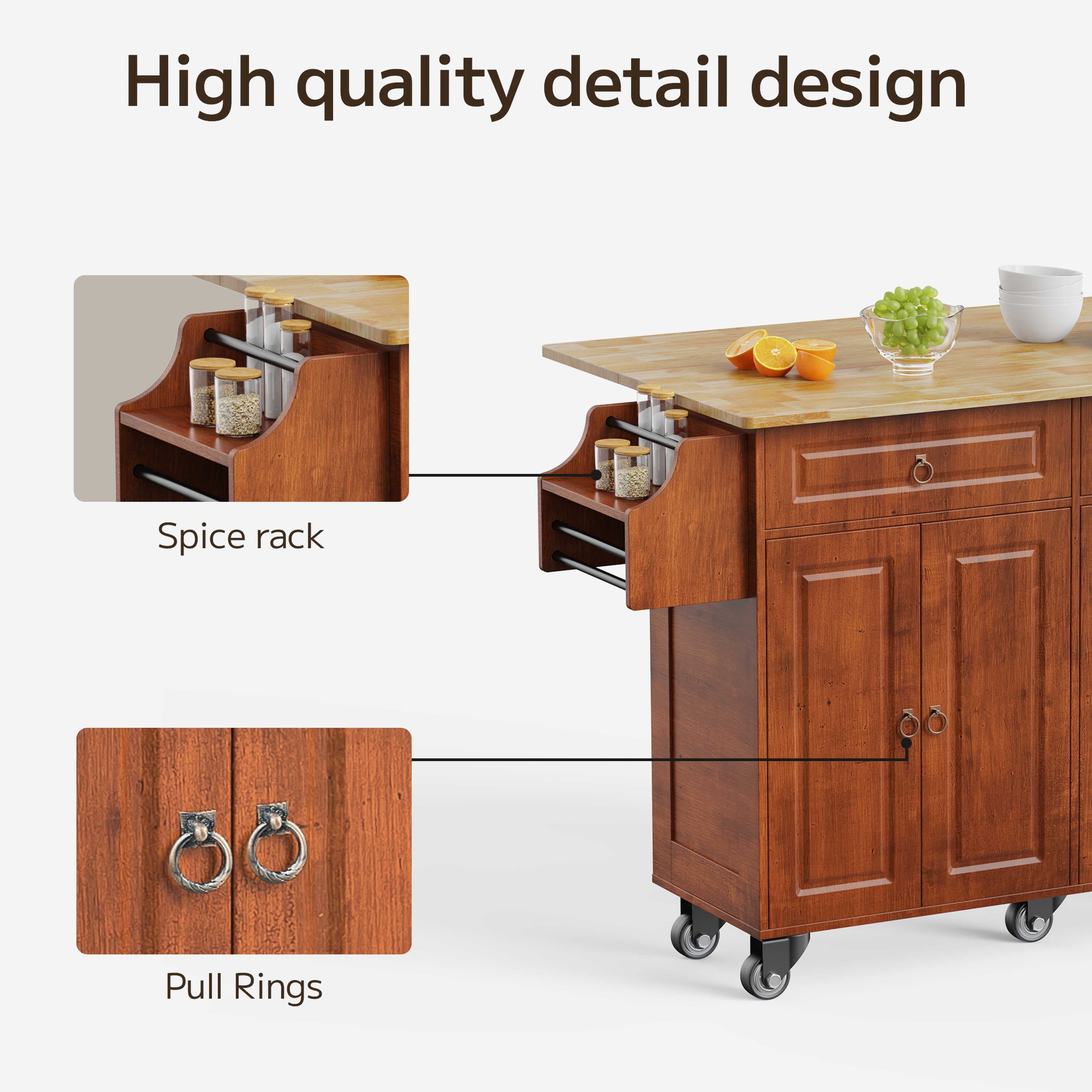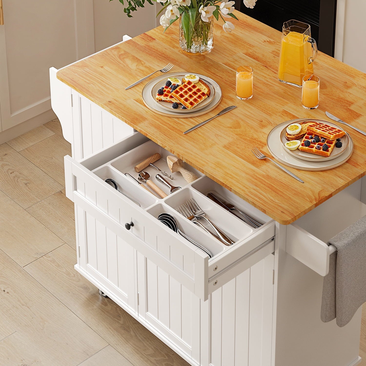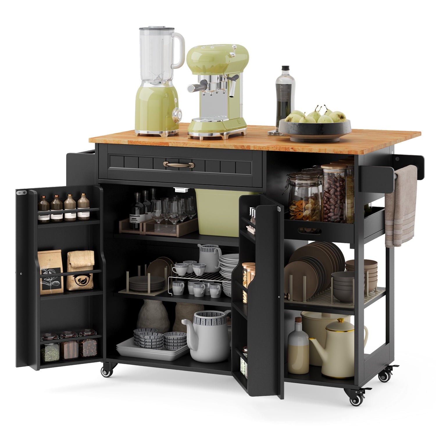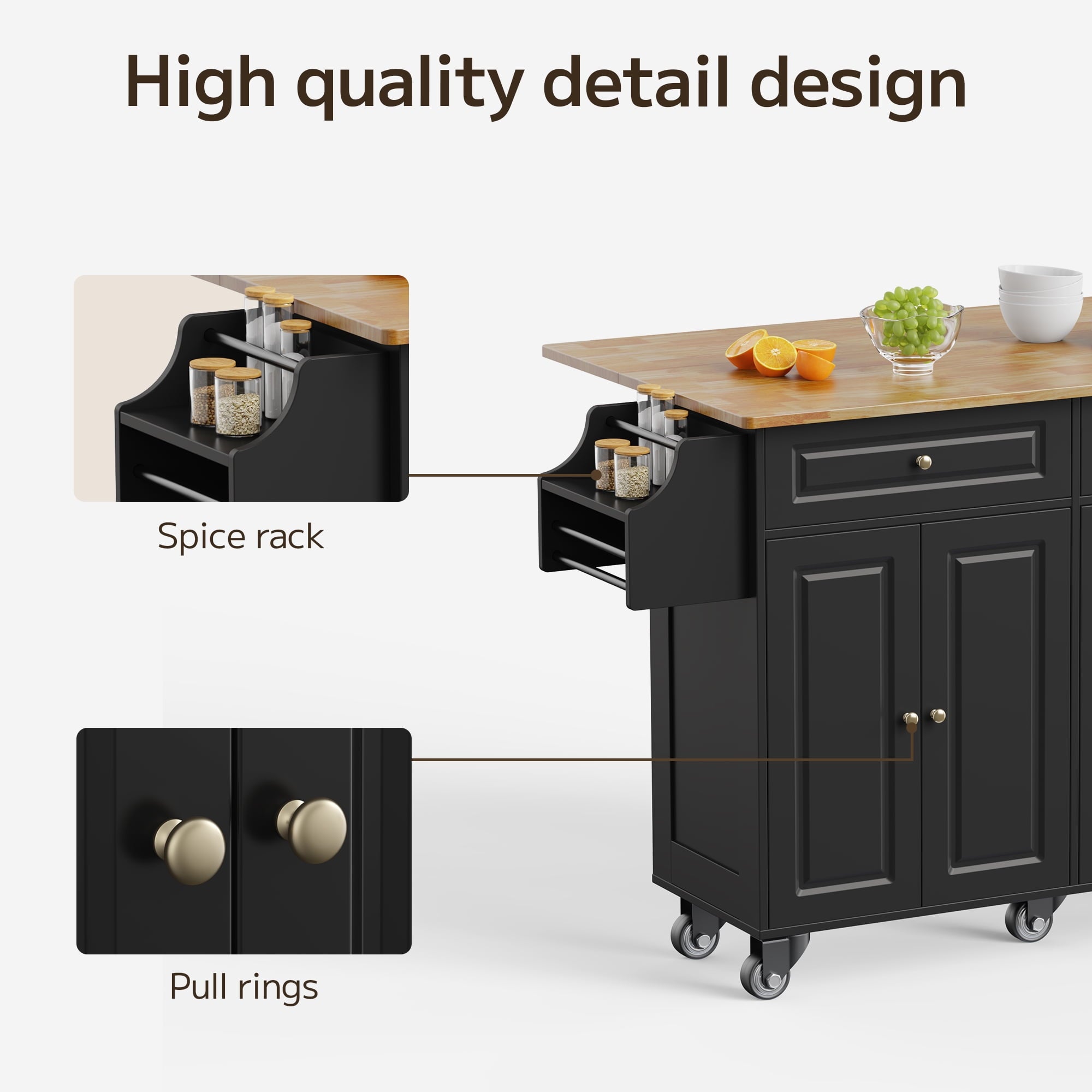 【Kitchen Island with Drop Leaf】【Large Storage Capacity】