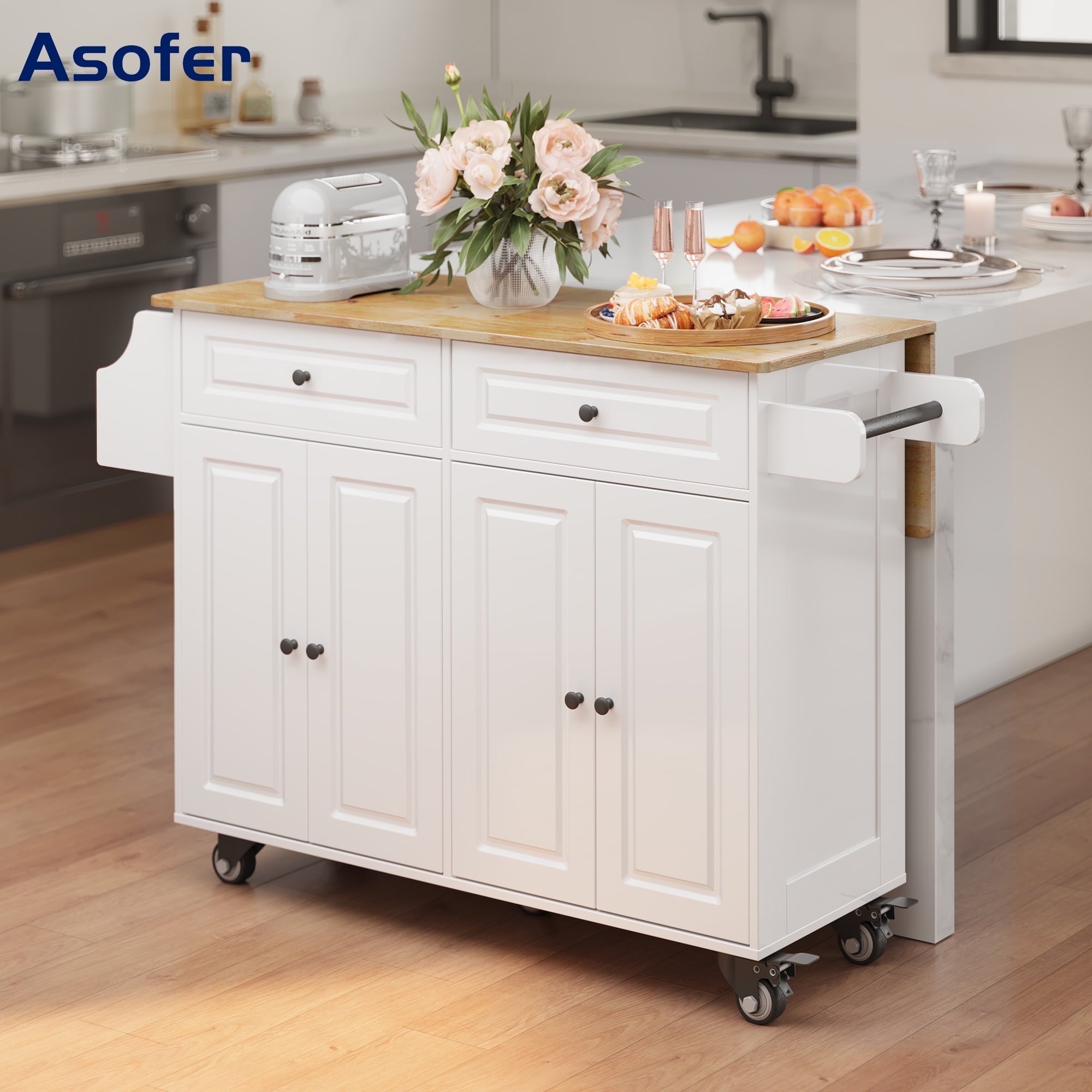 Asofer 60.6″W Kitchen Island Cart with Drop Leaf