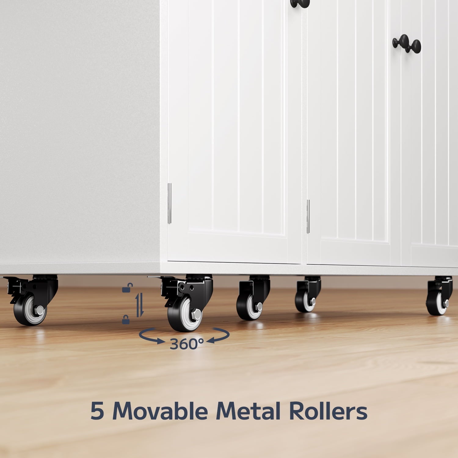 🍻【Large Storage Capacity】This rolling kitchen cart features a large cabinet with double doors, inside which are two adjustable shelves spaced 10 inches apart, allowing you to store most kitchen items and refresh your kitchen. There are also spice racks and towel racks on both sides, meeting your various needs all at once.
