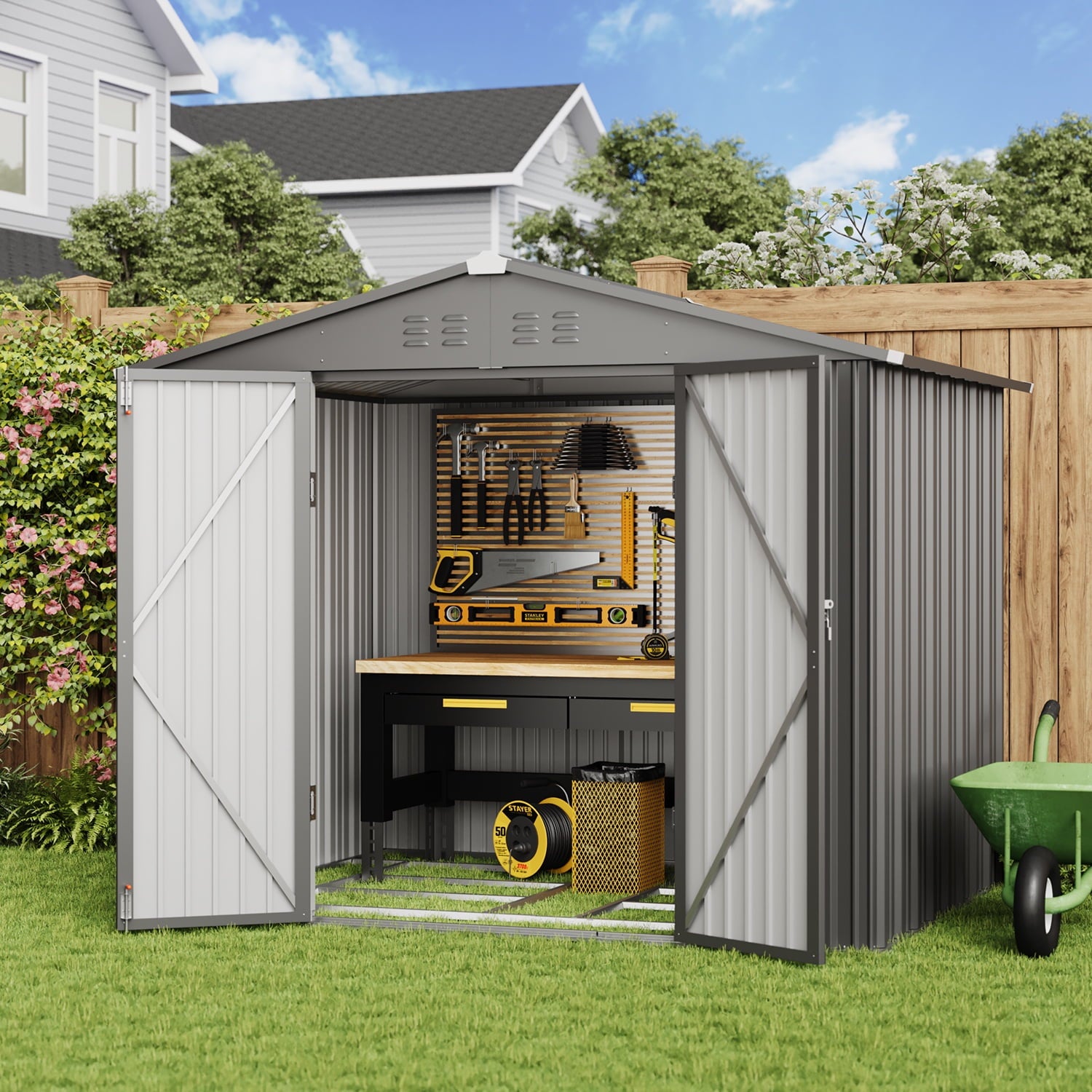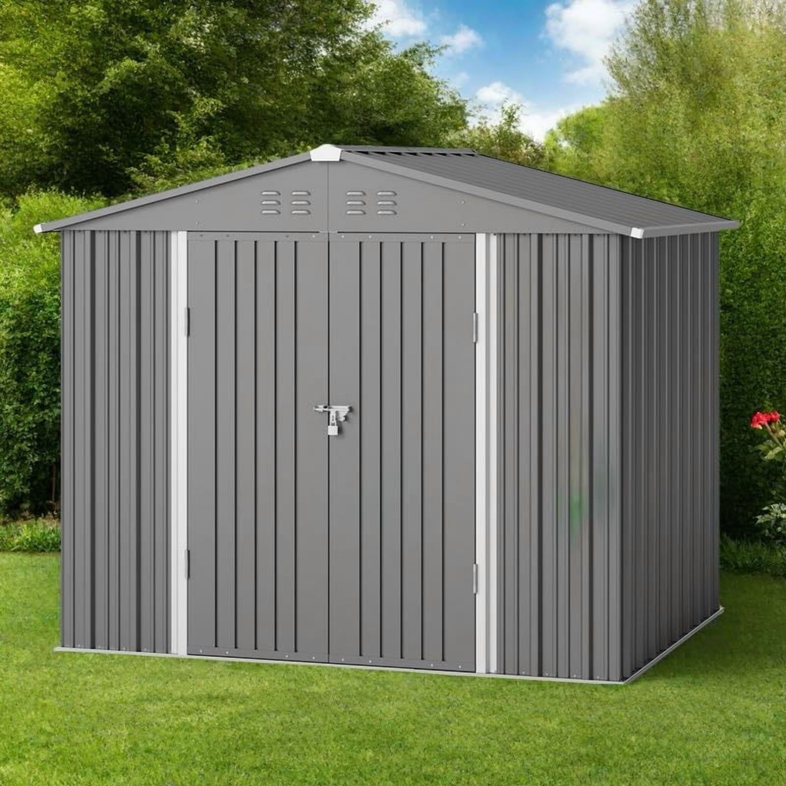To make your garden more tidy, you need this large 8 x 6 feet metal shed. Made of high-quality galvanized steel, this shed and outdoor storage space is durable and can withstand harsh weather conditions to ensure the safety of your belongings. With large internal storage space and reasonable layout, you can find a suitable place to put garden tools, tents or barbecue grills. With a simple and stylish appearance, it matches any style of yard. Asofer provides full support for your outdoor lifestyle.