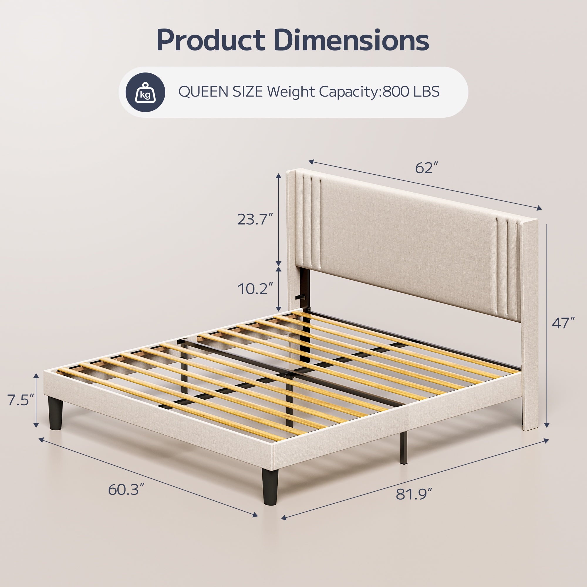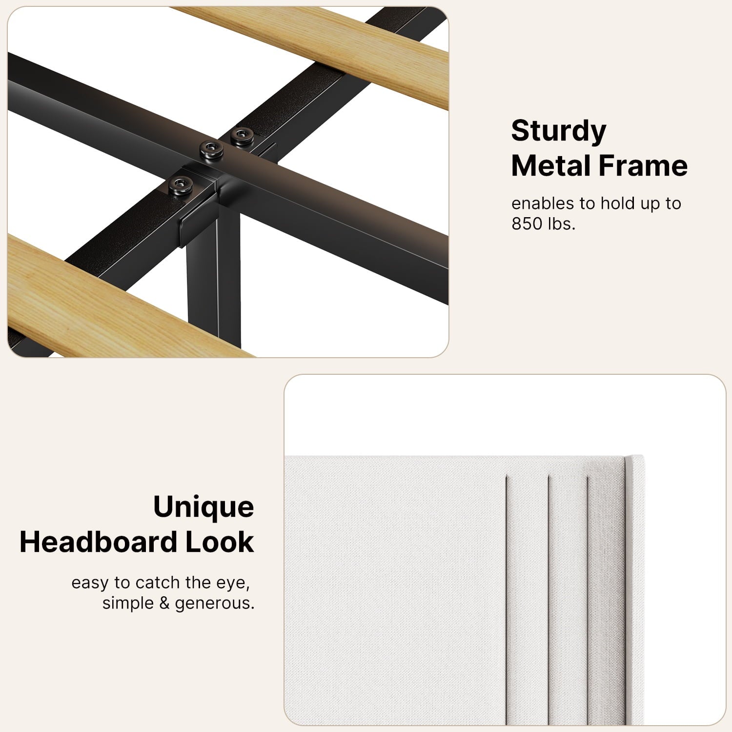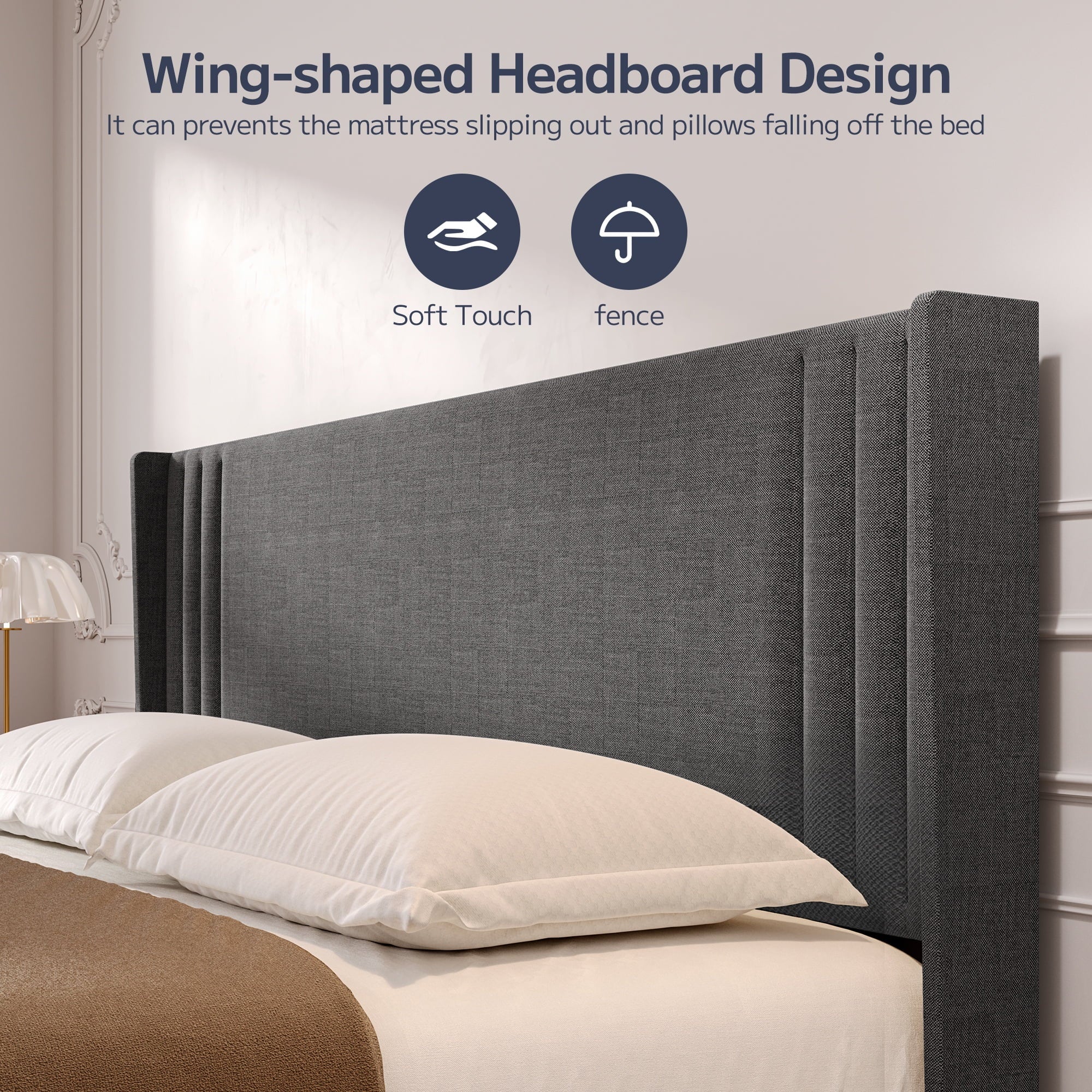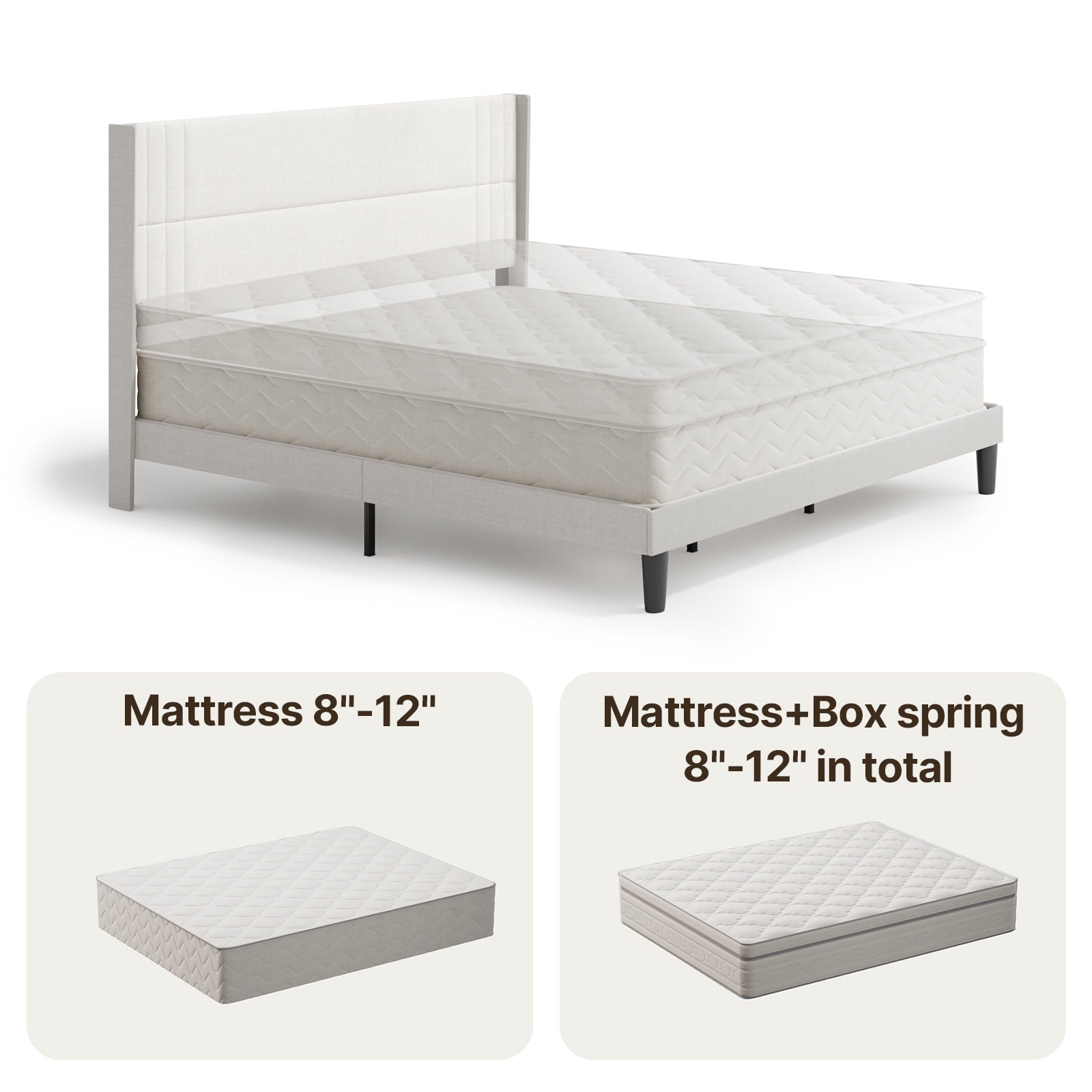 Ergonomic Design: 38.9″ high upholstered headboard with soft cotton-linen fabric offers superior comfort and support.