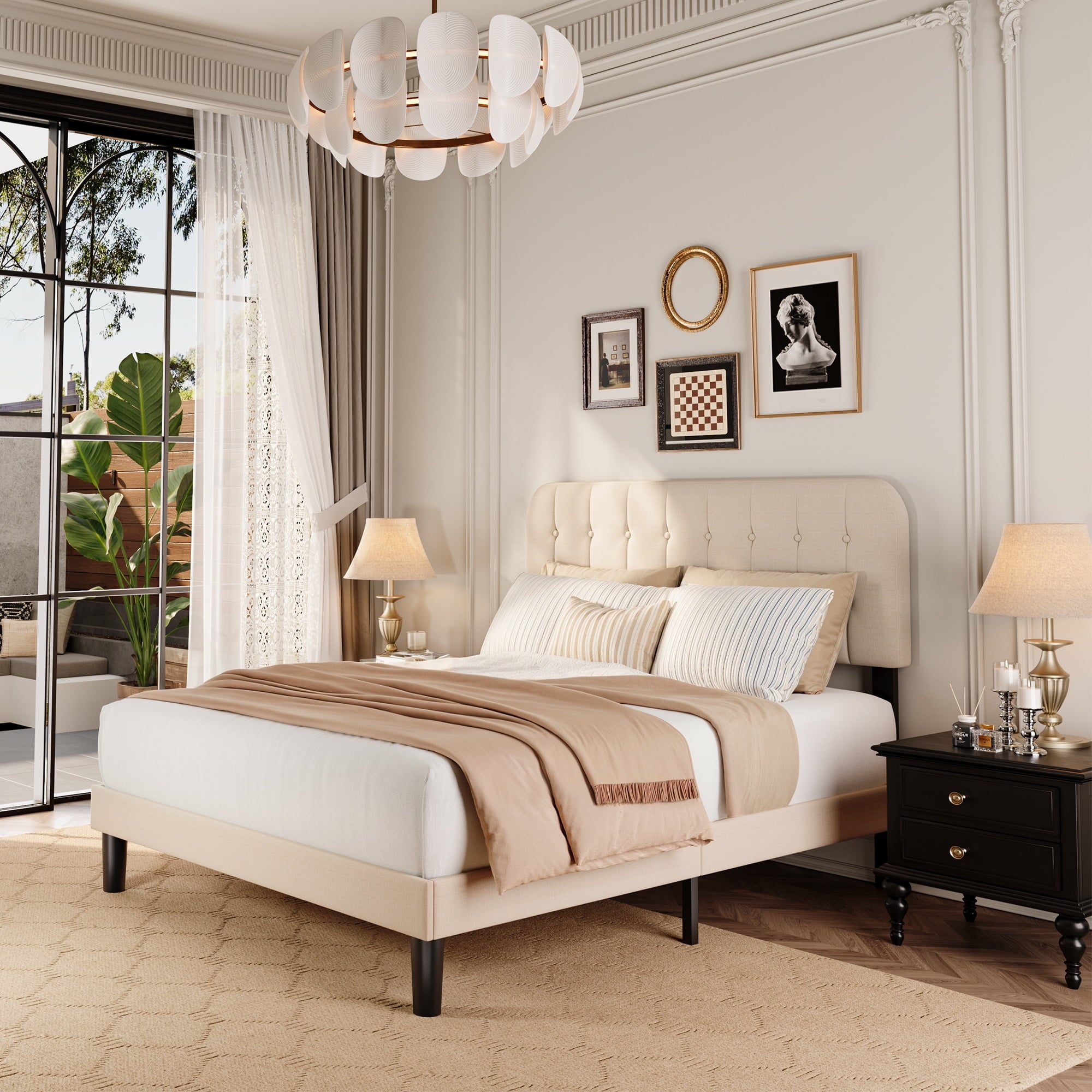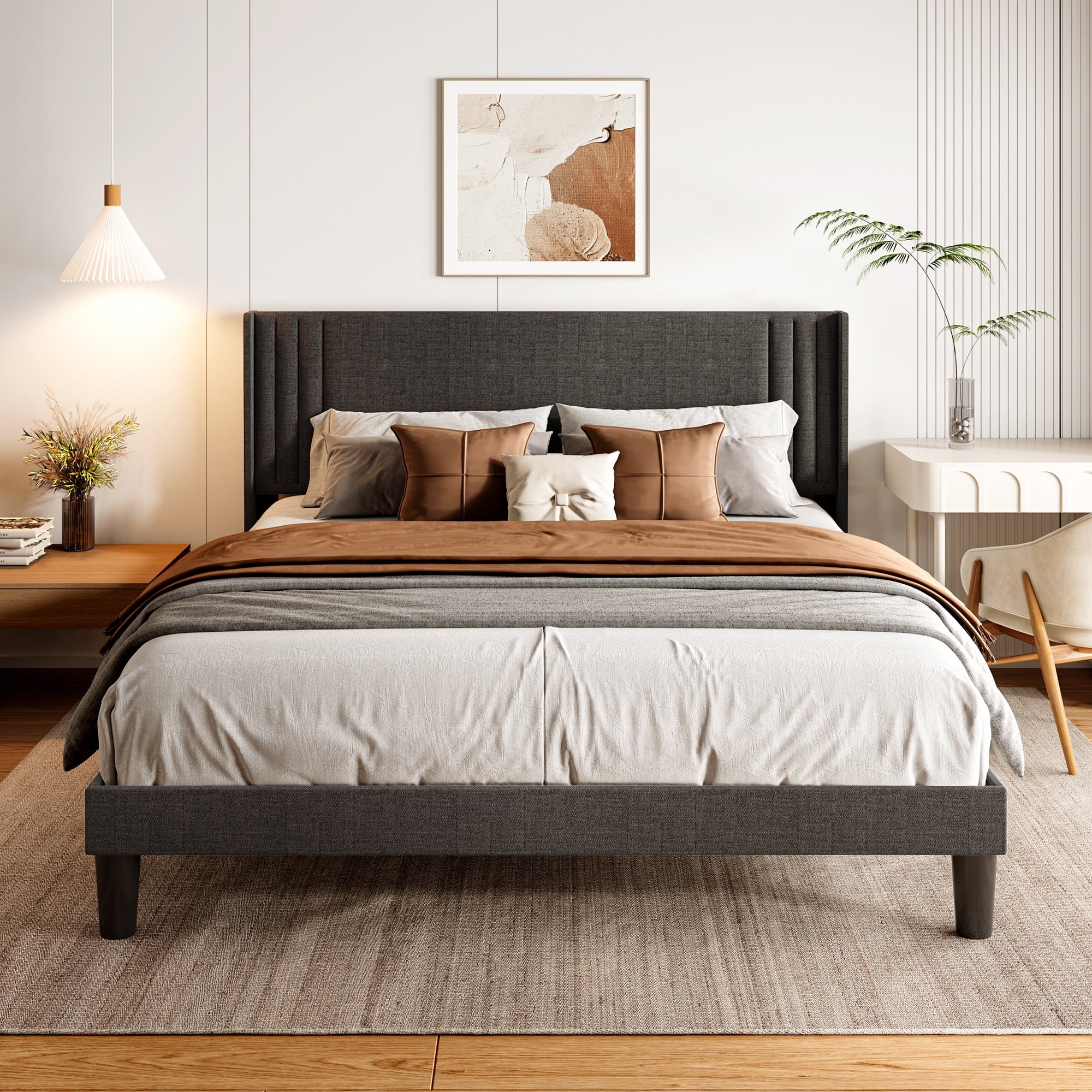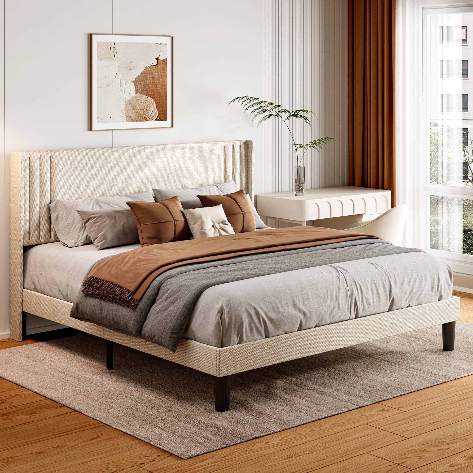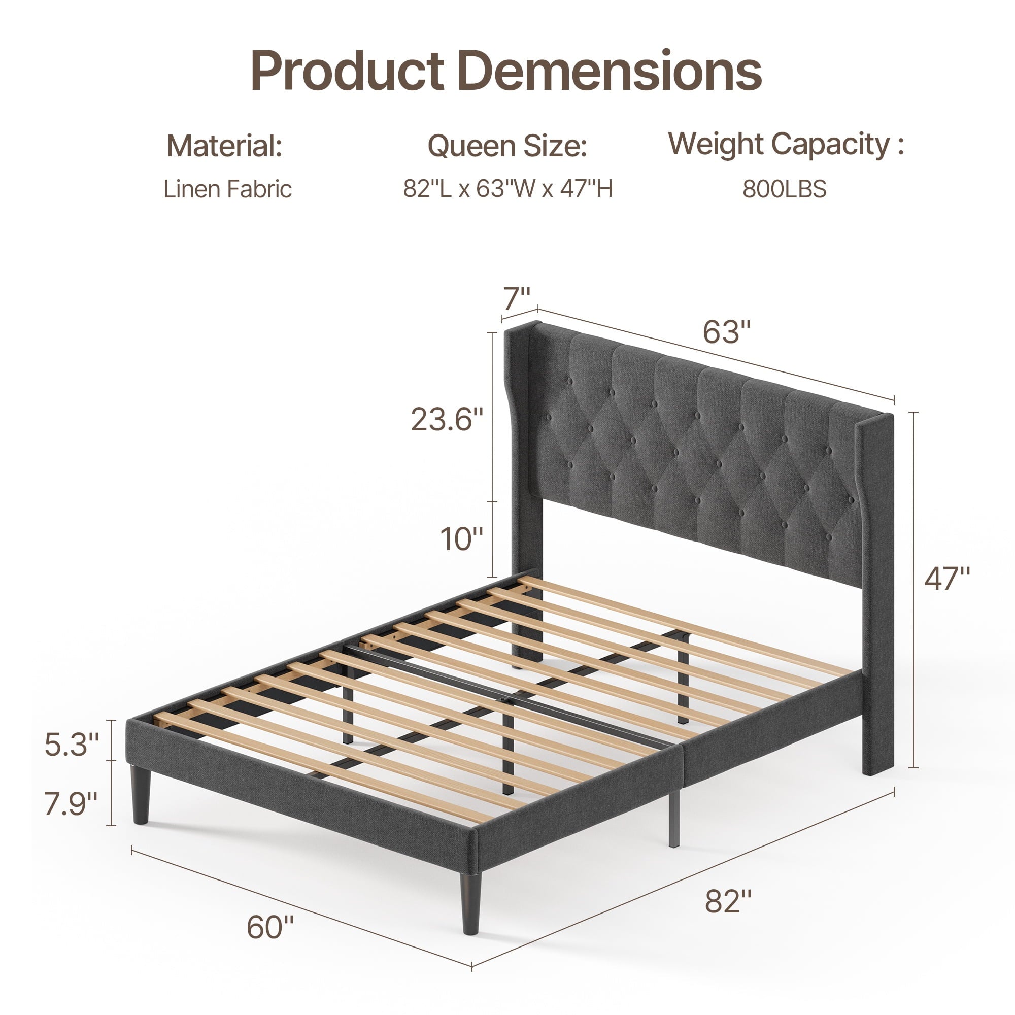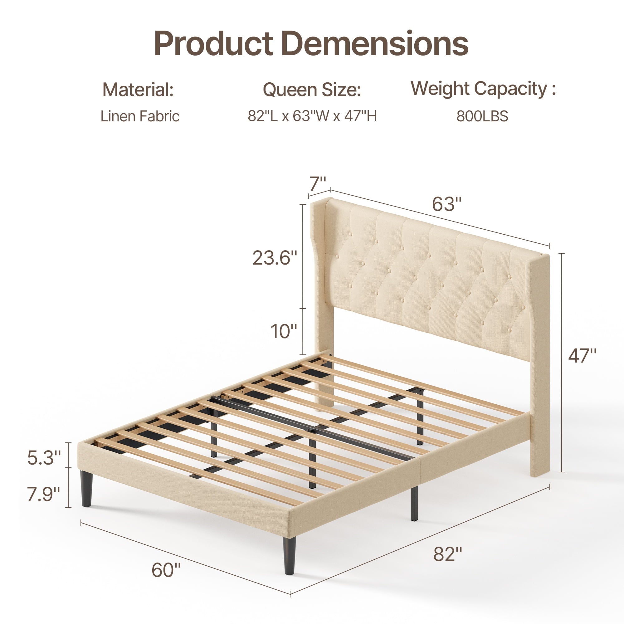Ergonomic Design: 38.9″ high upholstered headboard with soft cotton-linen fabric offers superior comfort and support.