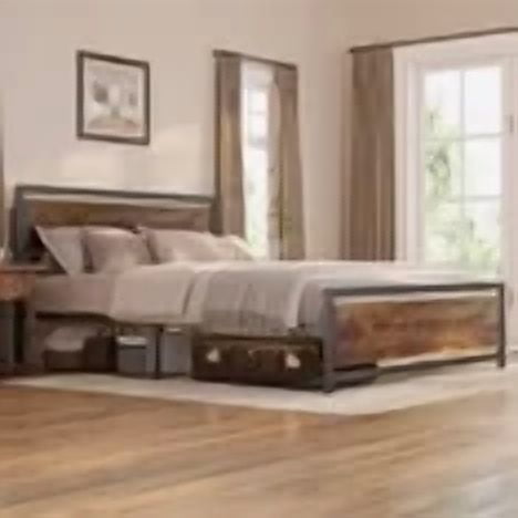 🛏️ King Bed Frame with Storage Headboard