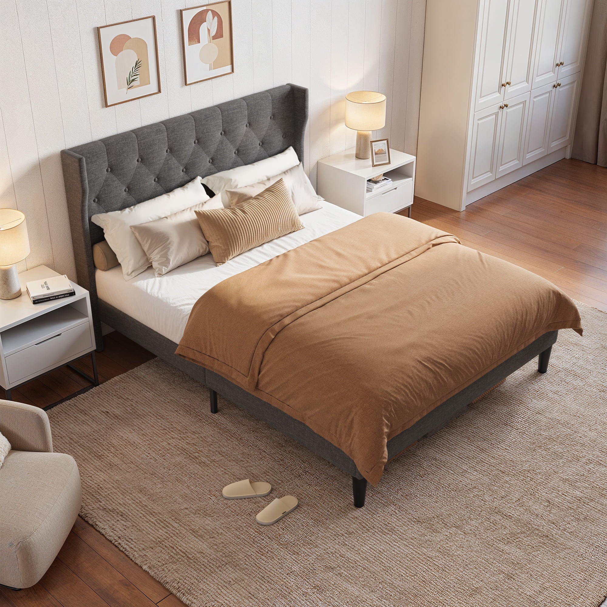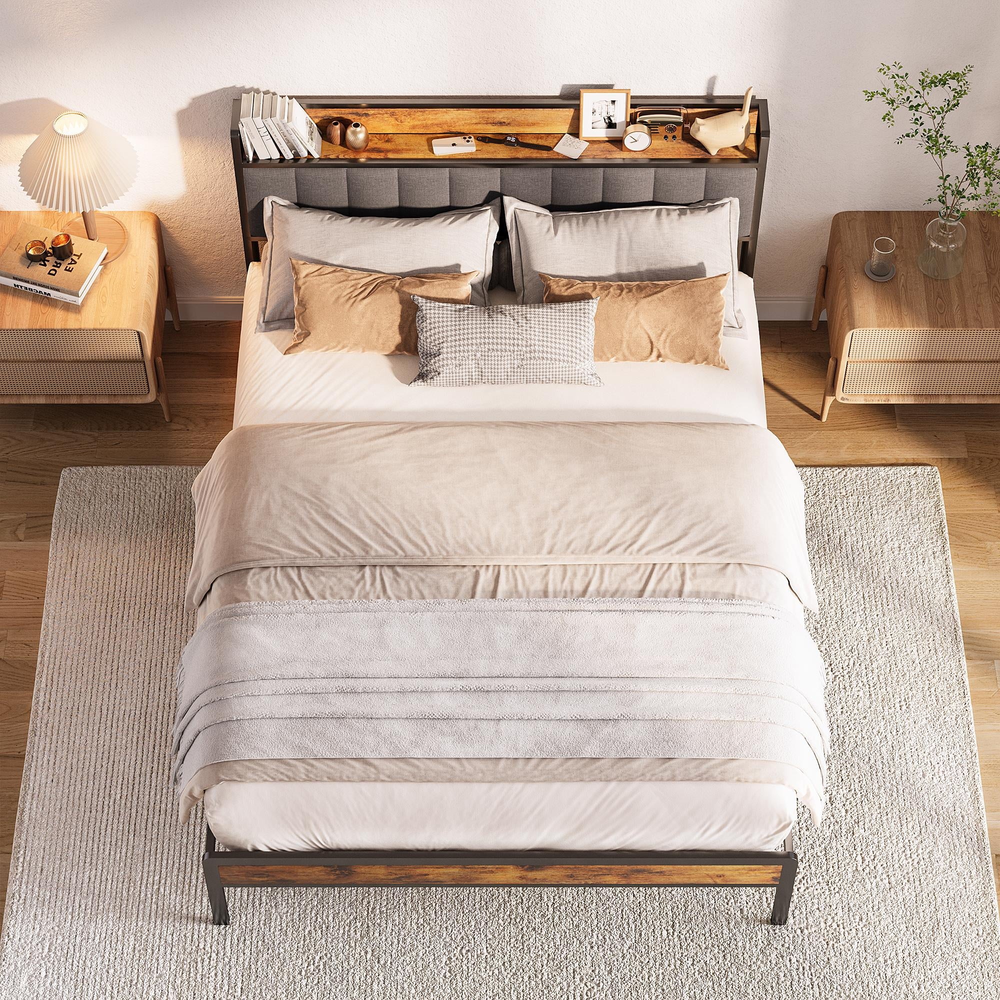 Smart Storage: Headboard shelves keep essentials within reach — perfect as a nightstand alternative.