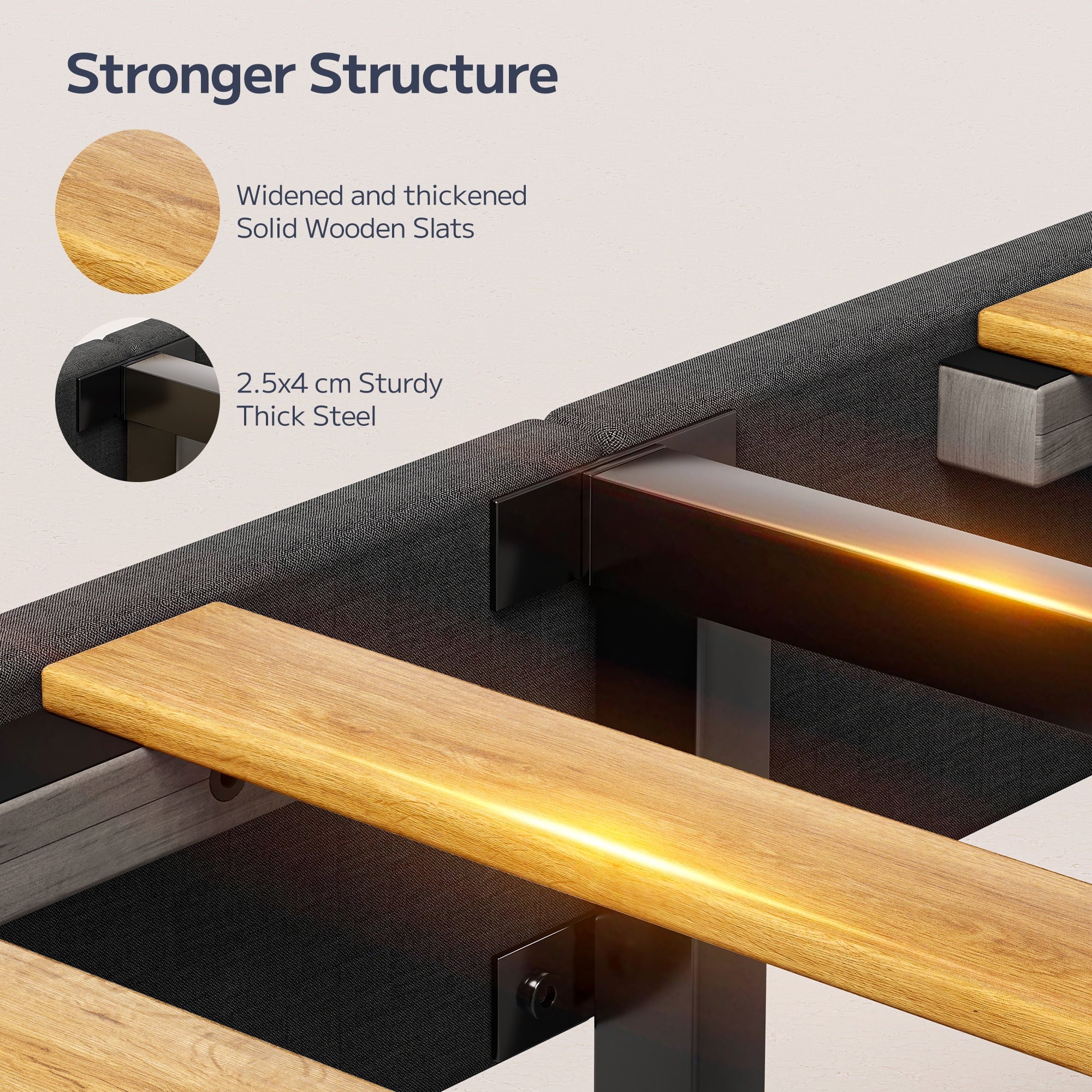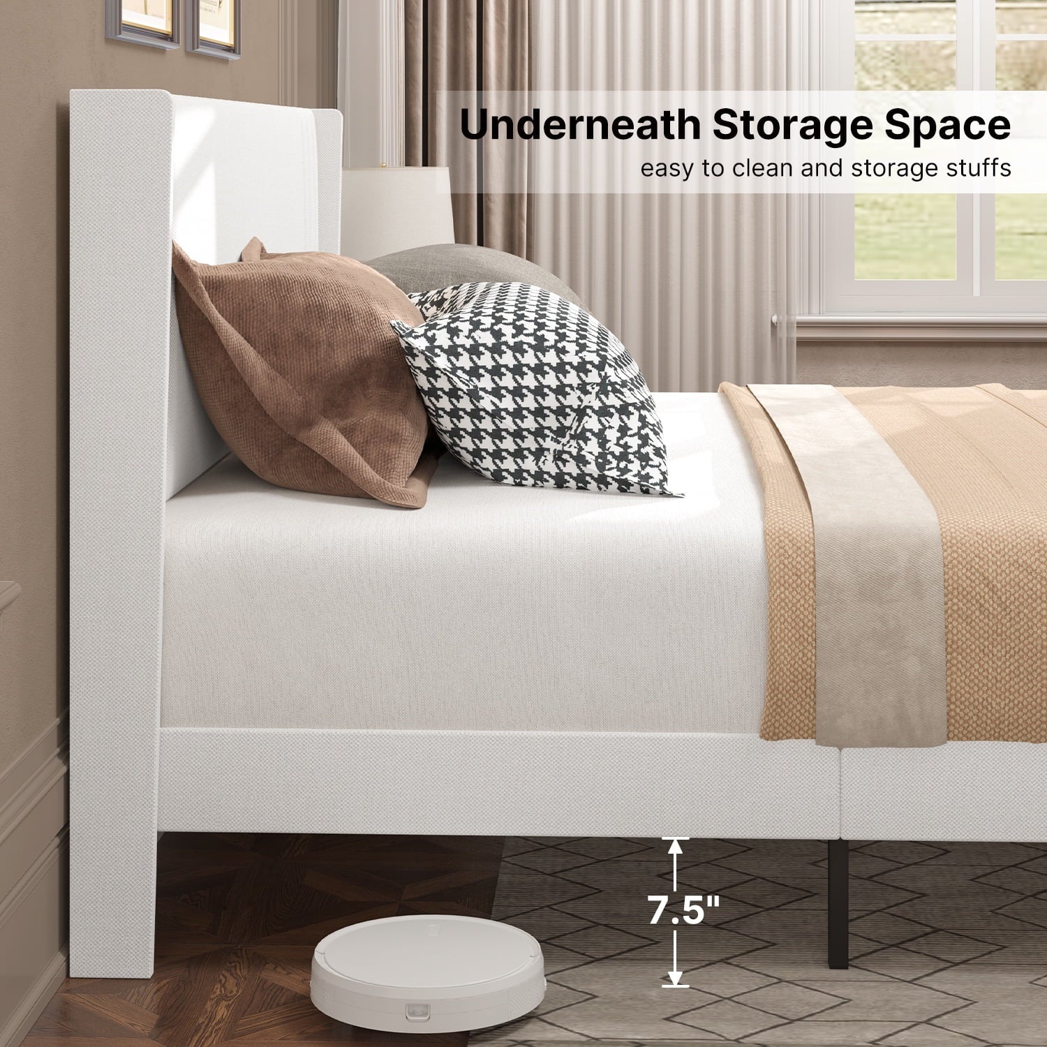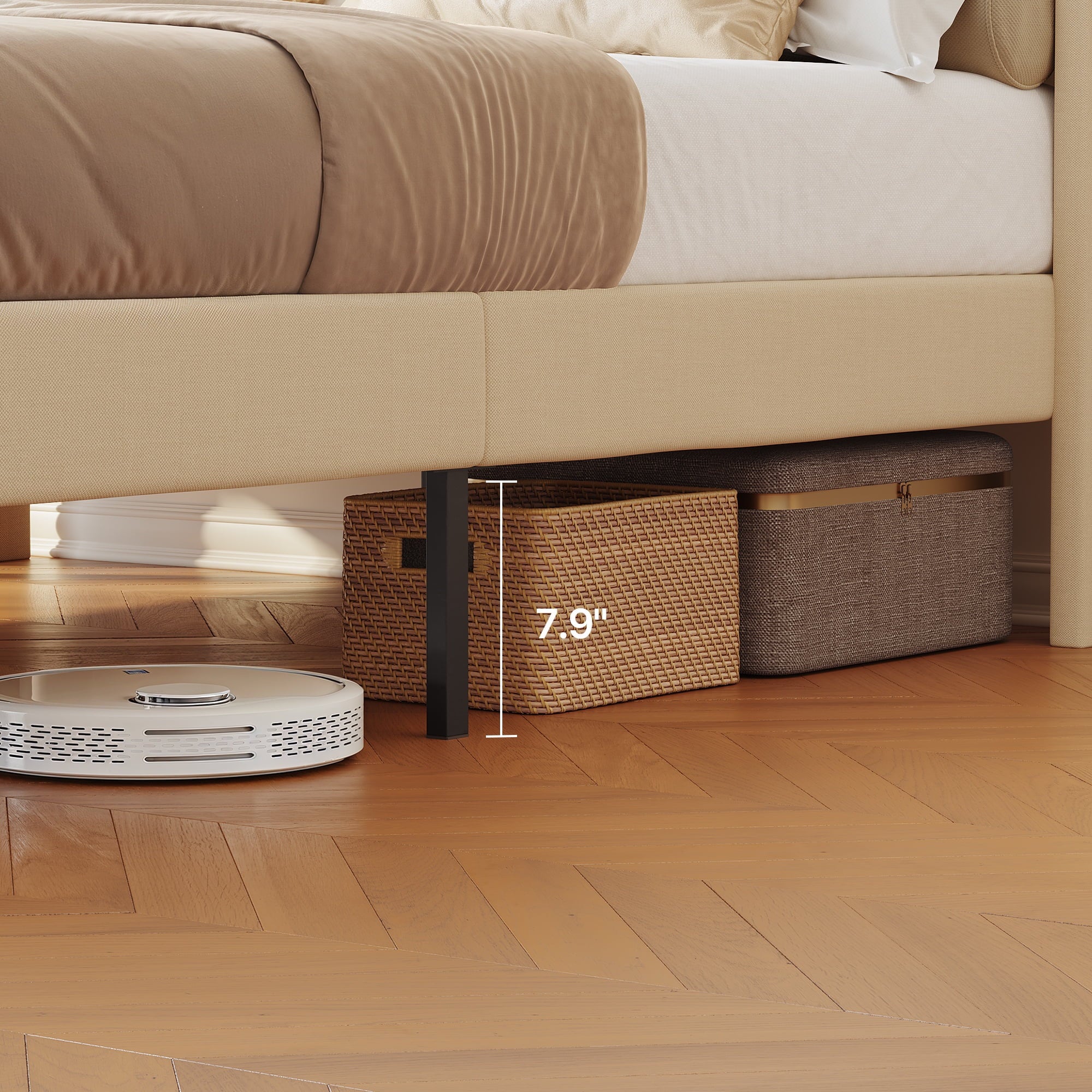 Under-Bed Clearance: 11″ height allows storage bins and robot vacuums to fit easily.