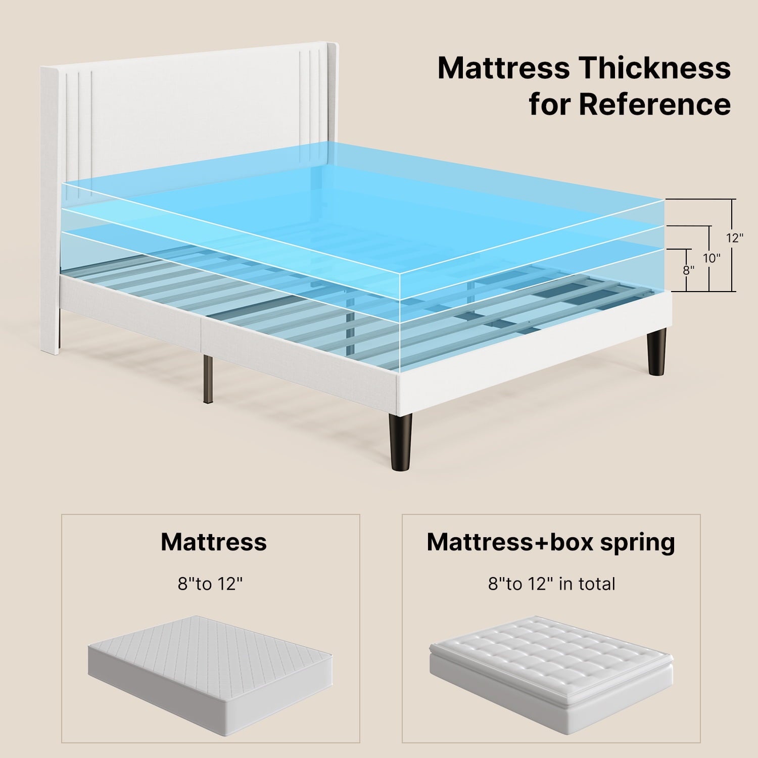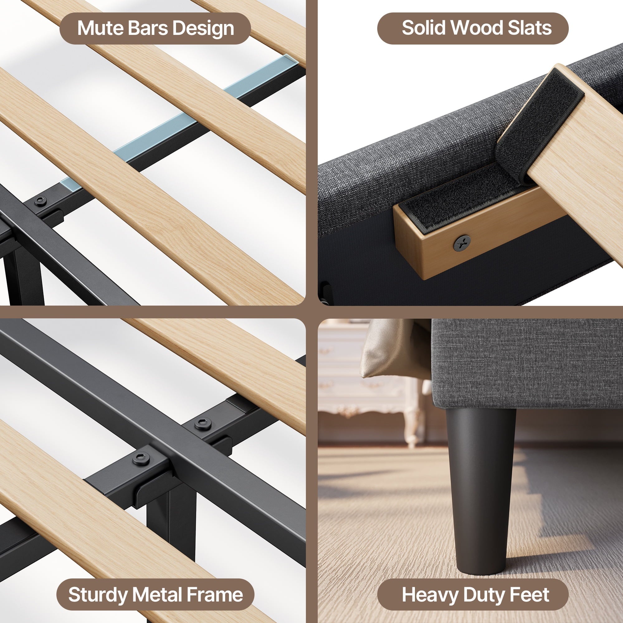 Quiet & Sturdy: Heavy-duty metal frame with 12 slats supports up to 1000 lbs. Sound-absorbing materials prevent squeaking.