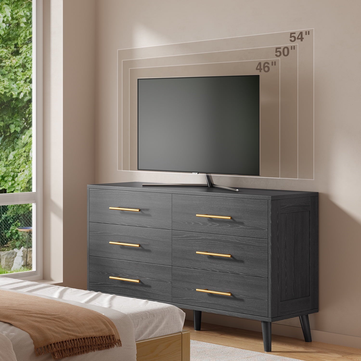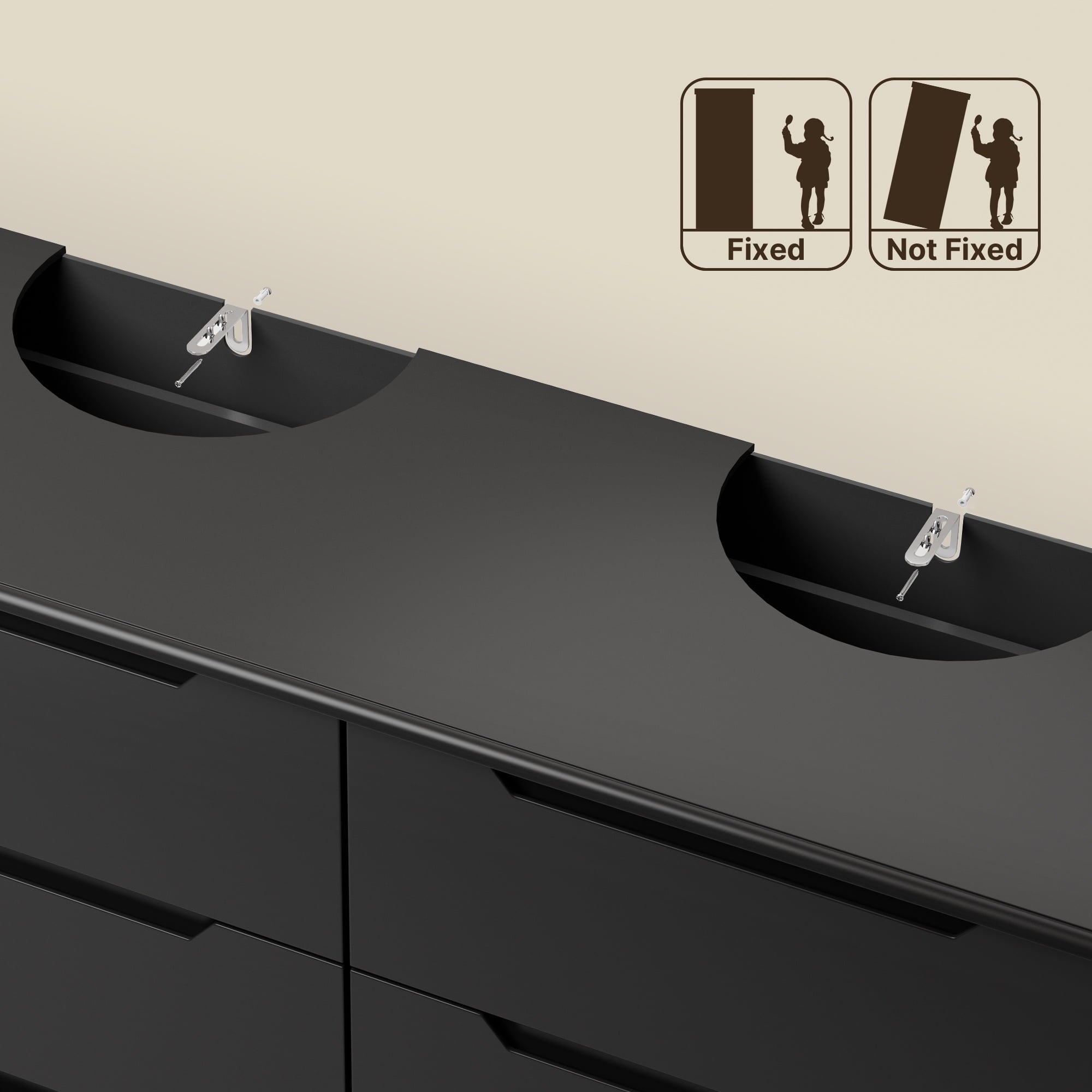 1 × 6-Drawer Dresser (Black)