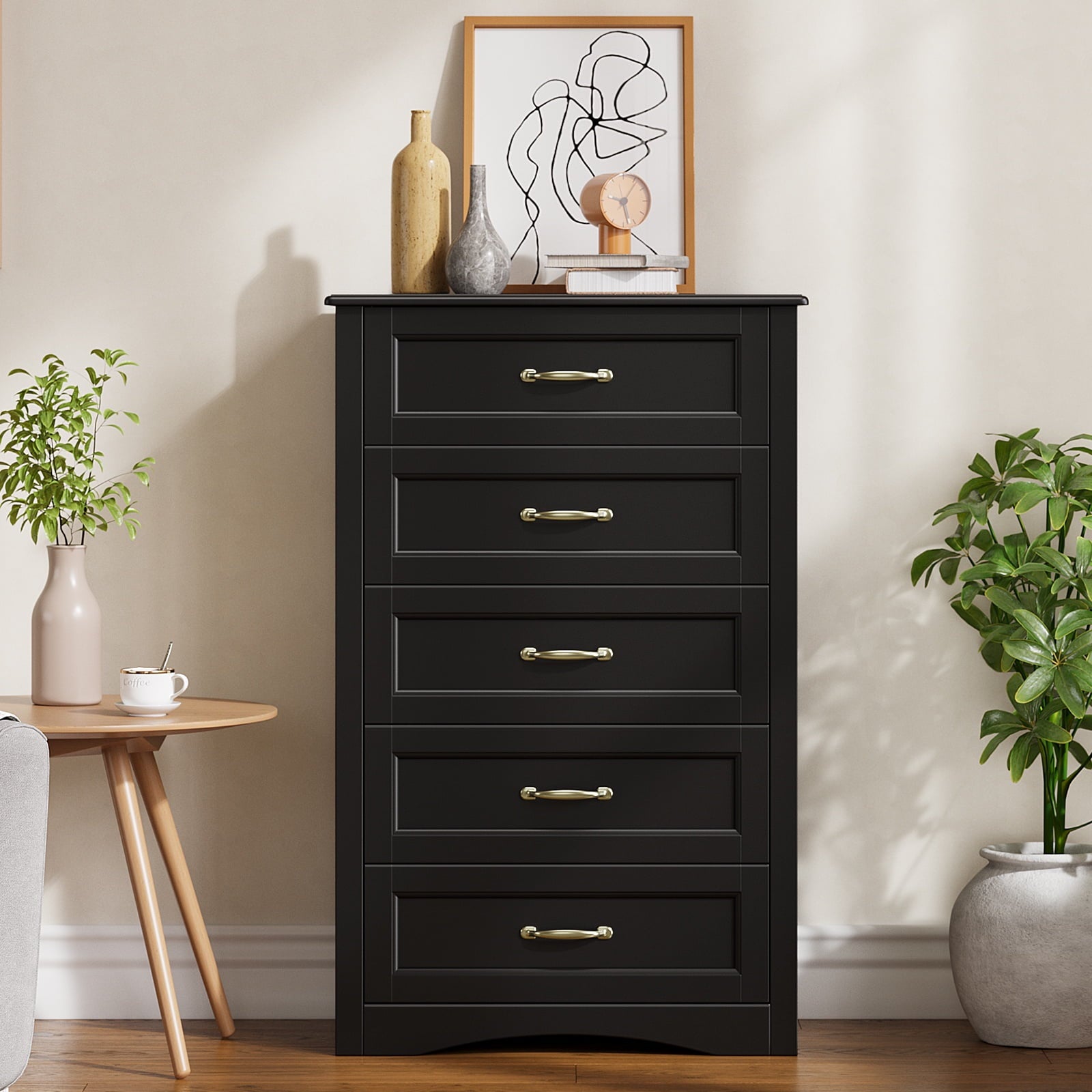 1 × 5-Drawer Dresser (Black)