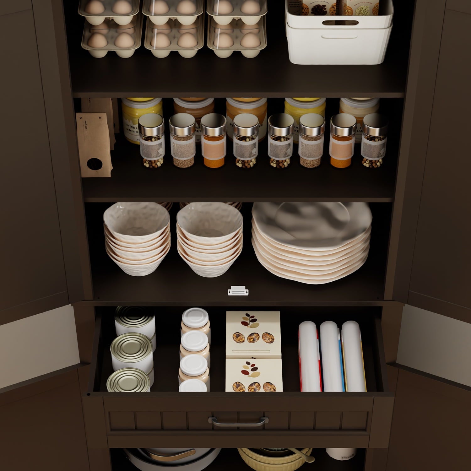 ✨【Moisture-proof and Odorless】Adopts environmentally friendly paint, eliminating concerns about toxic or irritating odors. The kitchen pantry surface is smooth, waterproof, moisture-proof, and rust-proof, suitable for kitchens, bathrooms, and other areas. It is an ideal choice for protecting your products from light, temperature, dirt, and dust.