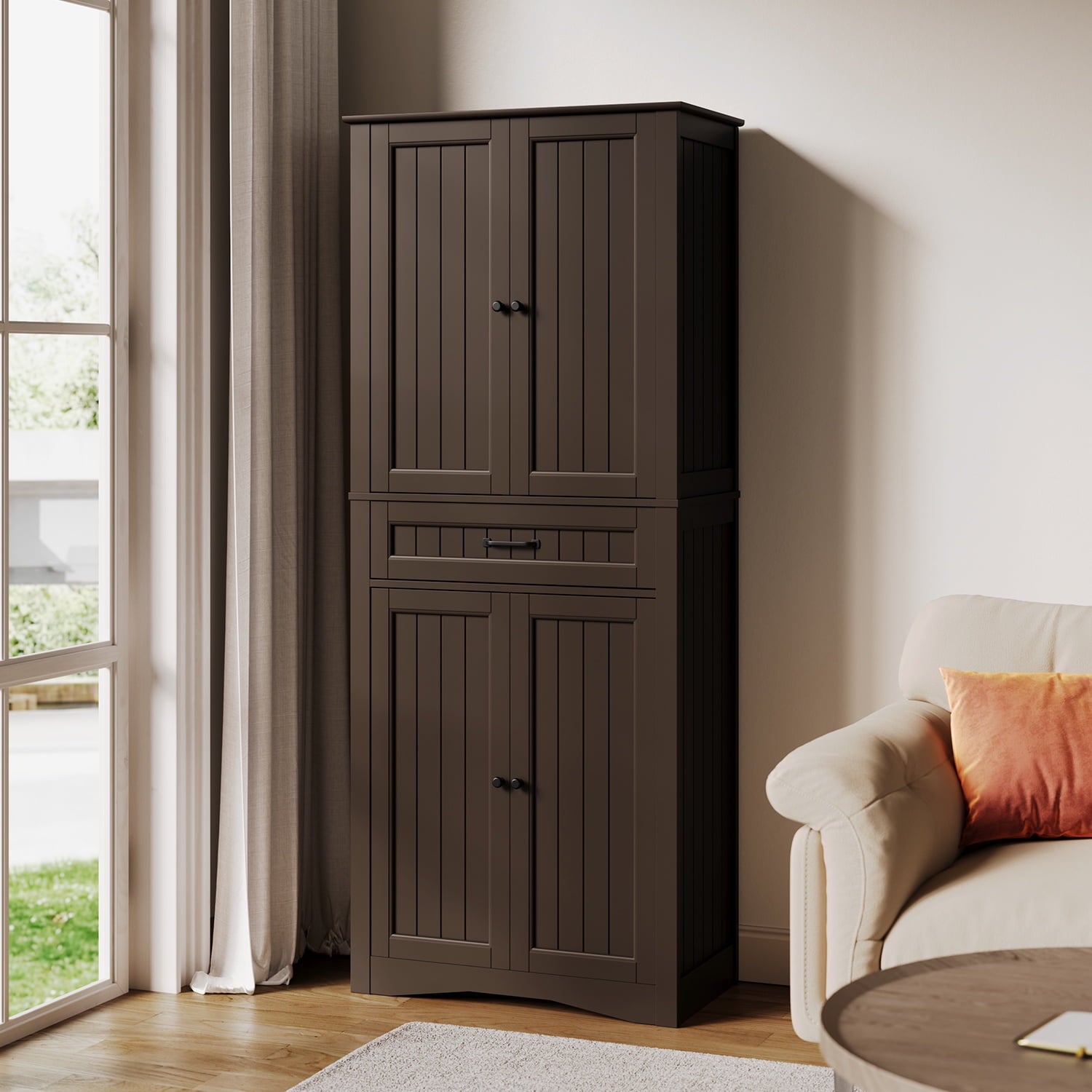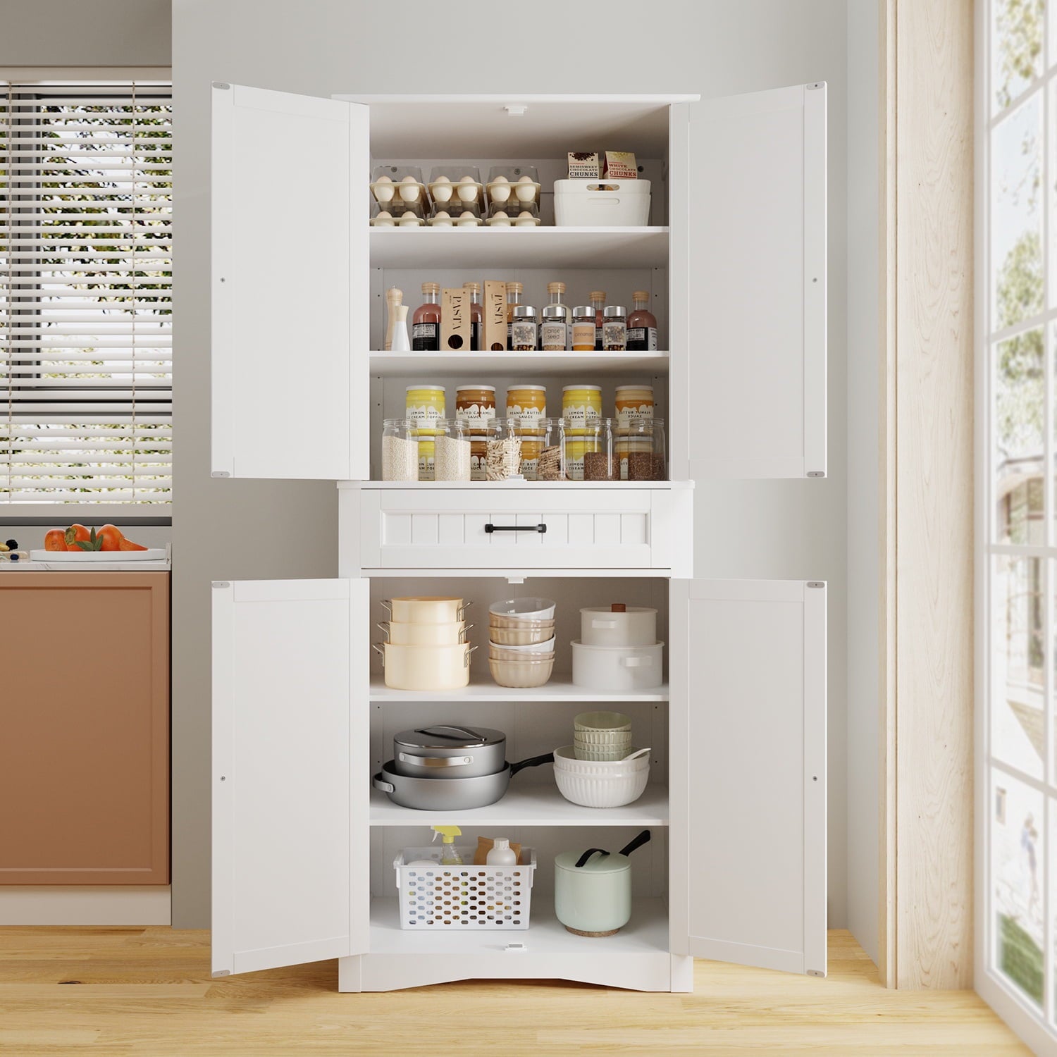 The Asofer 71-inch storage cabinet is an ideal choice for your kitchen, dining room, or utility room. Its spacious interior design makes it easy to store groceries, spice bottles, tableware, and small appliances, keeping everything organized. High-quality materials combined with a stylish appearance not only enhance storage functionality but also add a touch of modern flair to your home. Buy now and give your kitchen a fresh new look!