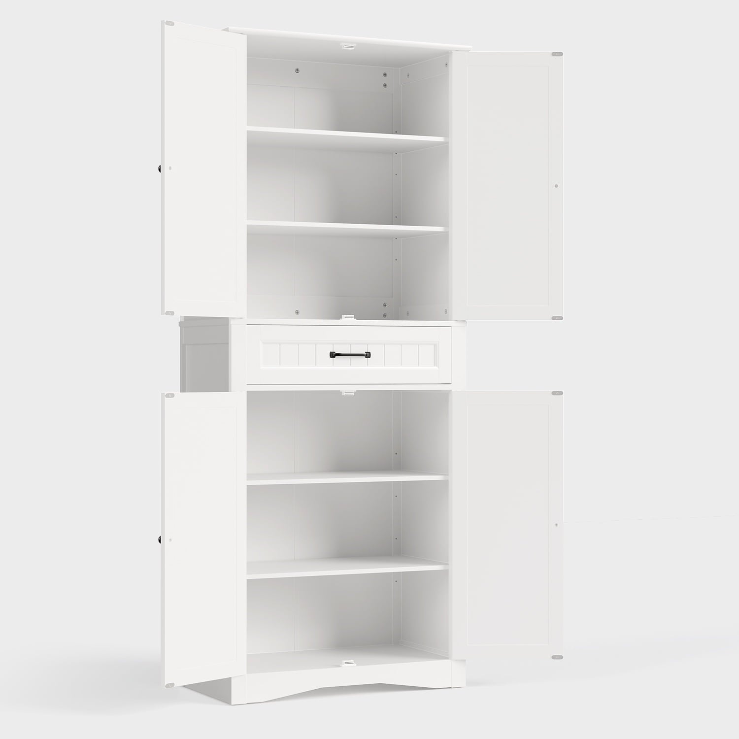 Asofer Freestanding Cupboard with 4 Barn Doors, 71” Kitchen Pantry Storage Cabinet for Kitchen, Living Room, White